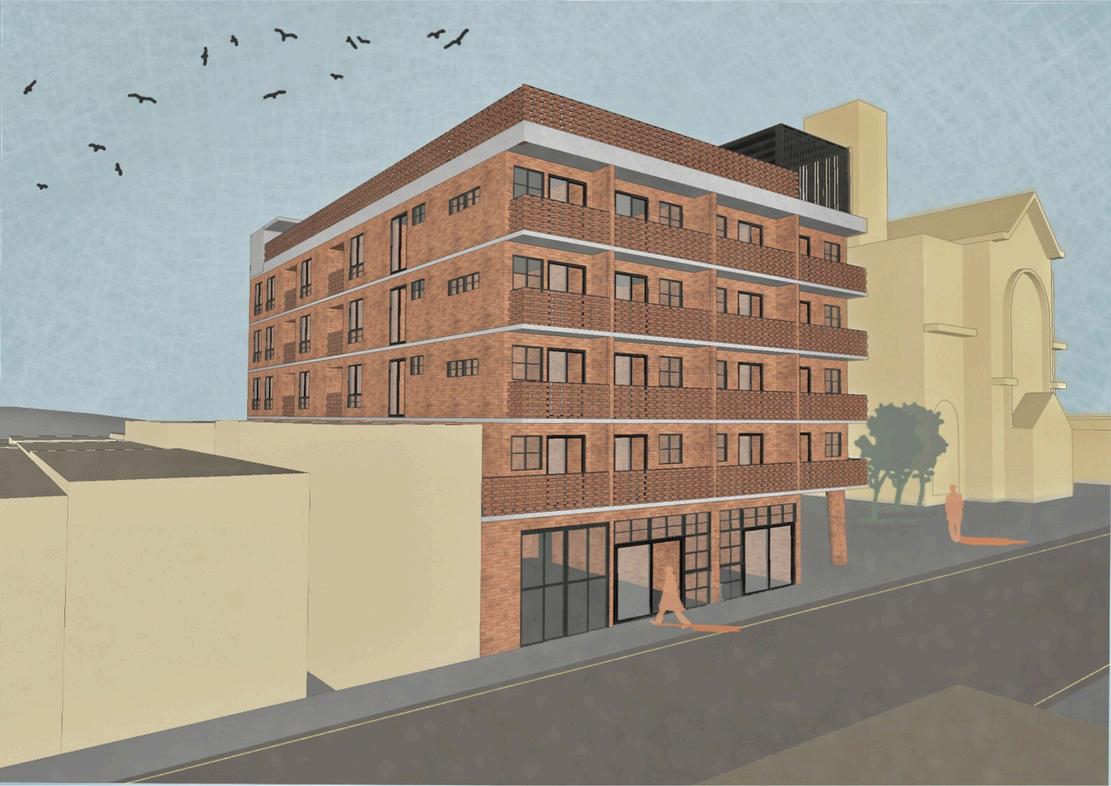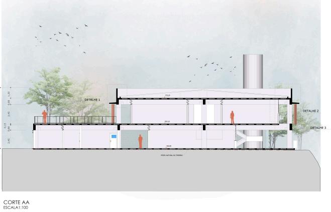 Para isso, foi desenvolvido um projeto de habitação com comércio no térreo.