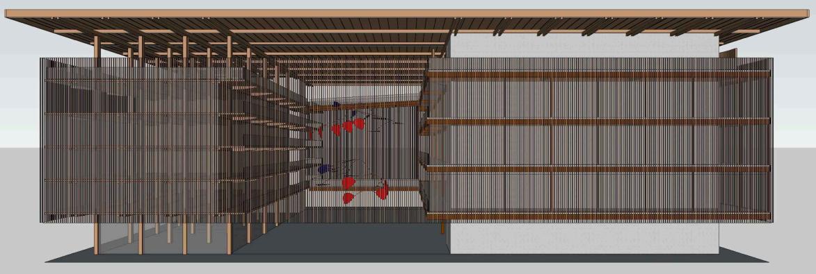 O uso da Madeira Laminada Colada na biblioteca, foco de estudo do trabalho, busca criar um espaço acolhedor e convidativo, utilizando de métodos estruturais não convencionais.