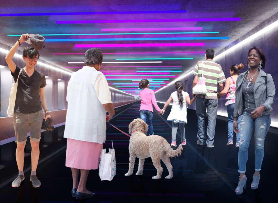 Tourist bus stop taxi drop-offpick up Underground tunnel loading bay Roadway
