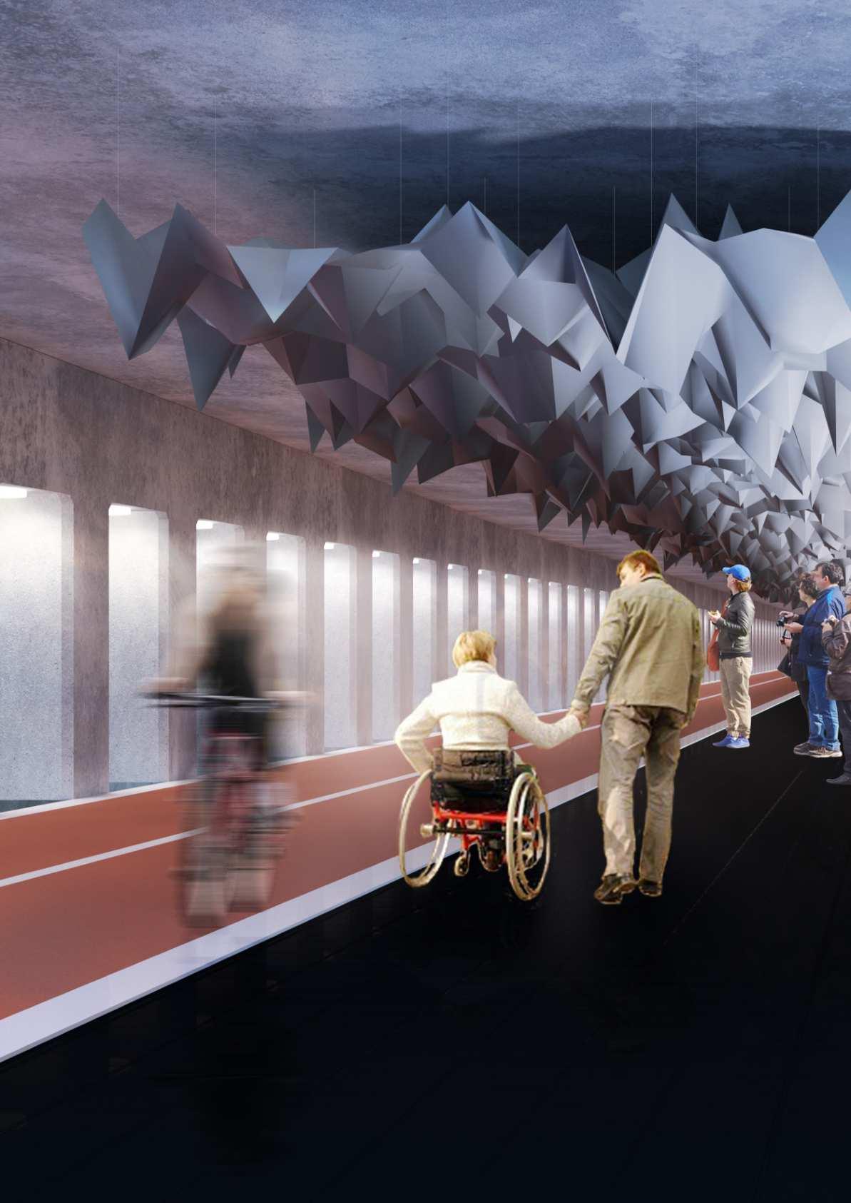 Smart, Ecological, Sustainable Inspirationistakenfromthetraditionalterrace farming of the area in both the built form and the landscape.Traditional techniques, such as terracing, and phytoremediation meet with modern technology to provide a secure and sustainable built environment for all. Collecting and sharing of information is encouraged in an open, circular economy, across all systems including transport, health, industry, and governance. An ef昀椀cient tramway connects with the intercity train network, lessening the need for cars, thus reducing air and noise pollution.