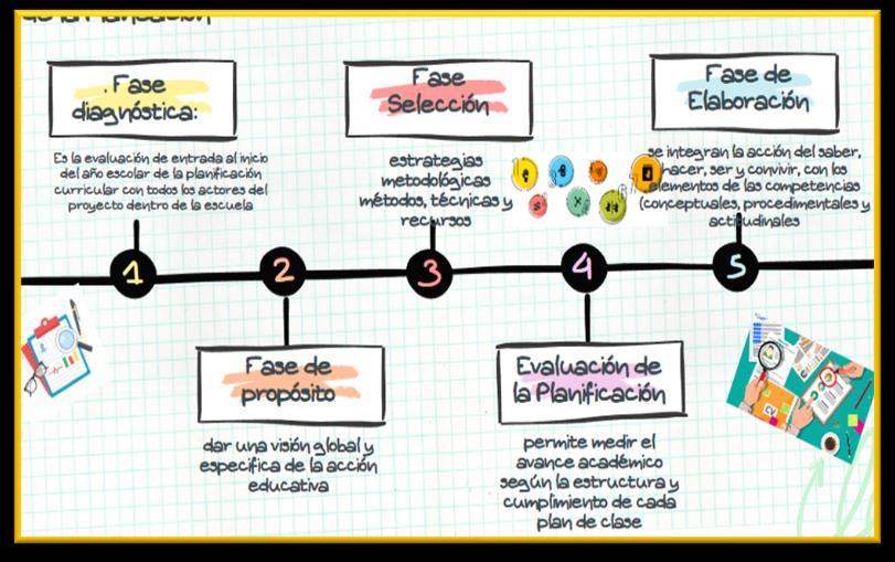 Fase de evaluación de la planificación, permite medir el avance académico según el cumplimiento del plan de clase, La fase de elaboración se interrelacionan las competencias, procedimientos y actitudes de los estudiantes con respecto a la planificación de las actividades para el proceso de aprendizaje