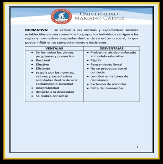 Semana 8: tabla comparativa: Planificación Normativa y Planeación Participativa Ventajas y Desventajas