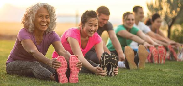 There is something for everyone. Try yoga, Pilates, stretching or modified low impact workouts. Or mix it up with strength, cardio, dance, and family activities.