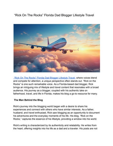 “Rick On The Rocks” Florida Dad Blogger Lifestyle Travel, blending adventure with family joys. From thrilling theme park escapades to serene beachfront explorations, Rick's blog captures the essence of Florida living. With insightful travel tips and engaging anecdotes, he navigates the Sunshine State's hidden gems and bustling cities, all while sharing heartfelt moments of parenting and discovery. Whether uncovering local culinary delights or reviewing family-friendly attractions, Rick invites readers to join his journey through a lens of fun, laughter, and cherished memories, making each post a delightful window into his vibrant world.