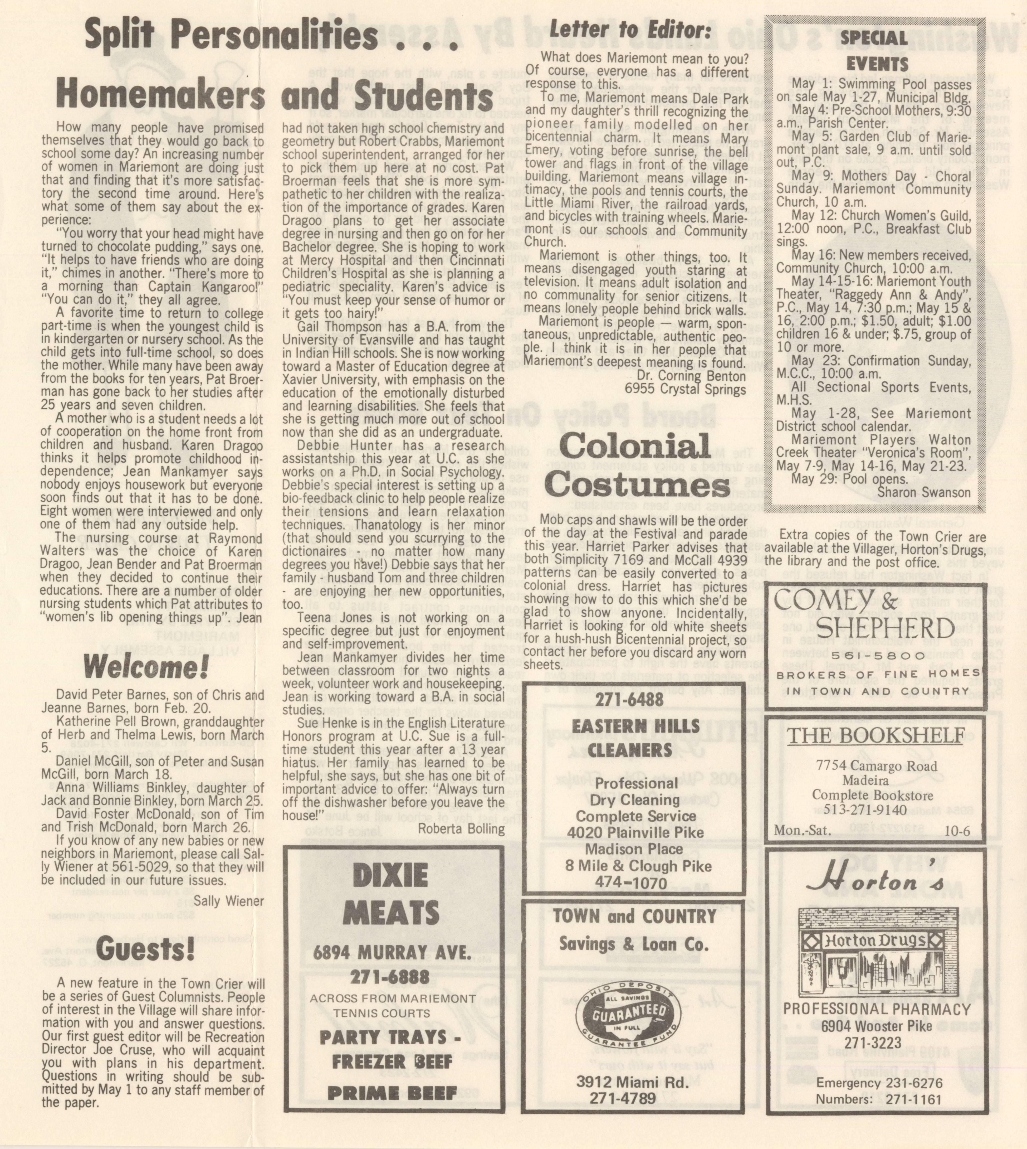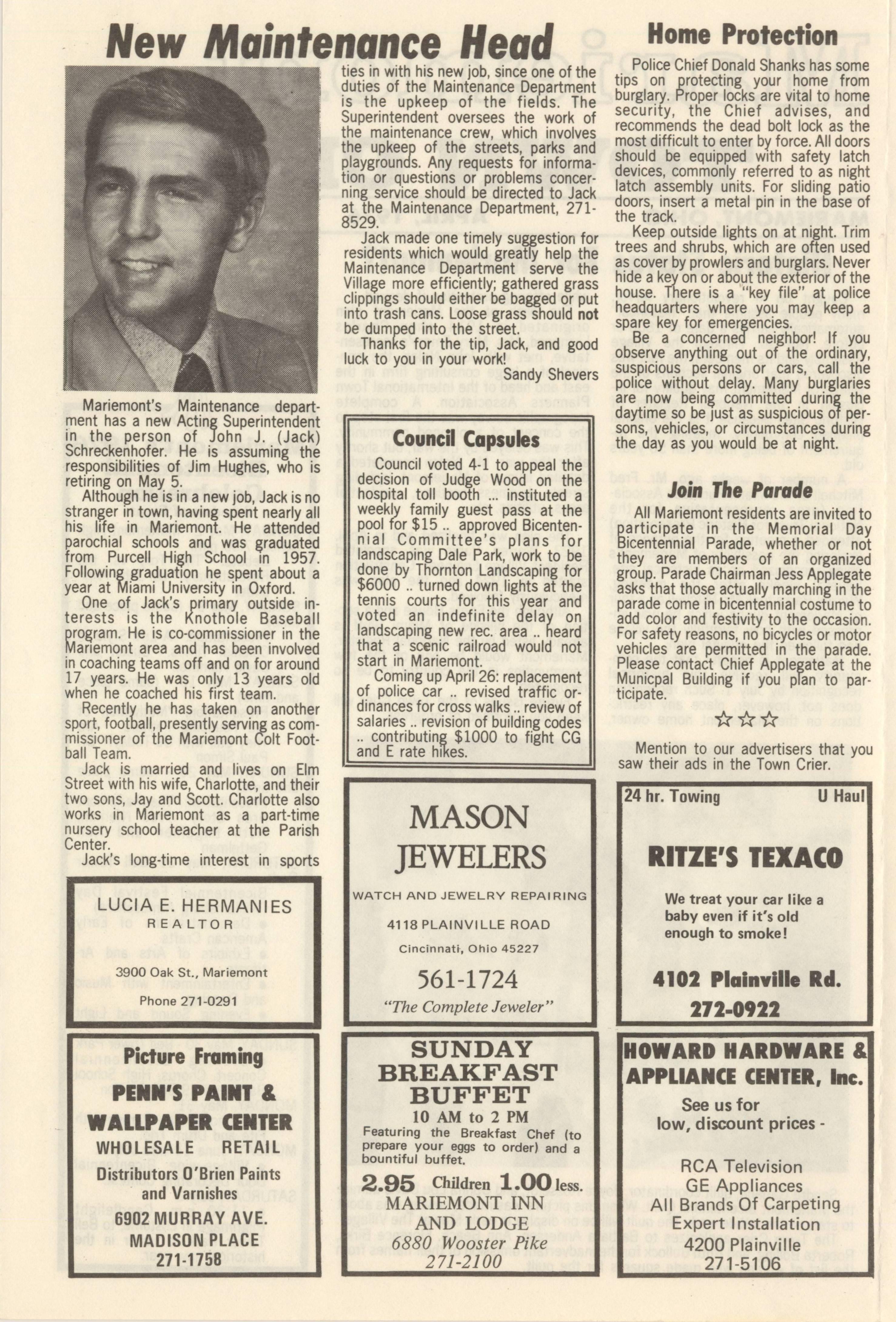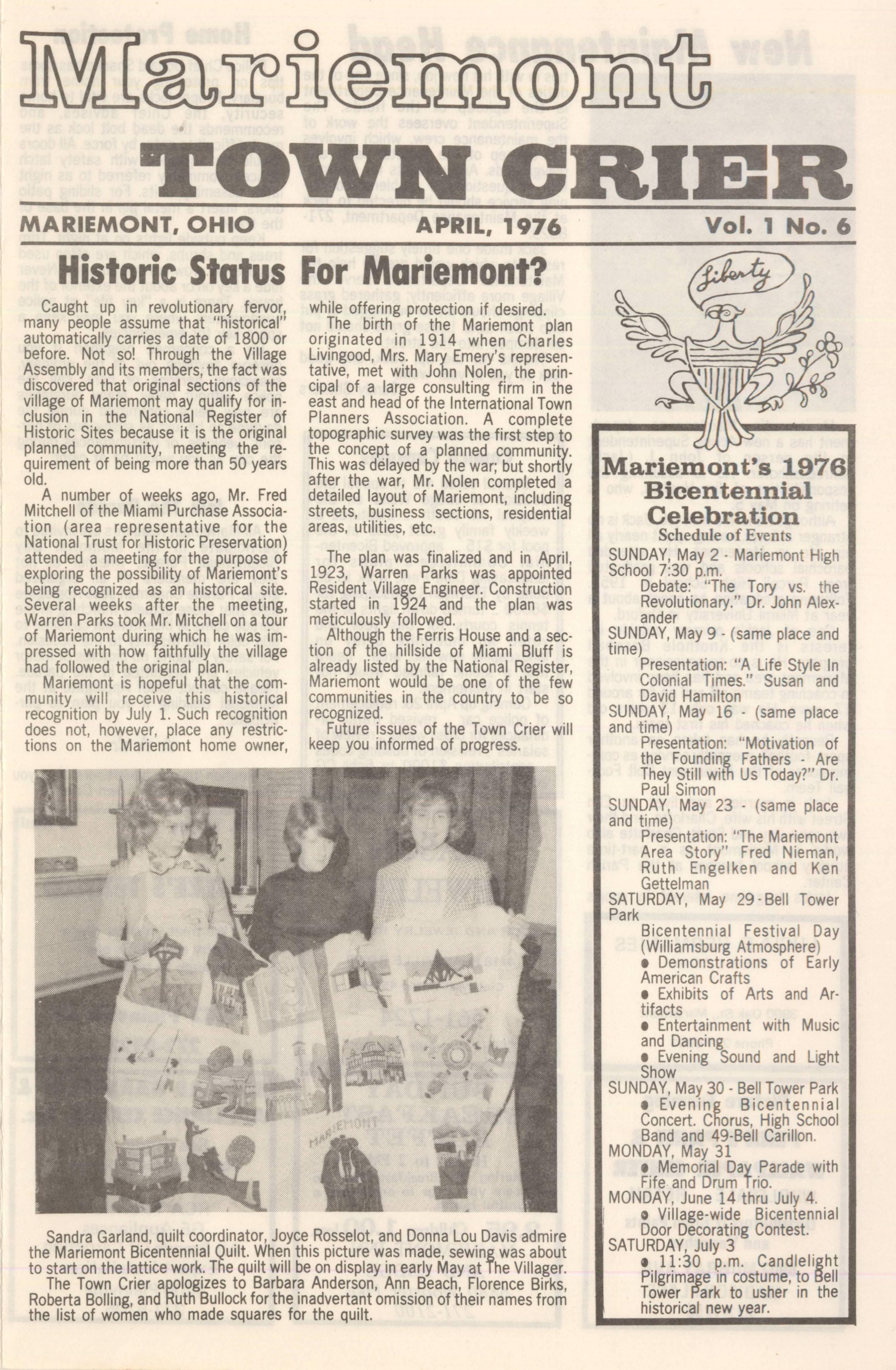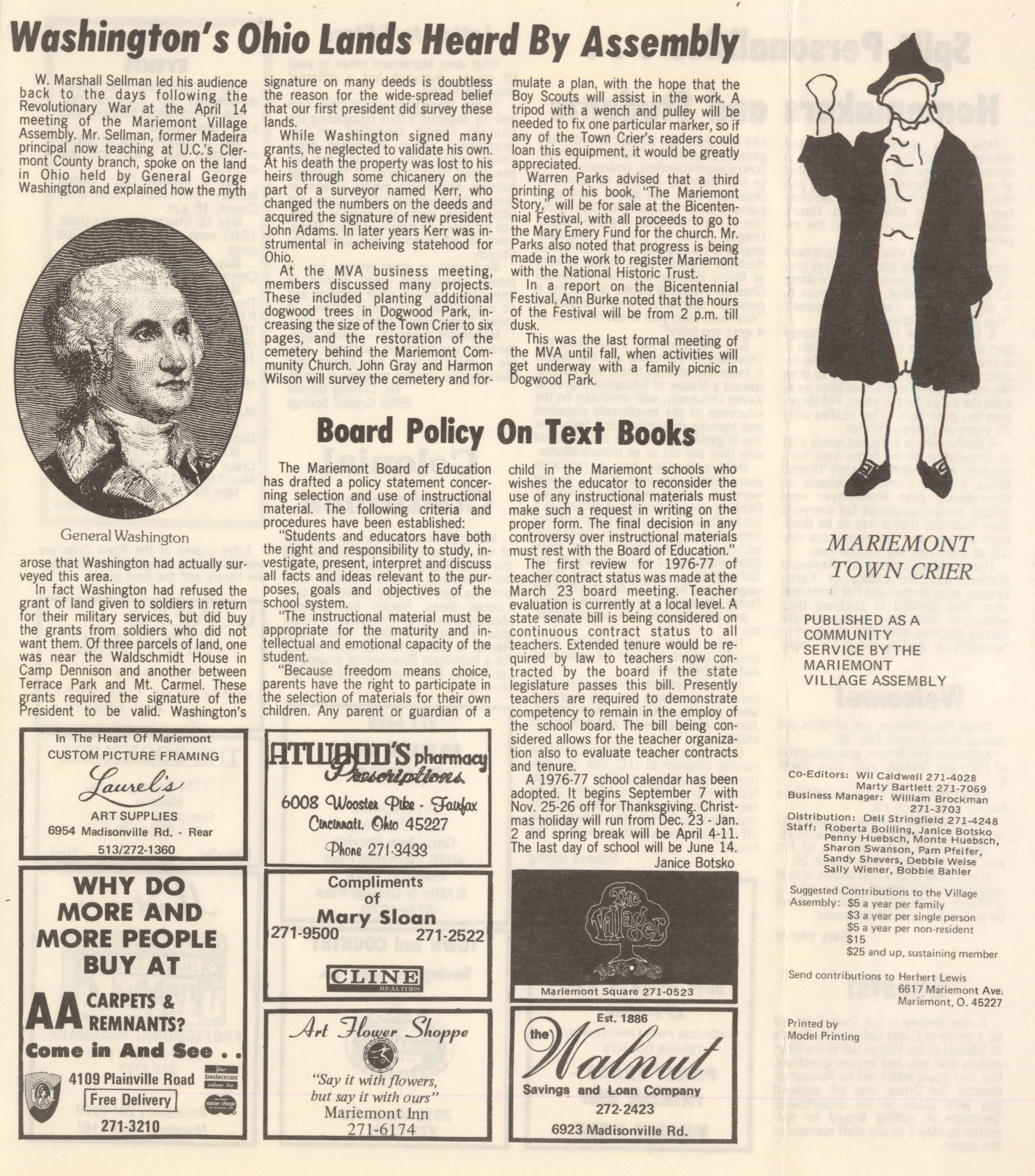 Mariemont Town Crier, April 1976, Vol. 1, No. 6