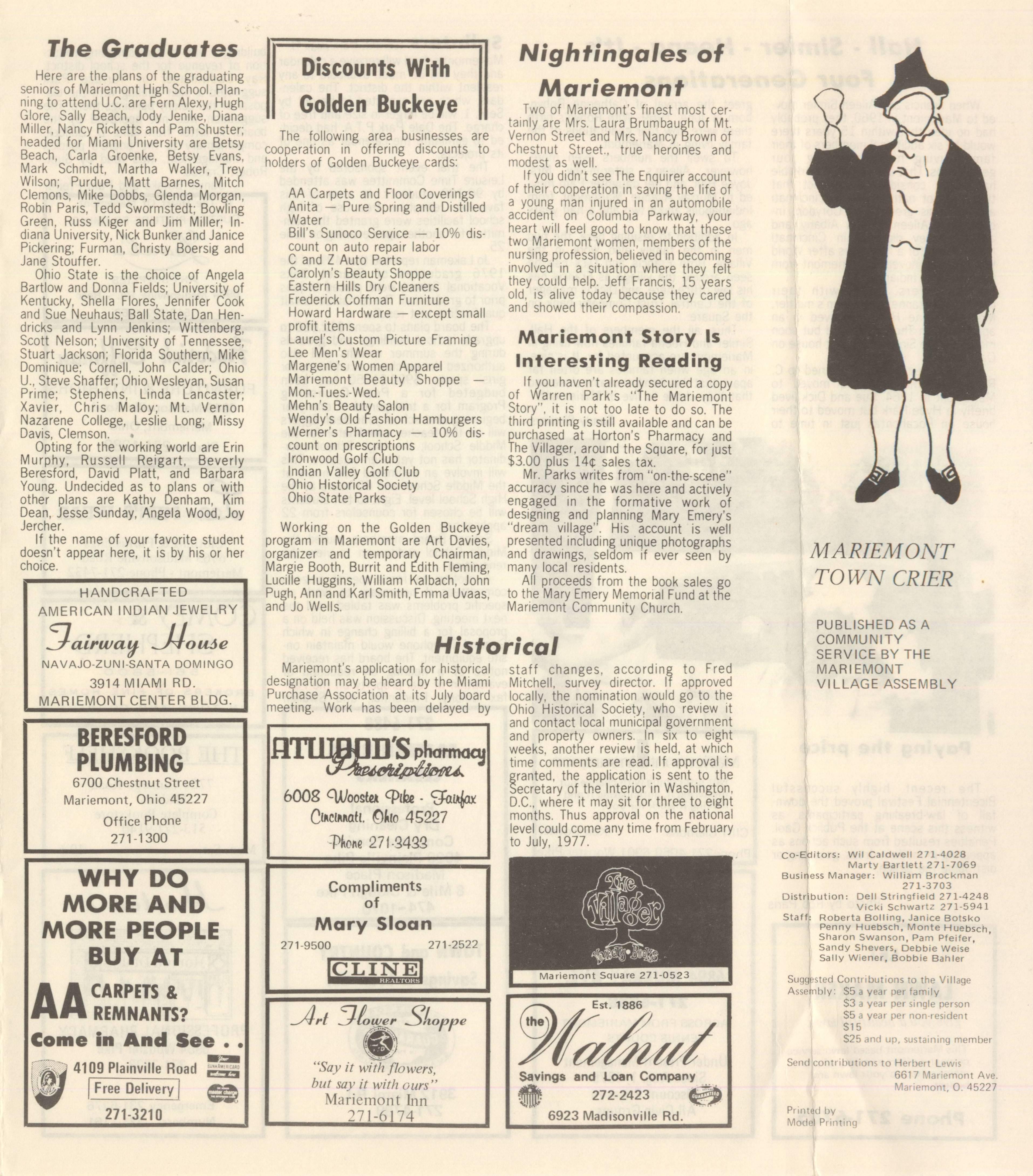 Mariemont Town Crier, June 1976, Vol. 1, No. 8