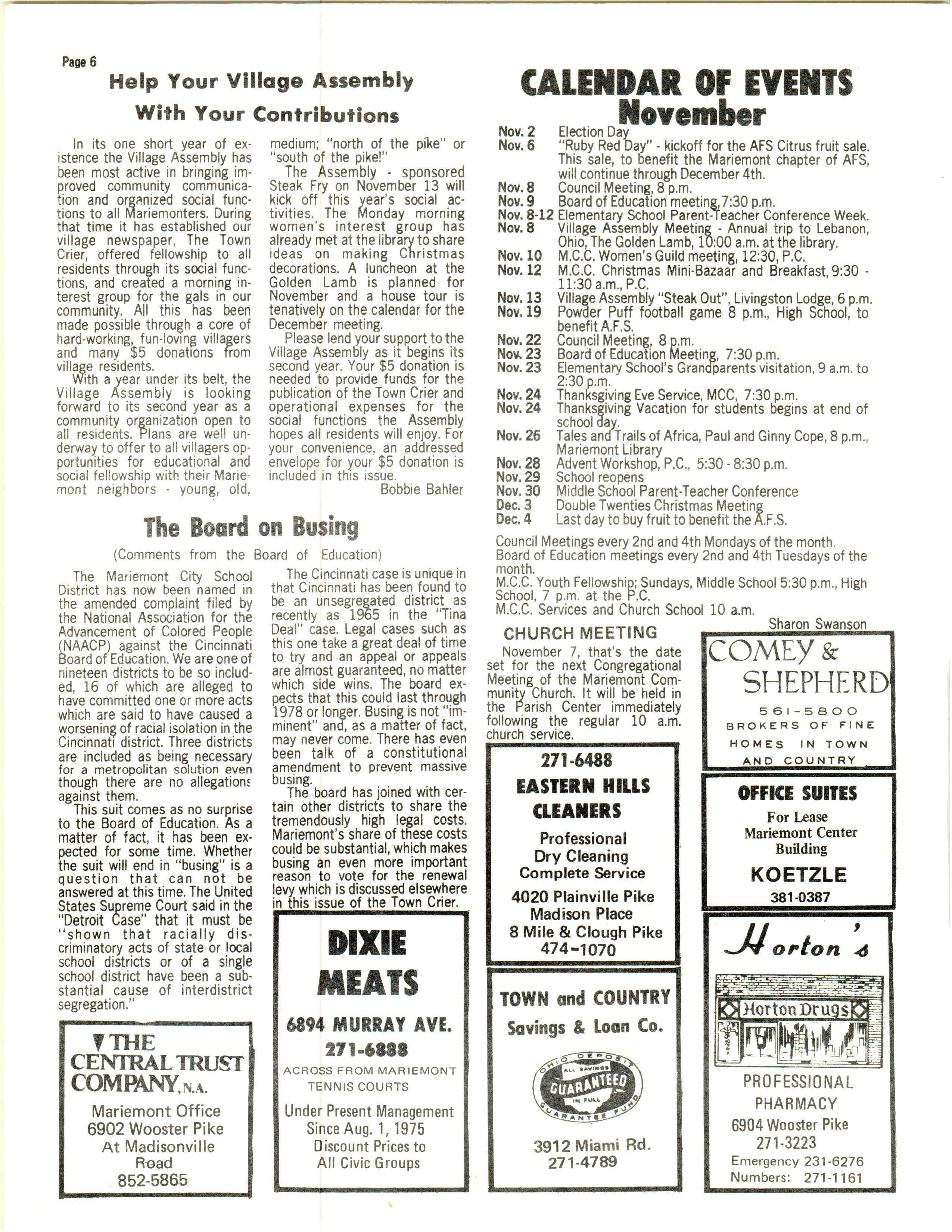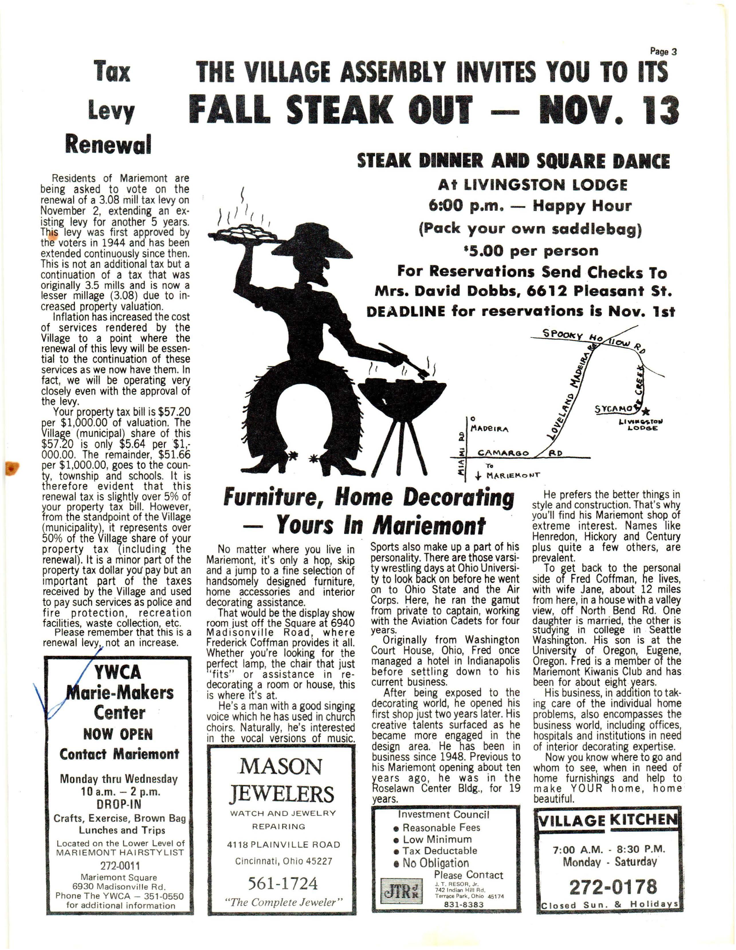PUBLISHED AS A COMMUNITY SERVICE BY THE MARIEMONT VILLAGE ASSEMBLY