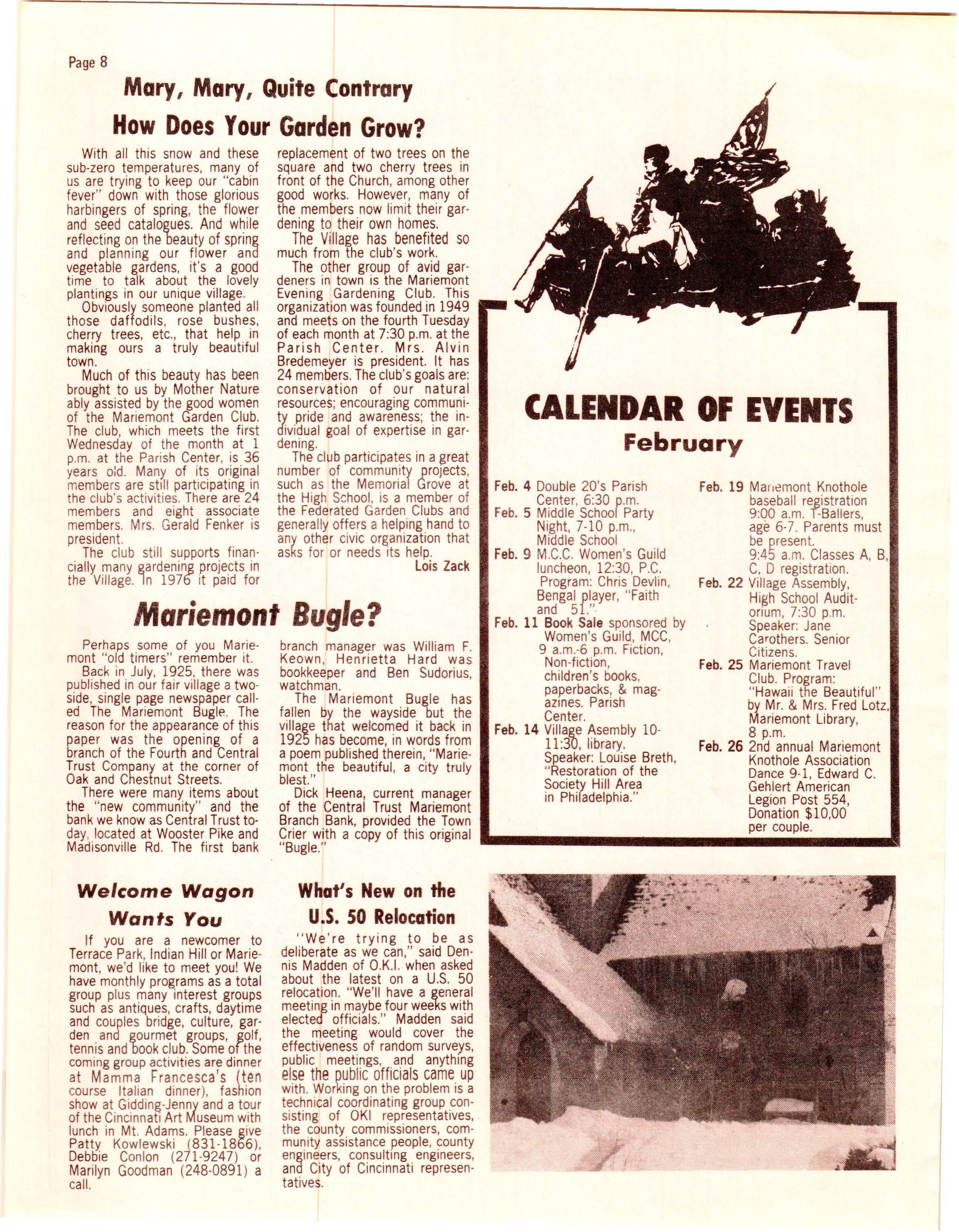 Dick Heena, current manager of the Central Trust Mariemont Branch Bank, provided the Town Crier with a copy of this original " Bugle ."