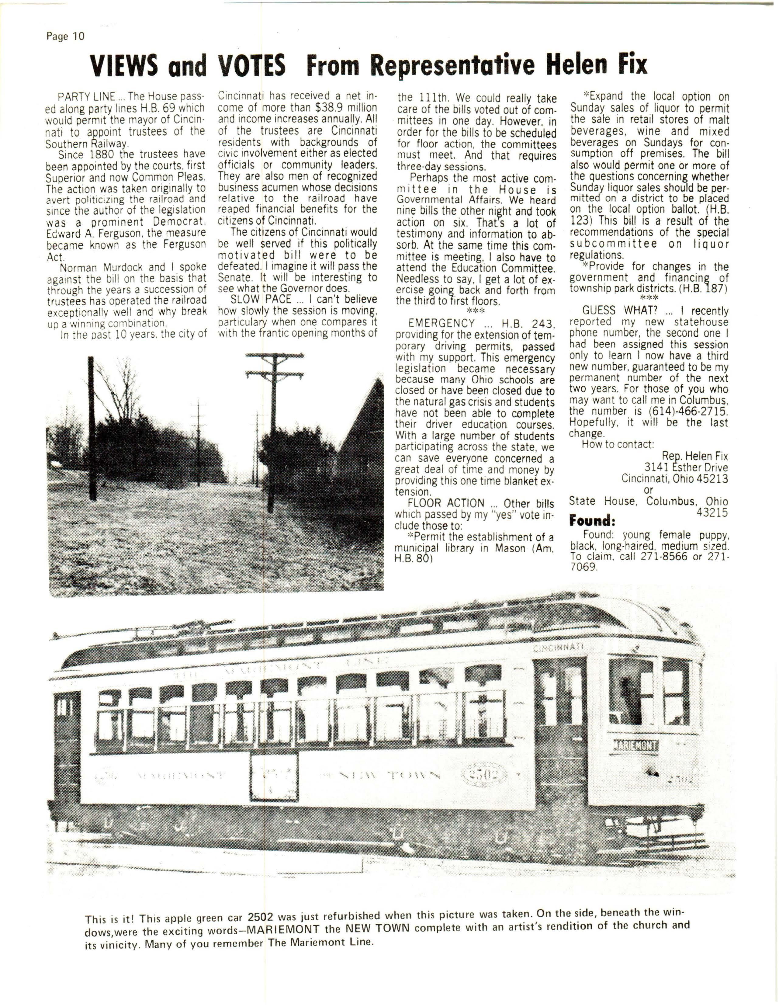 Rep Helen Fix 3141 Esther Drive Cincinnati, Ohio 45213 or State House , Colu,n bus , Oh i o r d 43215 1roun :