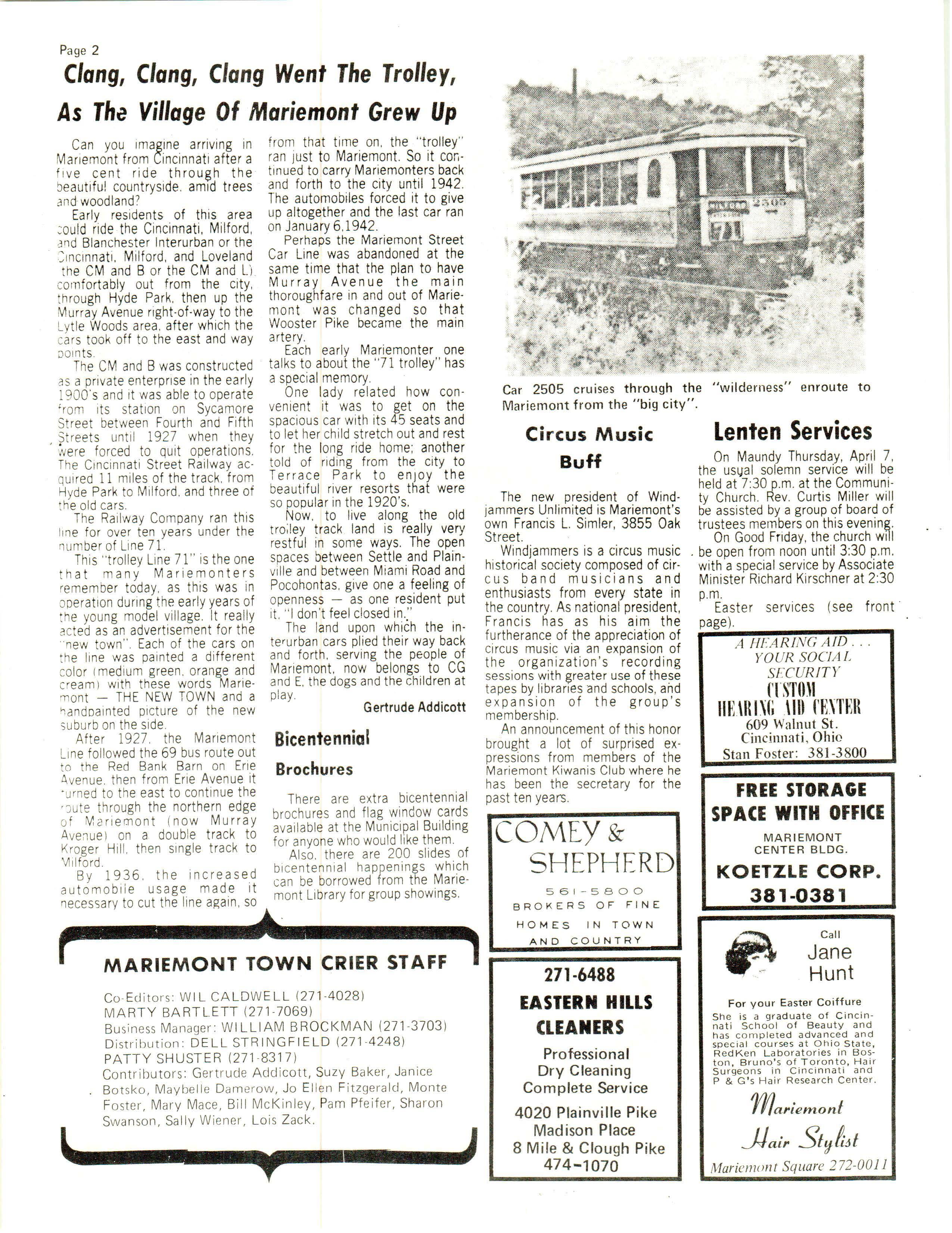MARIEMONT TOWN CRIER STAFF