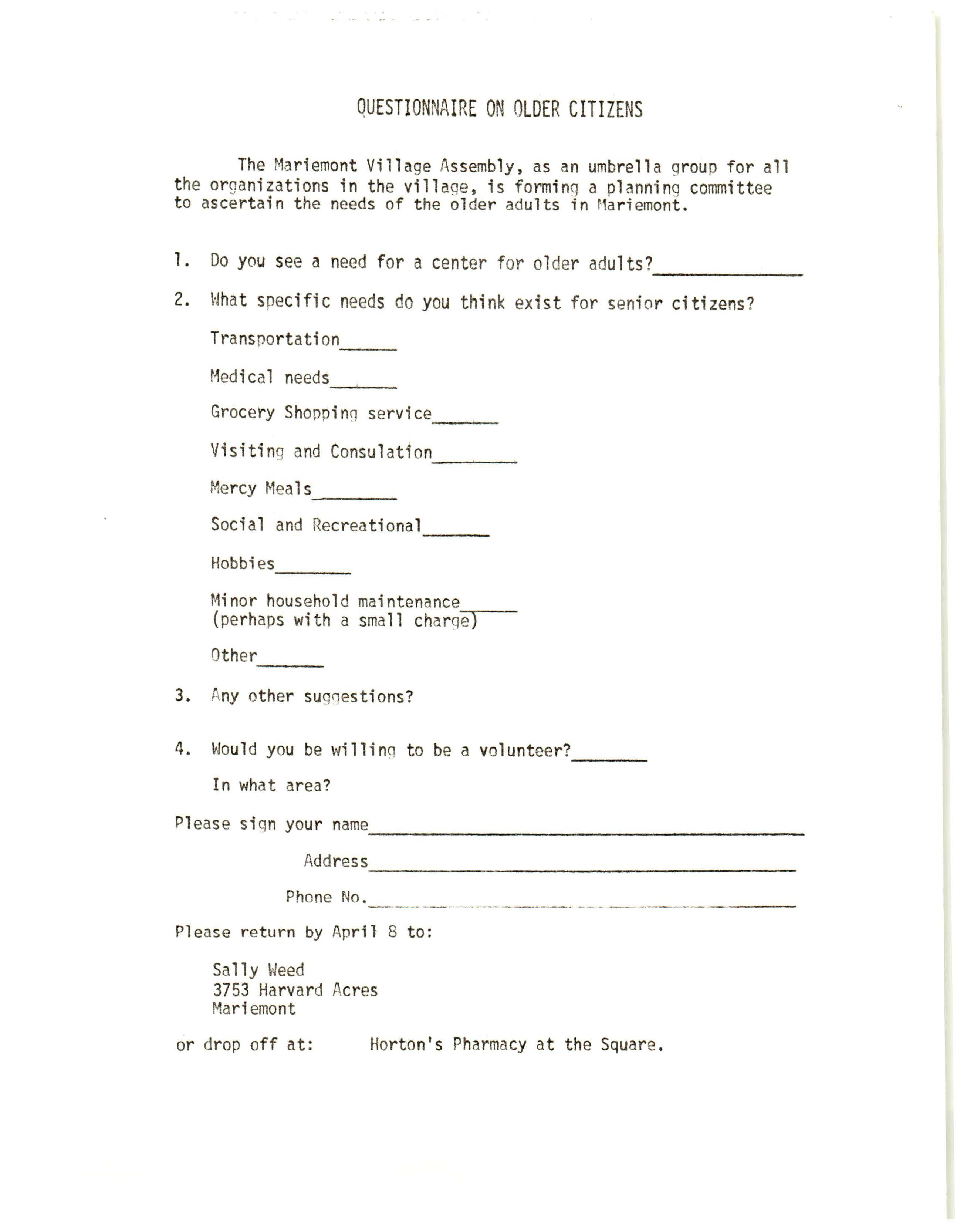 QUESTIONNAIRE ON OLDER CITIZENS