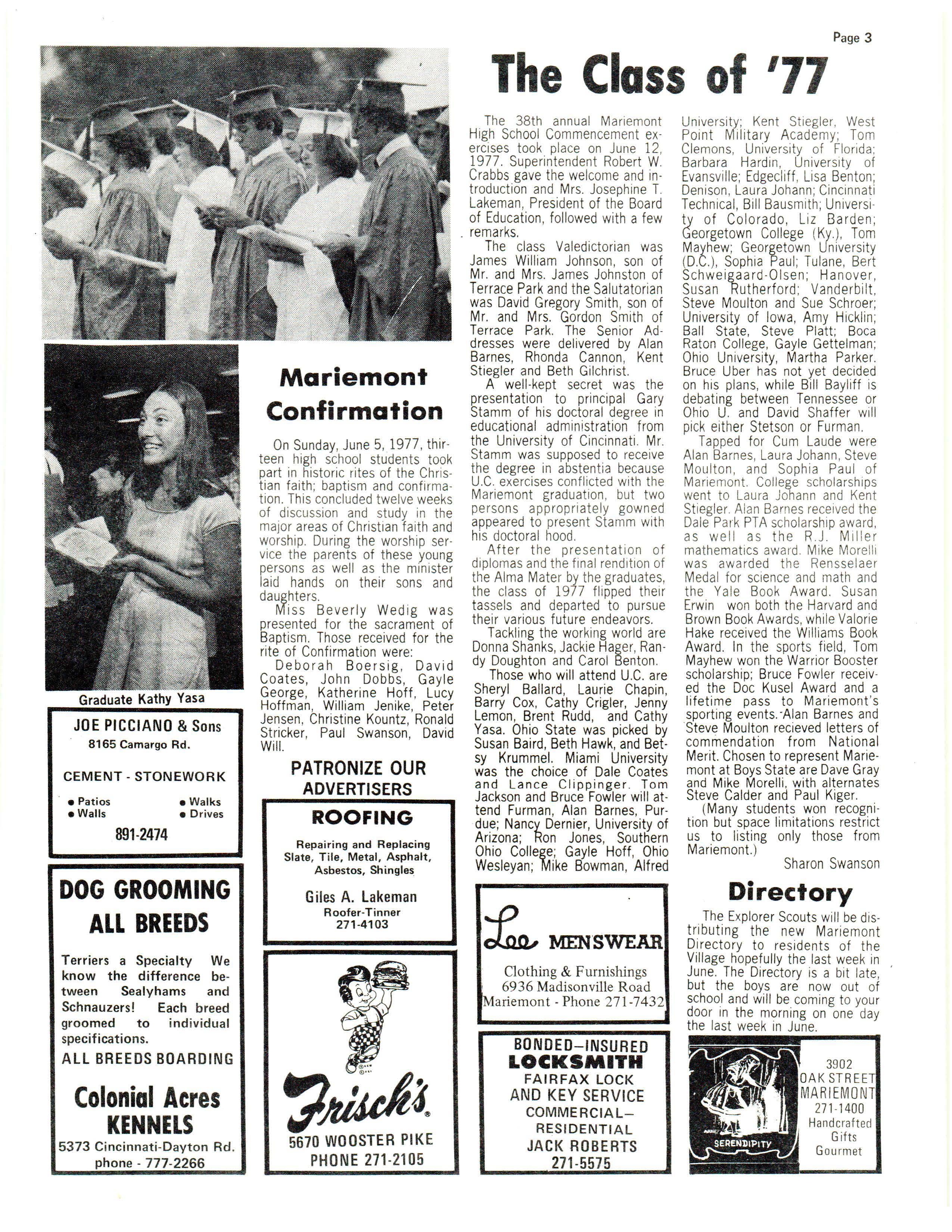 to all of the graduating class of Mariemont High Schoo l, class of 1977