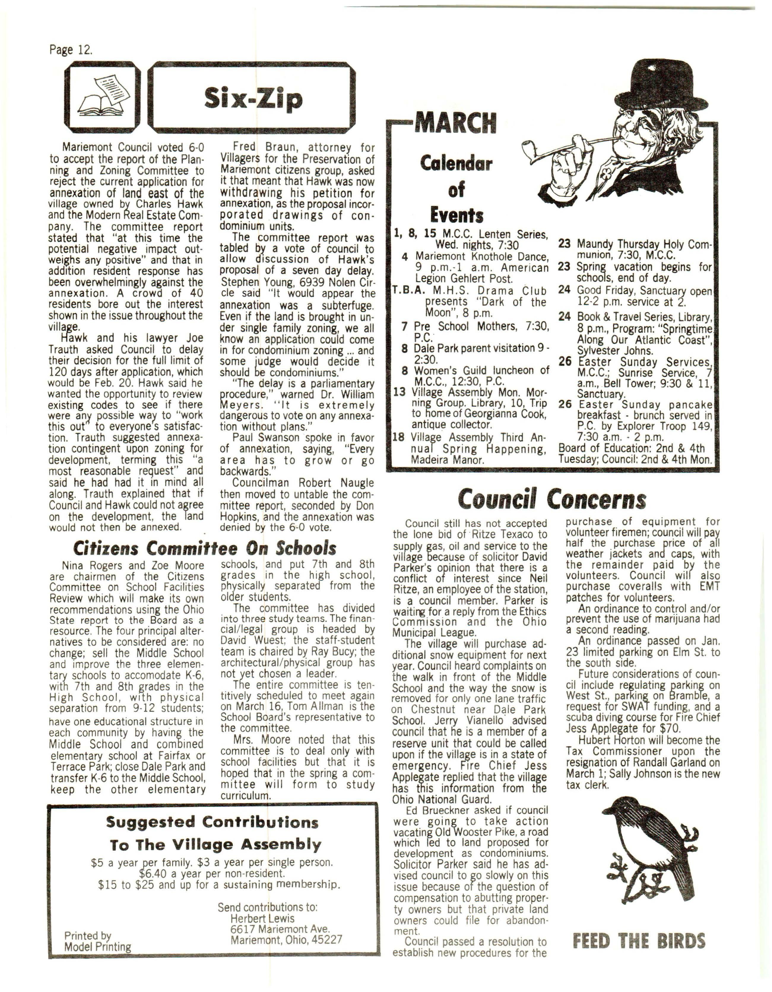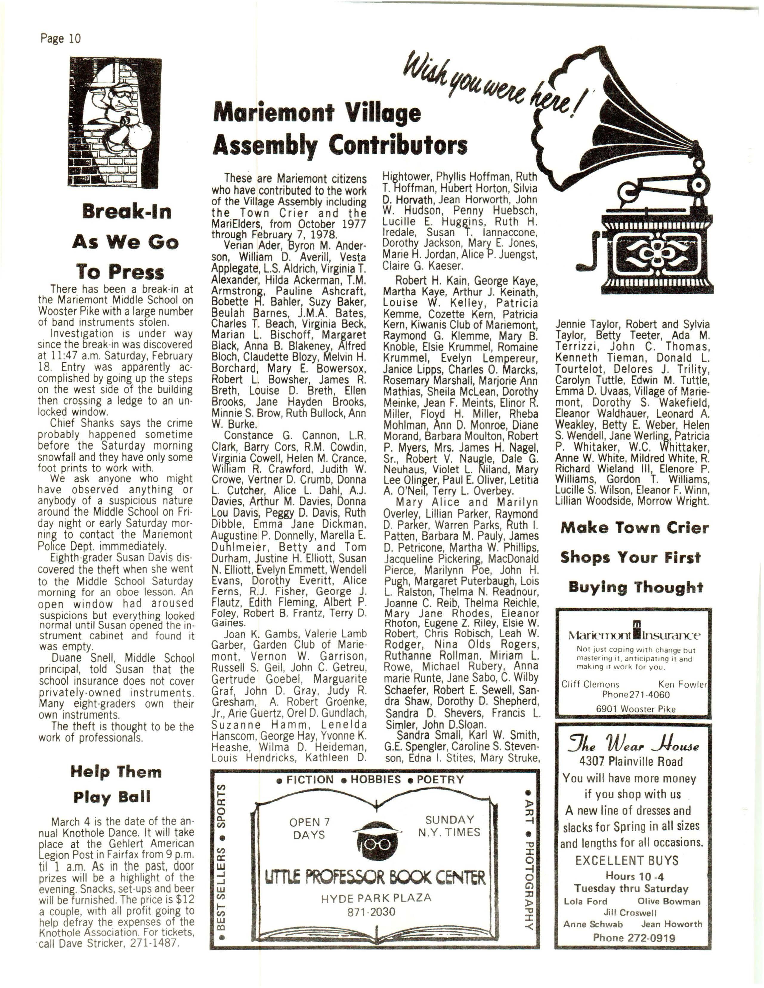 PUB LISHED AS A COMMUNITY SERVICE BY THE MARIEMONT VILLAGE ASSEMBLY