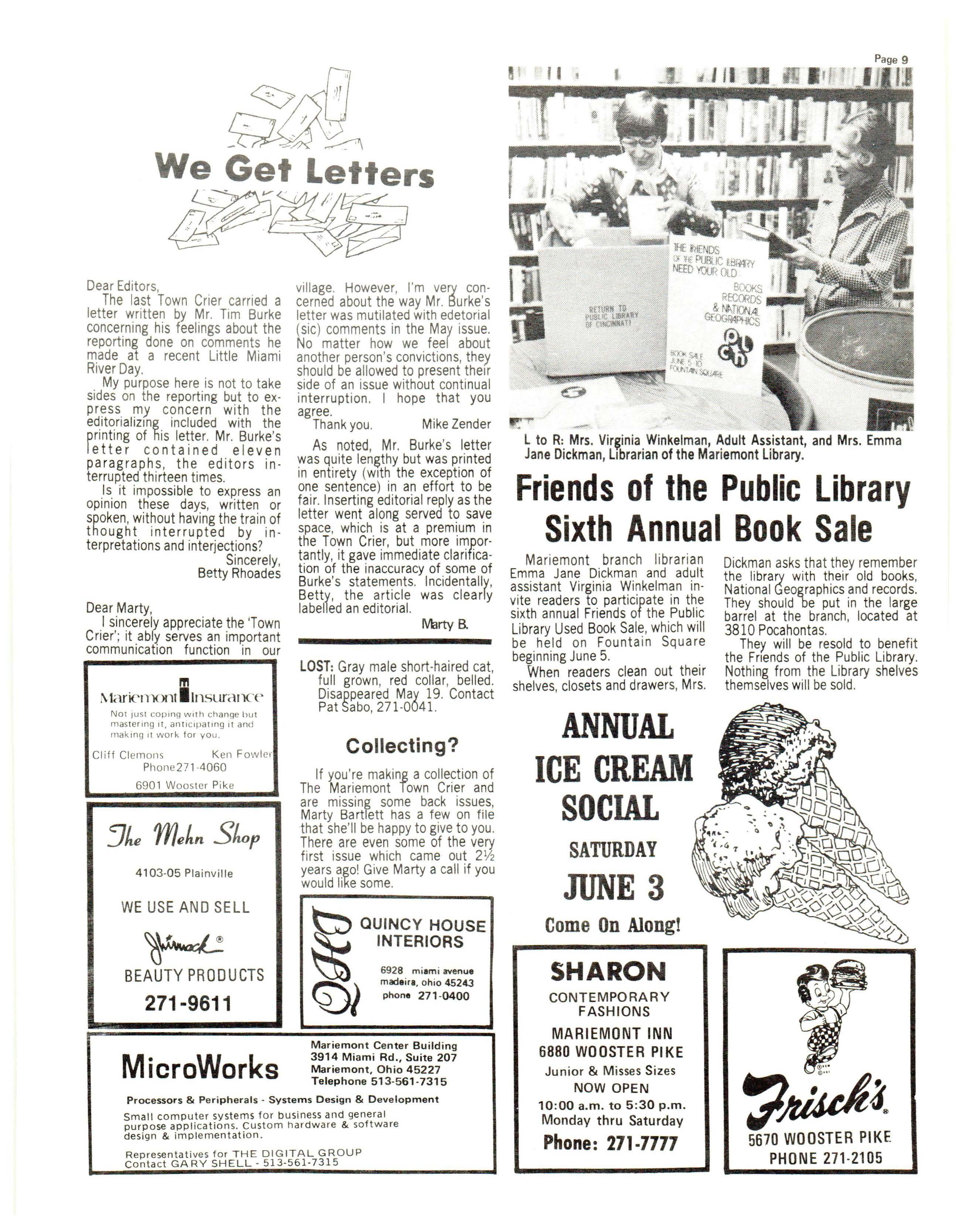 The last Town Crie r carried a letter wr itten by Mr. Tim Burke conc erning hi s f ee lings about the reportin g done on comments he mad e at a recent Litt le Miami River Day.