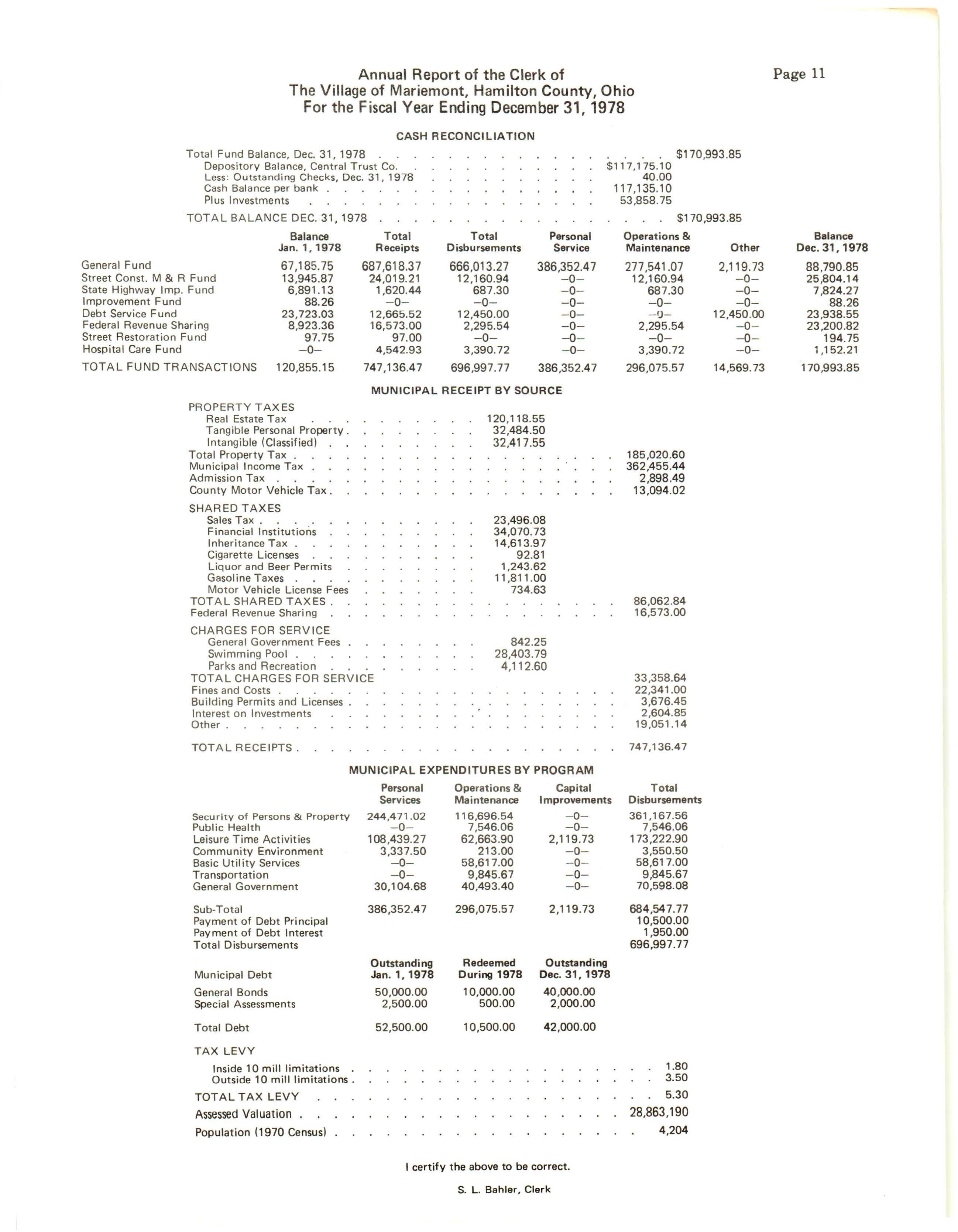 Annual Report of the Clerk of The Village of Mariemont, Hamilton County, Ohio For the Fiscal Year Ending December 31, 1978