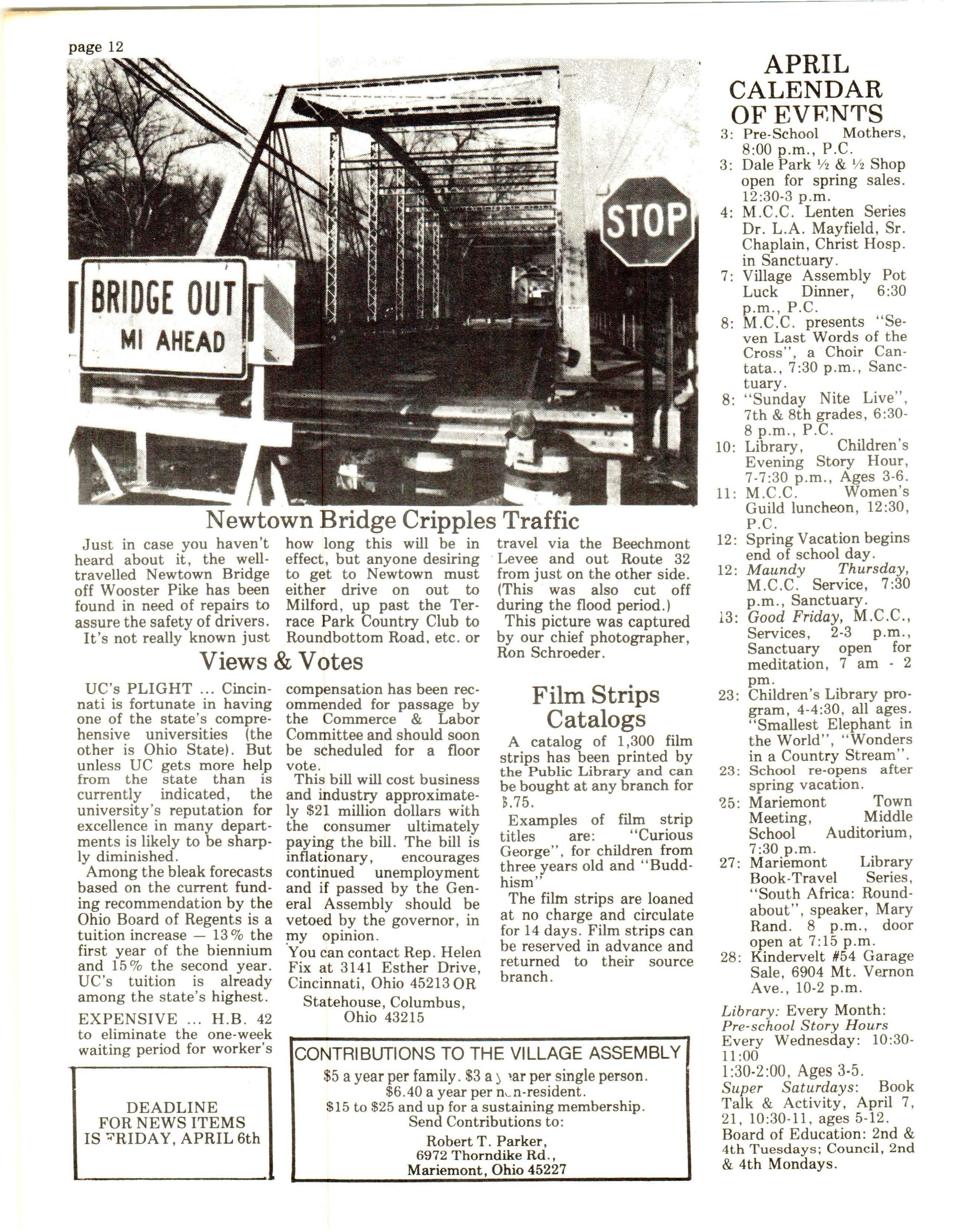 Just in case you haven't how long this will be in travel via the Beechmont heard about it, the well- effect, but anyone desiring · Levee and out Route 32 travelled Newtown Bridge to get to Newtown must from just on the other side off Wooster Pike has been either drive on out to (This was also cut off found in need of repairs to Milford, up past the Ter- during the flood period .) assure the safety of drivers. race Park Country Club to This picture was captured It's not really known just Roundbottom Road , etc or by our chief photographer, Views & Votes Ron Schroeder.