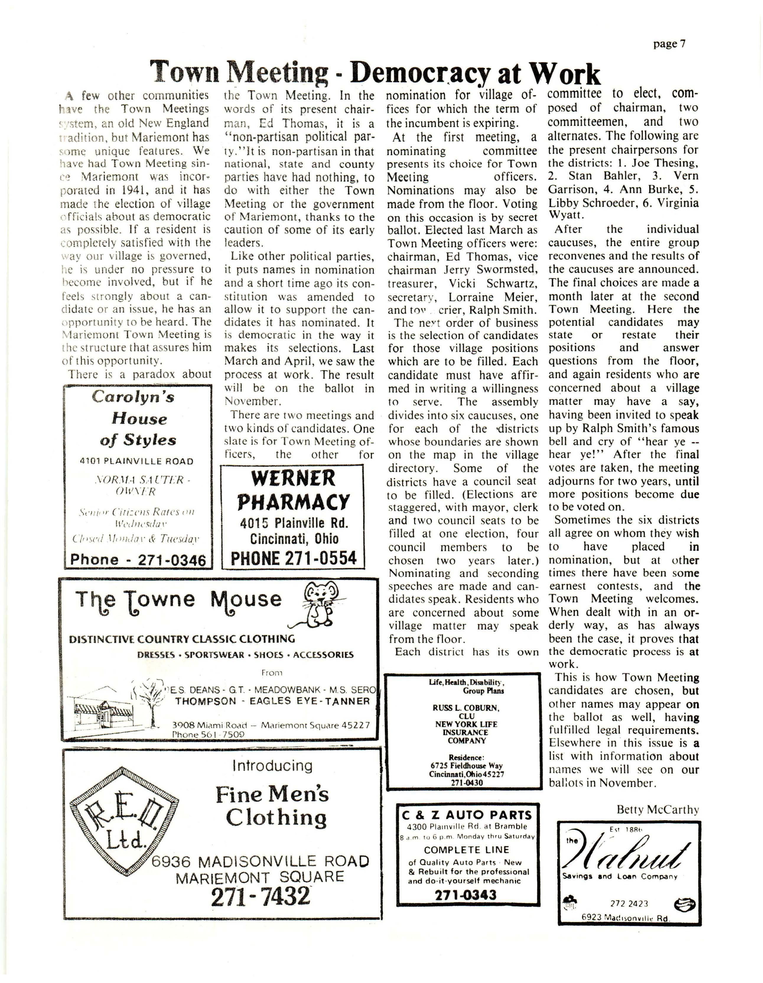 MARIEMONT VILLAGE ASSEMBLY