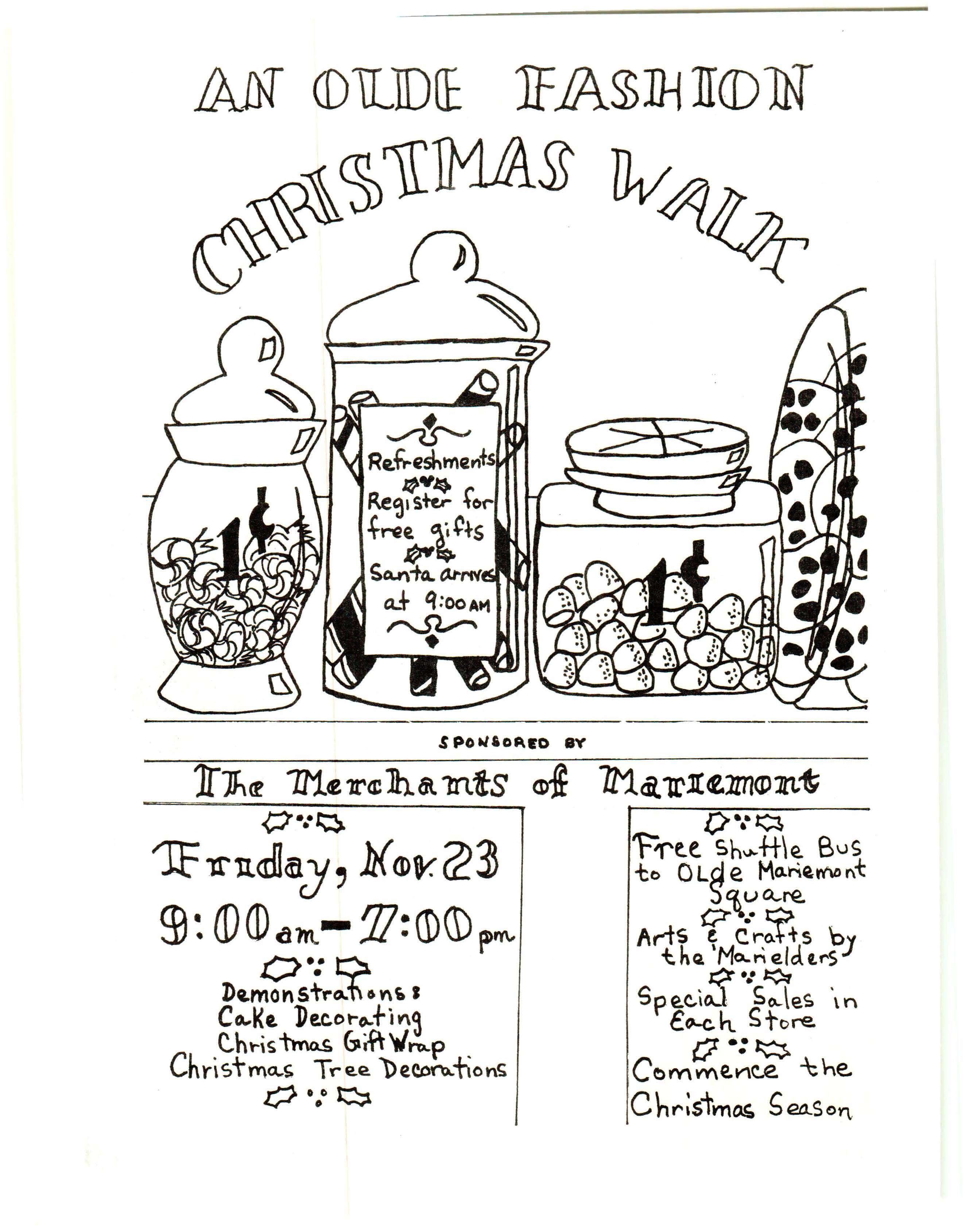 Celebra t e Chr istma s Ma ri emont styl e o n Nov ember 23 a s the me r c hants of t he Villa ge pr e se nt an Old F ashion ed C h ristmas Walk throughout historic Mariemont.