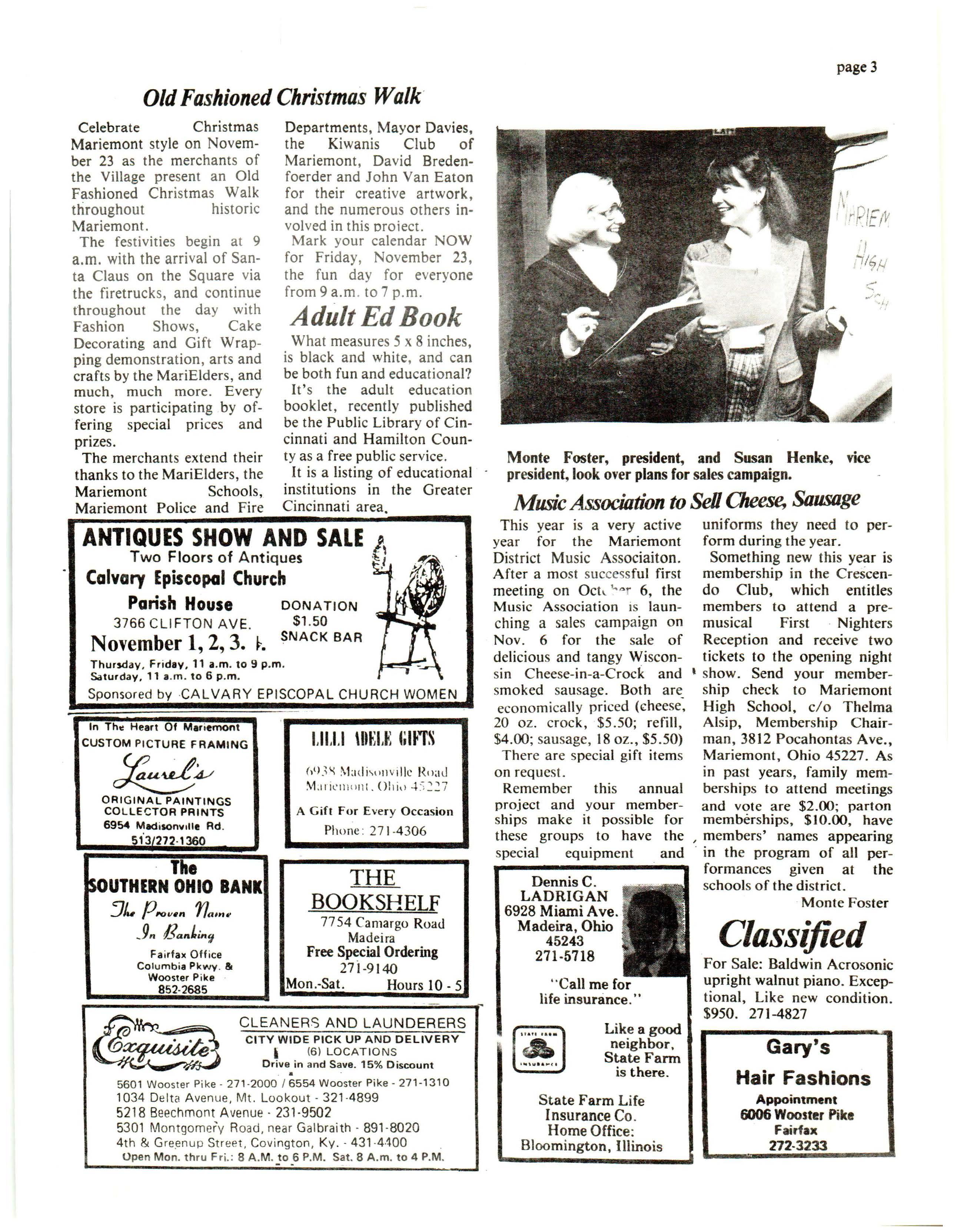 At the ::September meeting of the Board of Trustee s of the Mariemont Assembly Program for Older Adults, officers were elected for the coming year. Betsy Smith (Mrs. William K.) will be the new chariman, and Sally Weed vice-chairman, and Dick Adams was re-elected treasurer and Carolyn Scbwenkmeyer, secretary. Garden Club Postpo:ned _ Ruth Voelker, publicity chairman , announces that the November 7 meeting of the Mariemont Garden Club will not be held uritil February 6, 1980, because of the scheduled Peppermint Preview on that day.