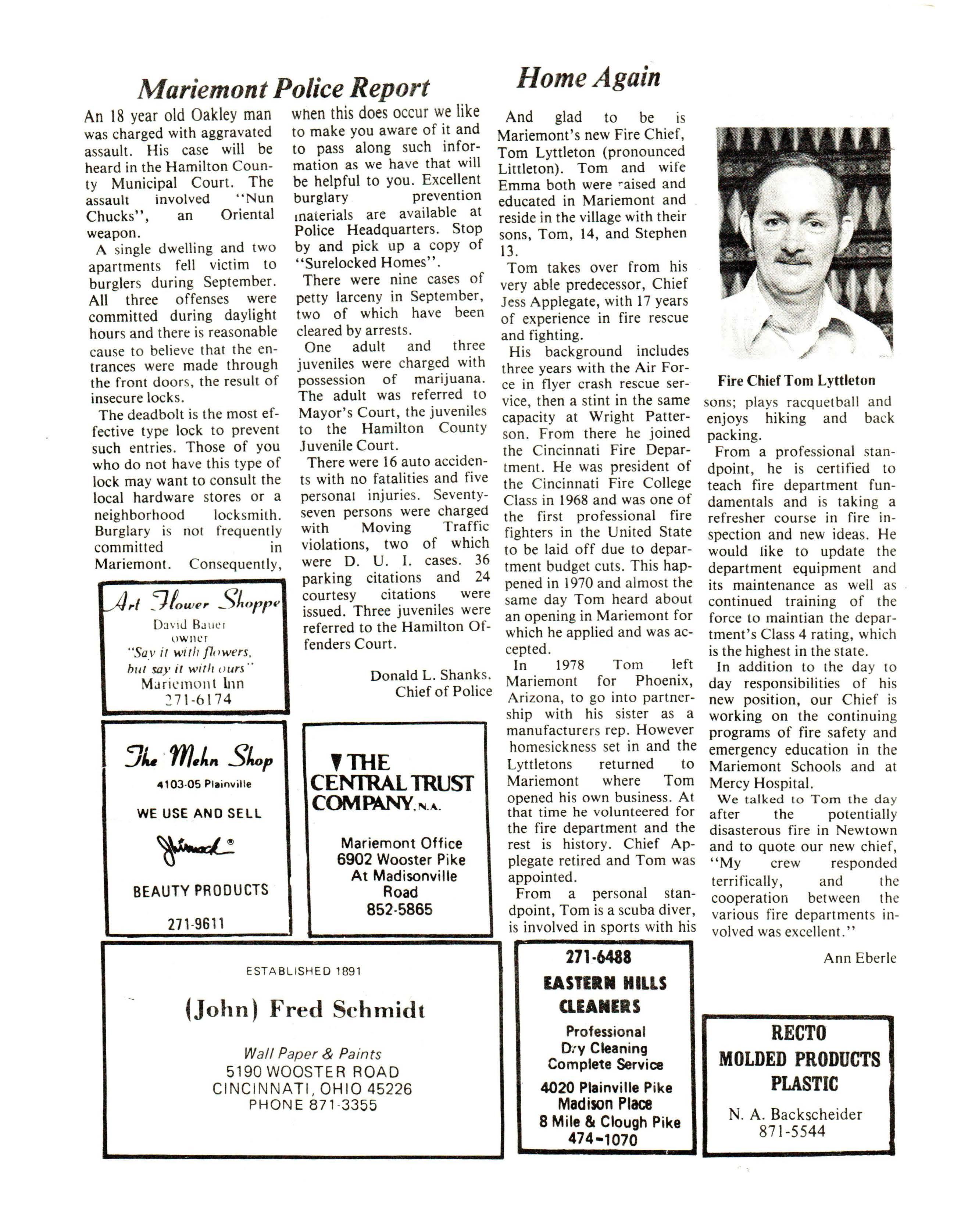 Depa rtme nts , May or Dav ies, the K iwan is Club of Mar iemont , D av id Brede nfoe rde r a nd John Va n E ato n for th ei r cre a tive artw or k, and the numerous others involved in this oroiect.