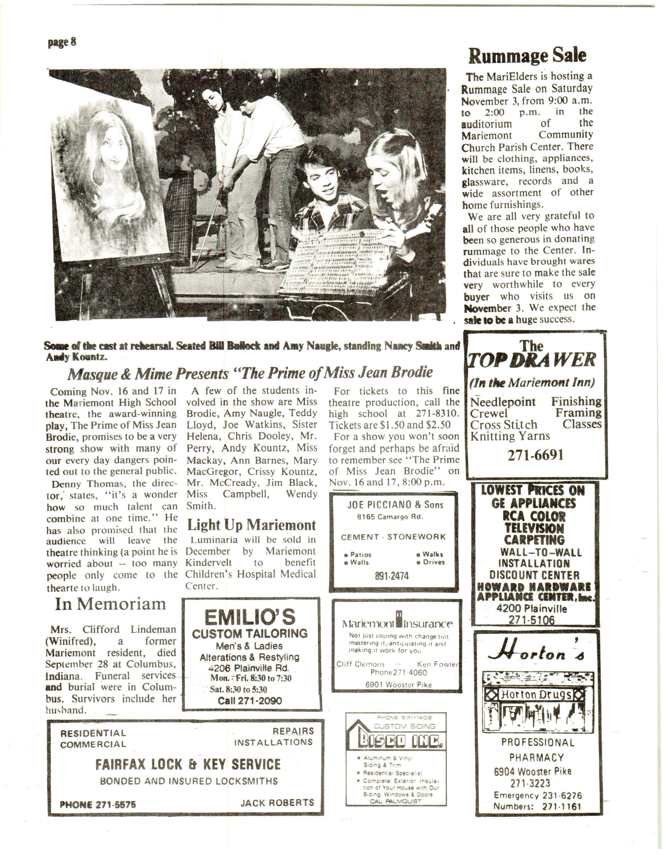 16 & 17: MHS Fall Play, "The Prime of Miss Jean Brodie" 8:00 , Ticket Prices, $1.50 &$2.50