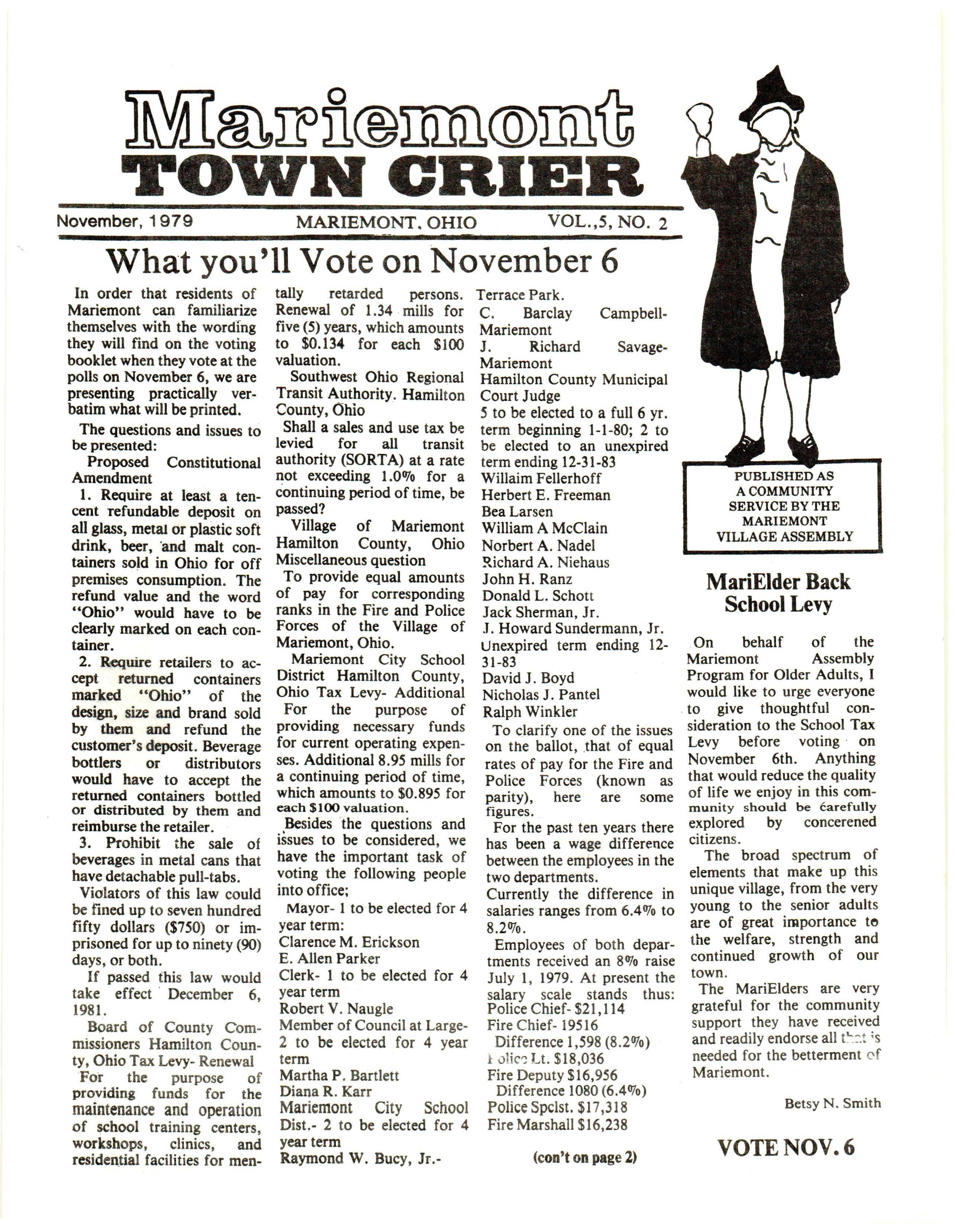Mariemont Town Crier, November 1979, Vol. 5, No. 2