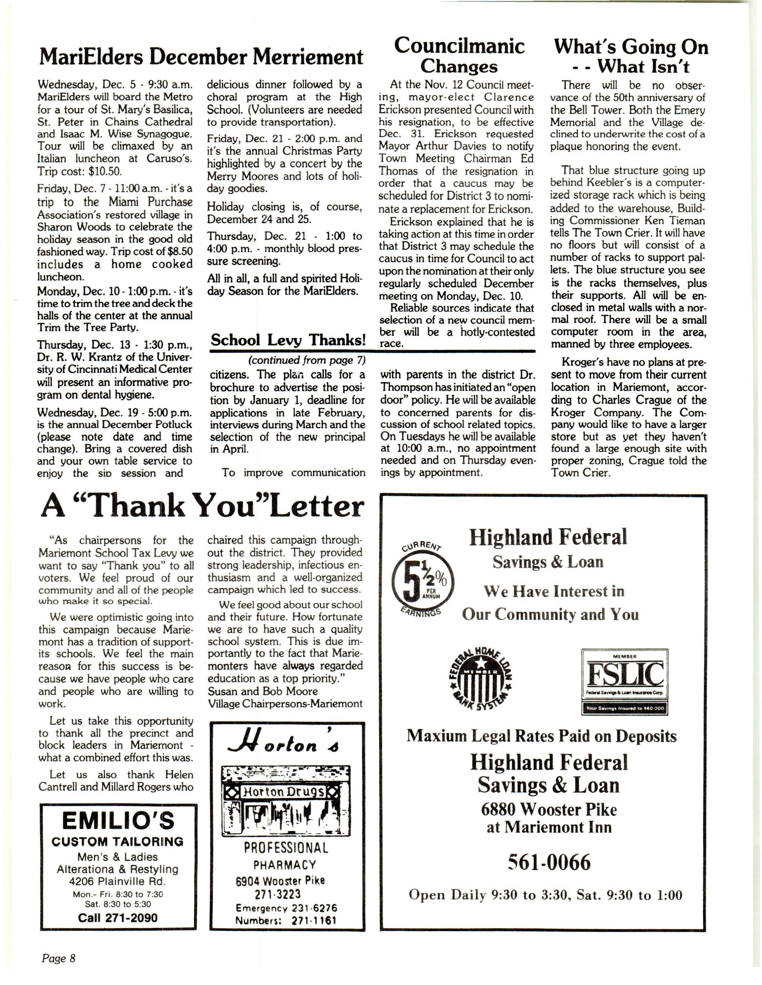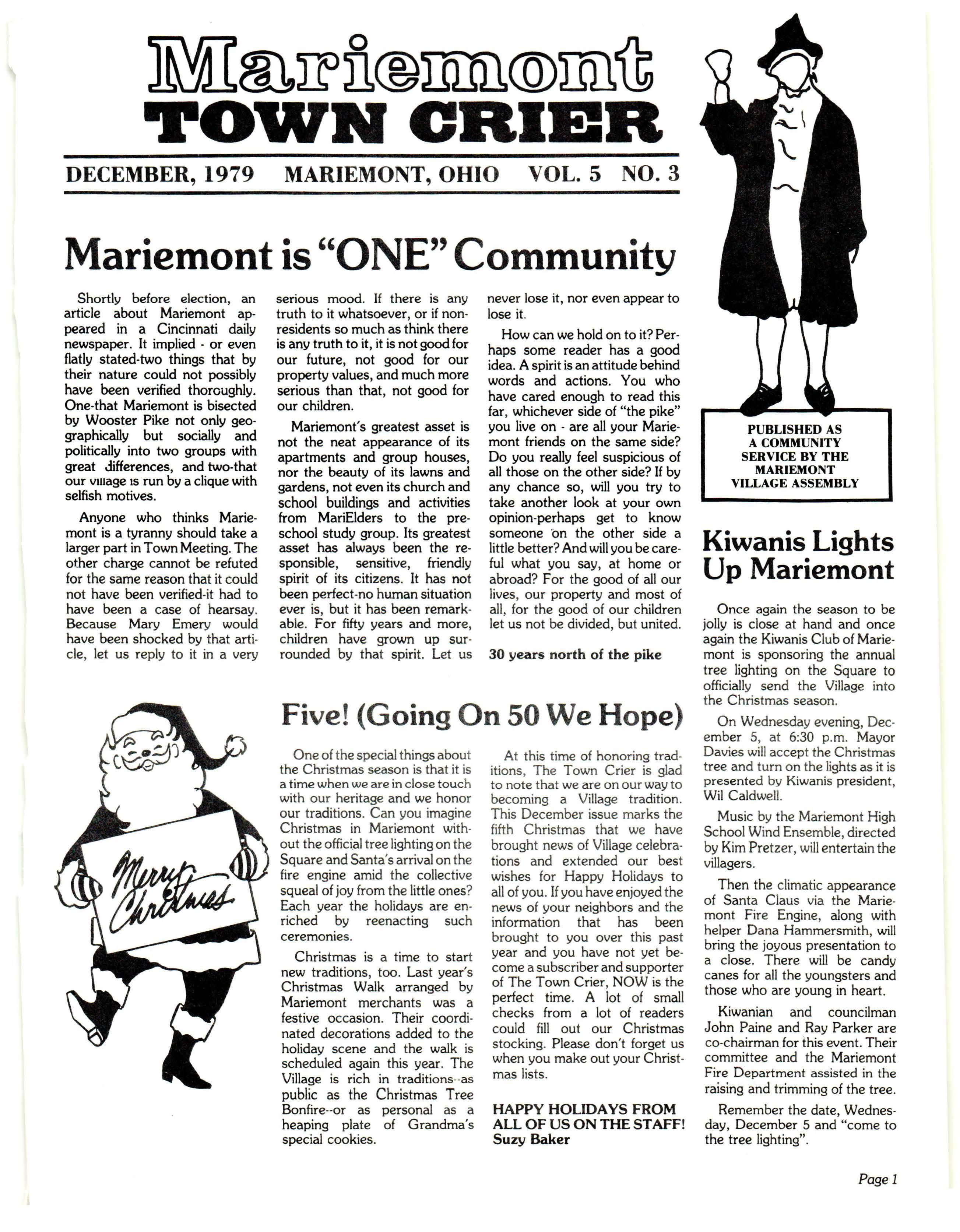 Mariemont Town Crier, December 1979, Vol. 5, No. 3