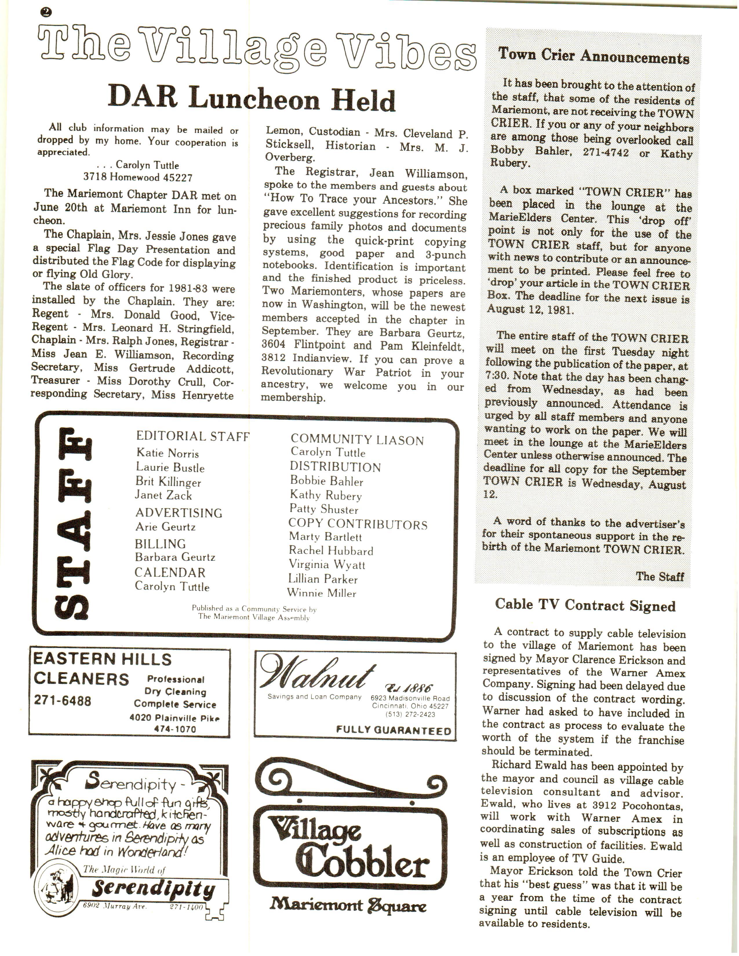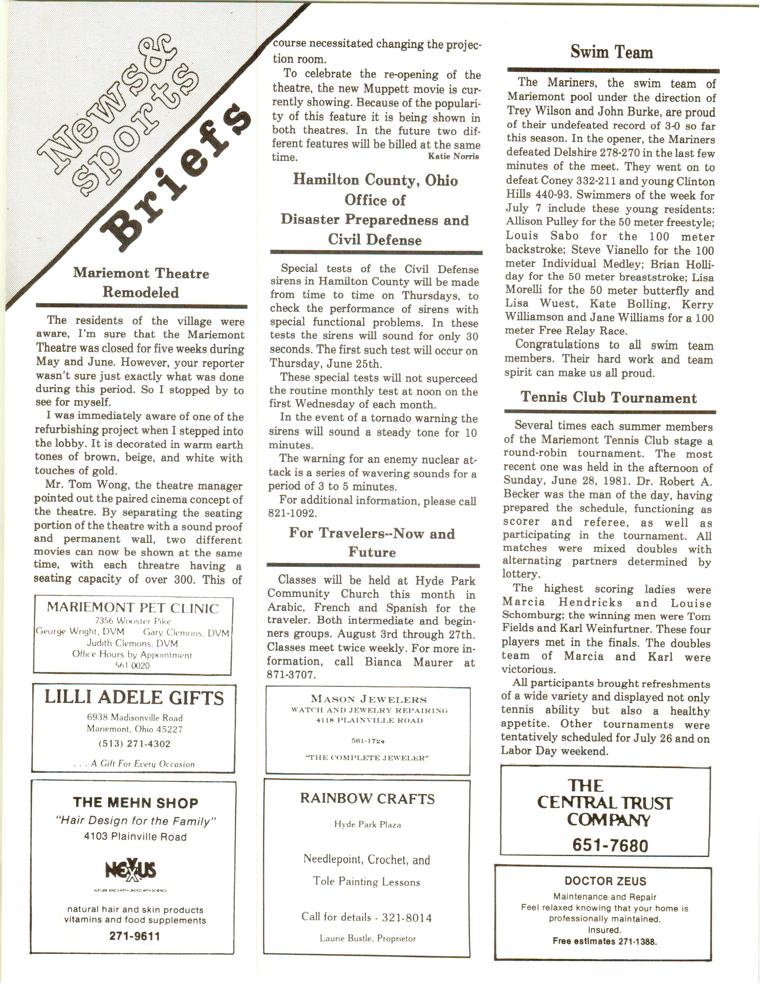 Mariemont Town Crier, August 1981, Vol. 8, No. 3