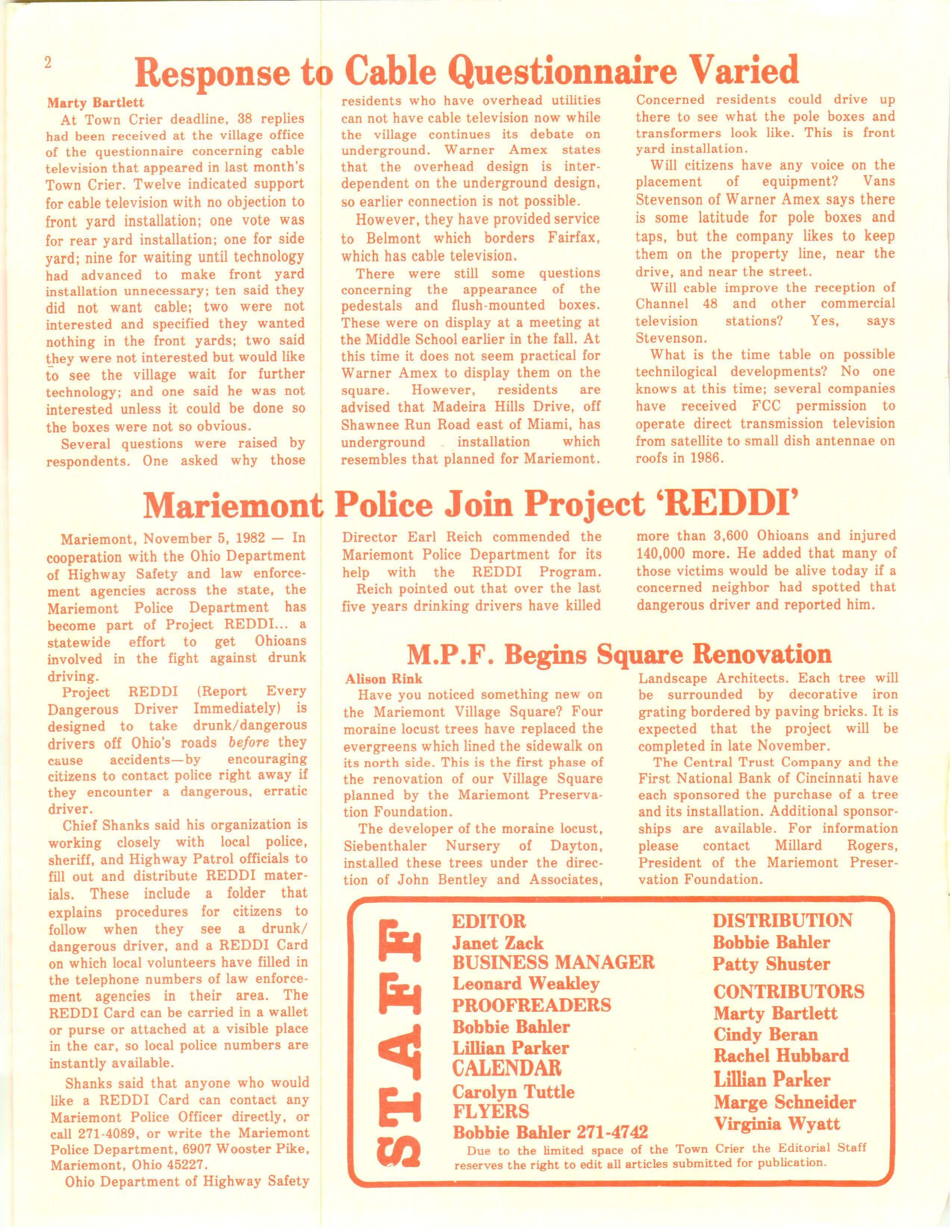 Mariemont Town Crier, December 1982, Vol. 9, No. 9