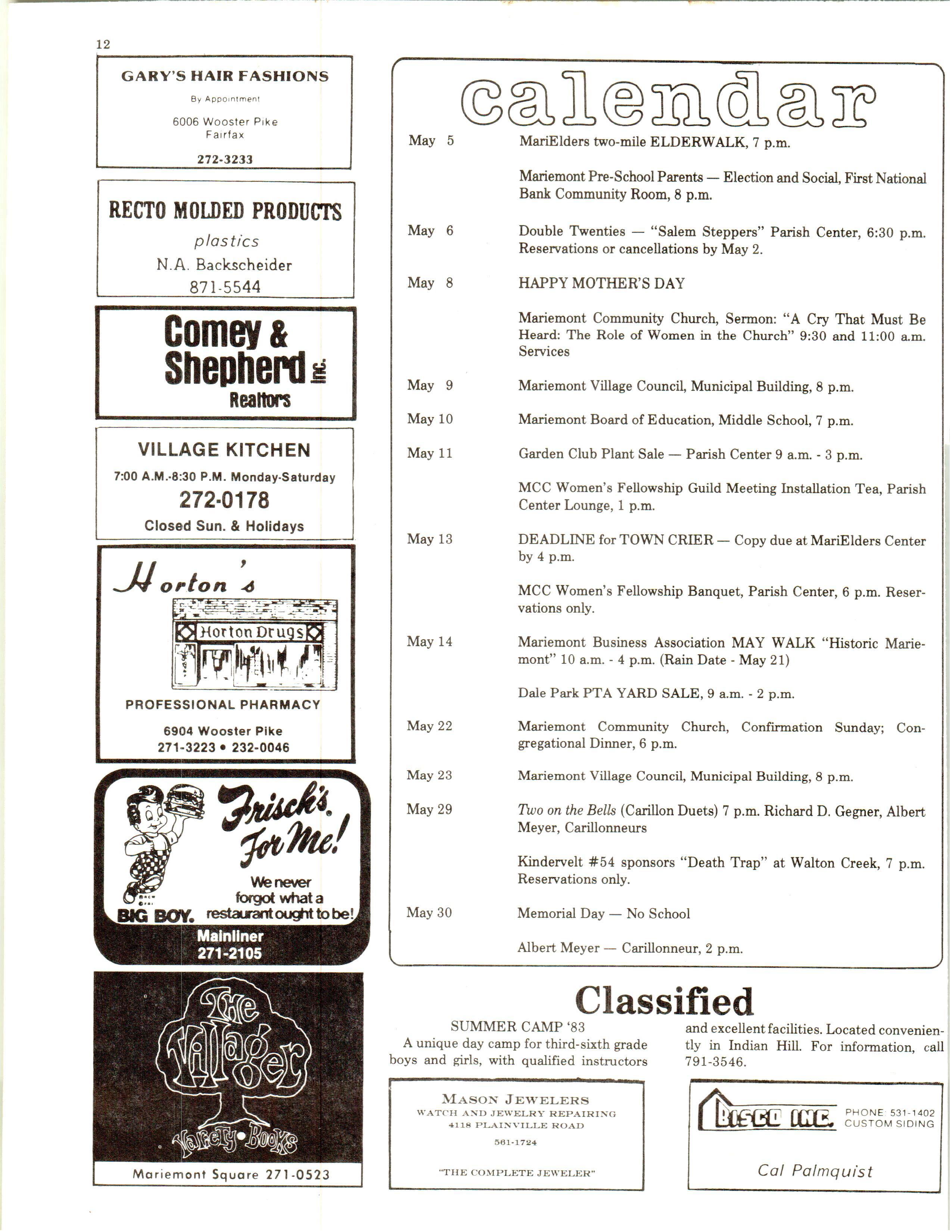 Mariemont Town Crier, May 1983, Vol. 10, No. 4