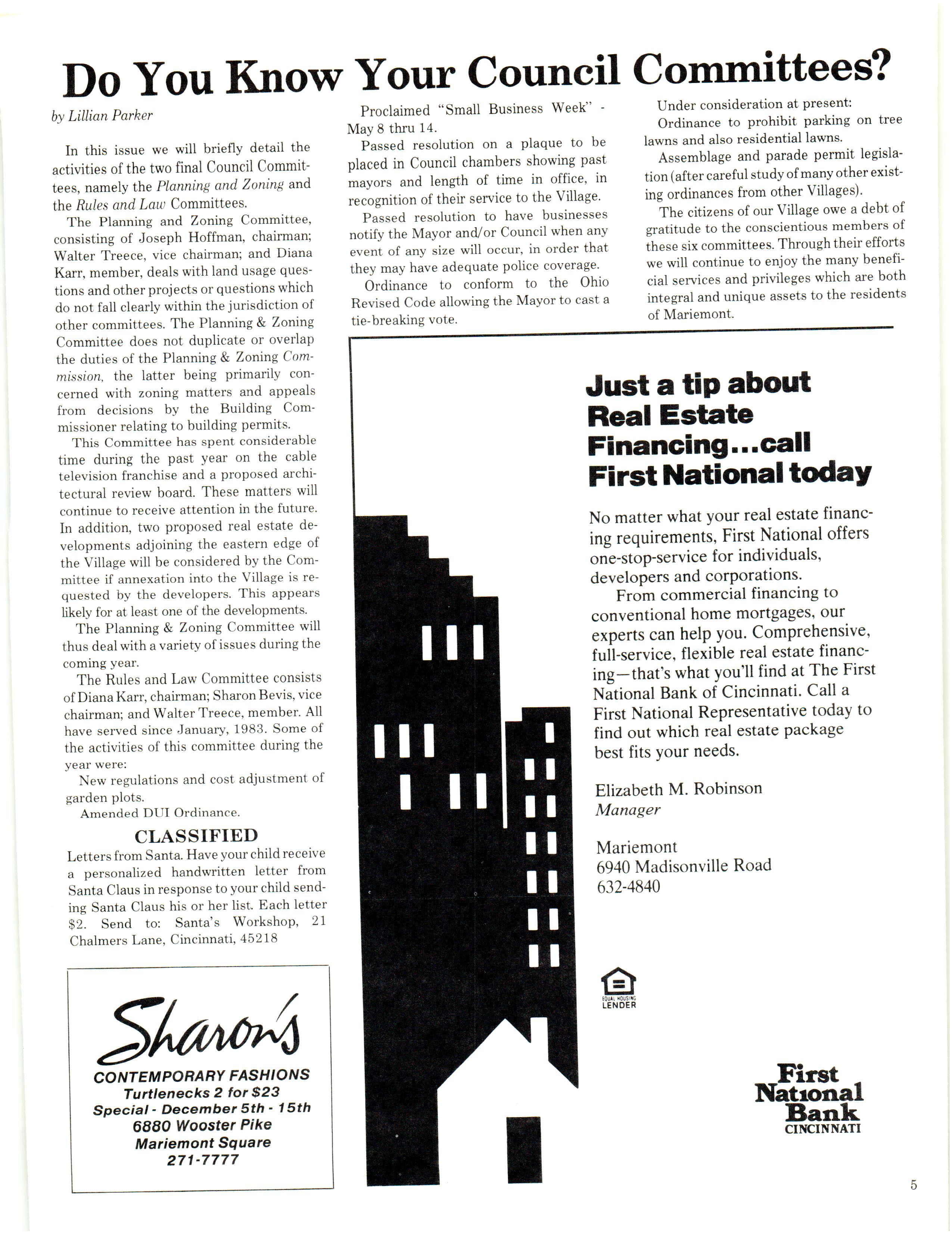 Mariemont Town Crier, December 1983, Vol. 10, No. 10