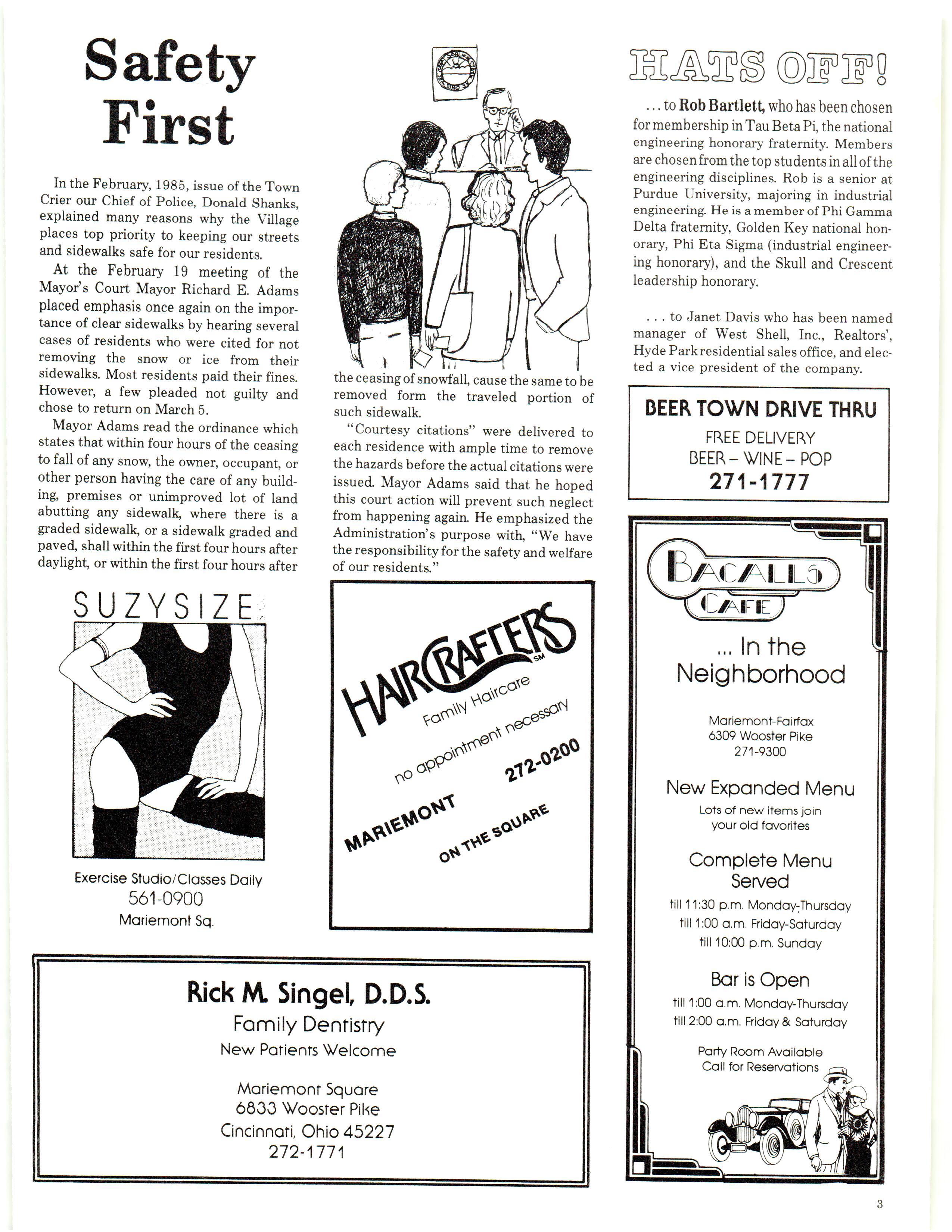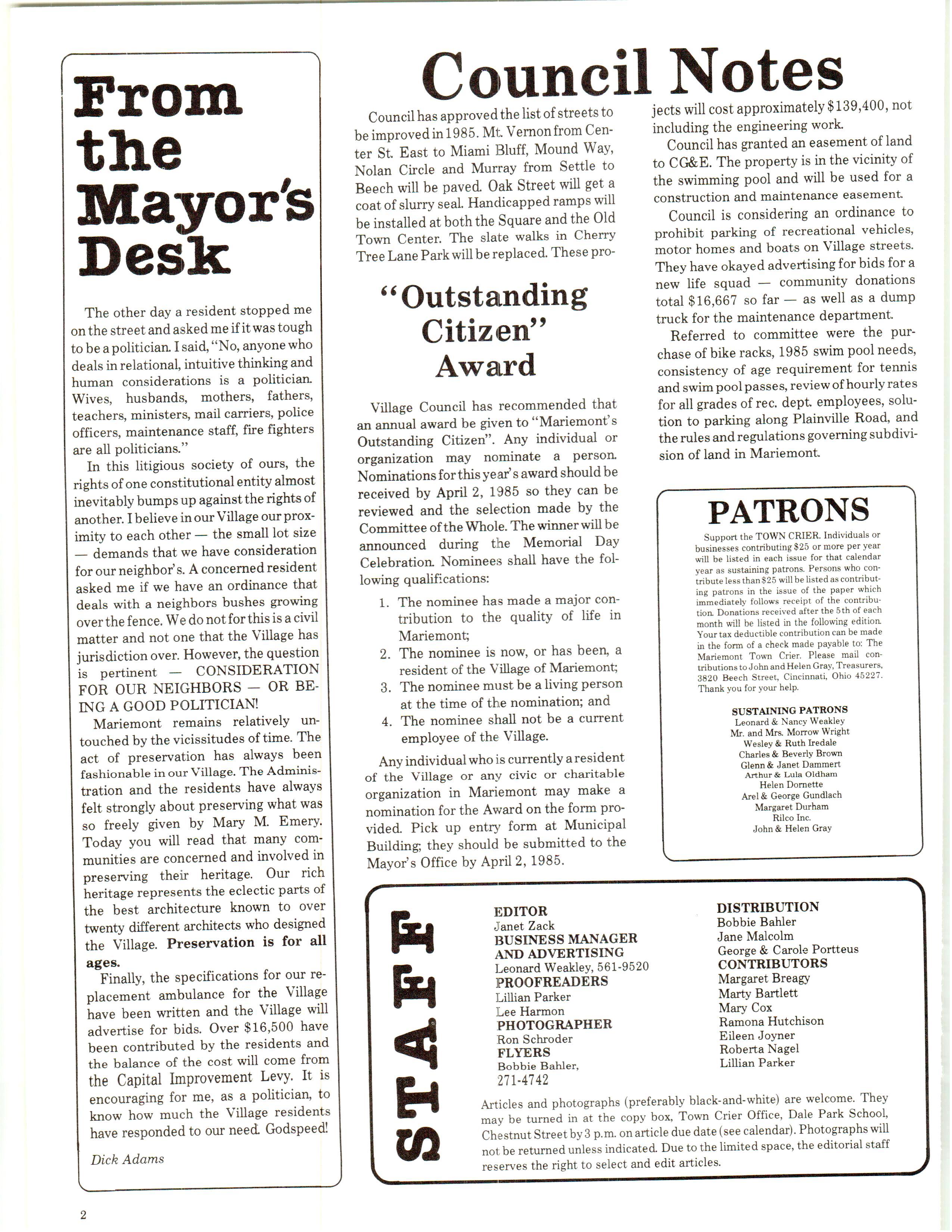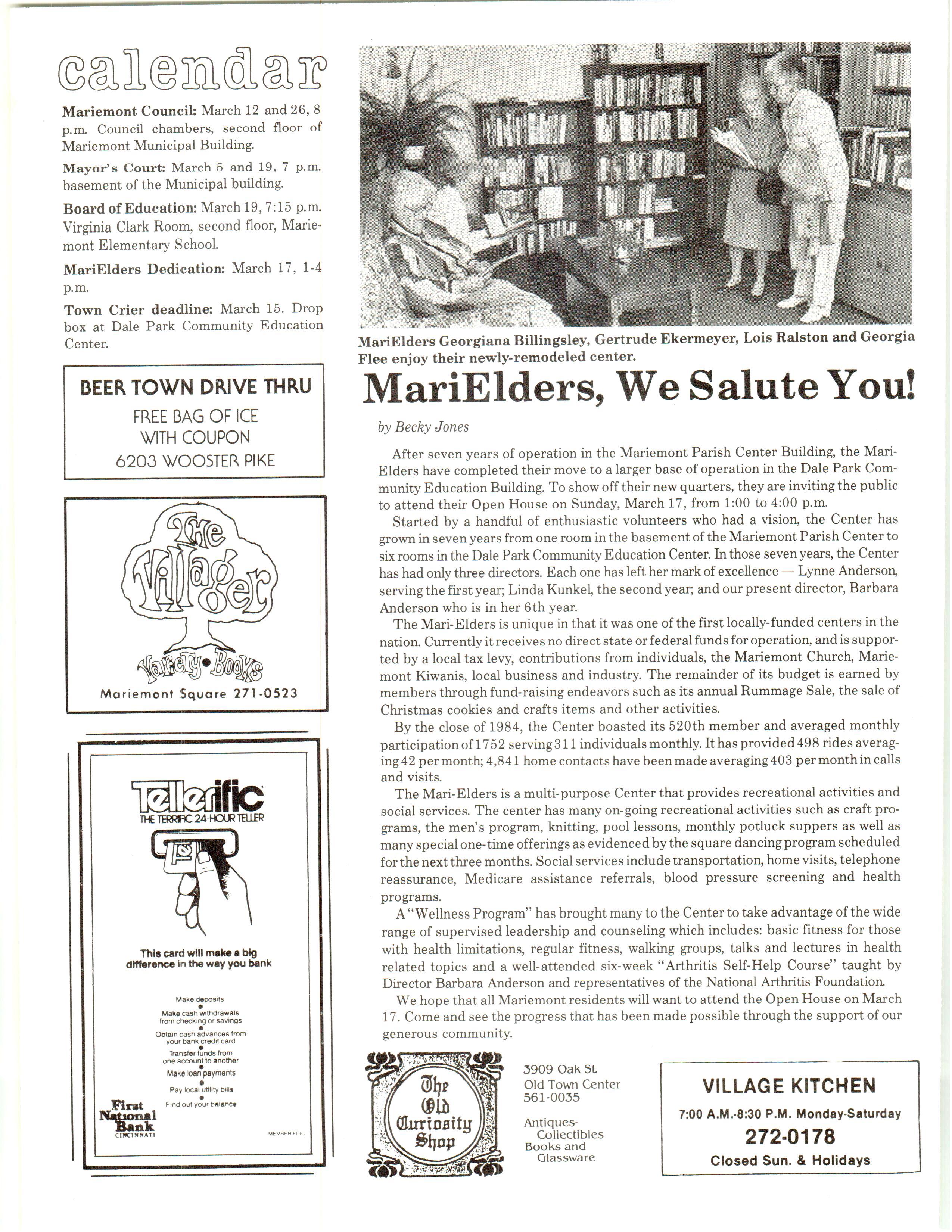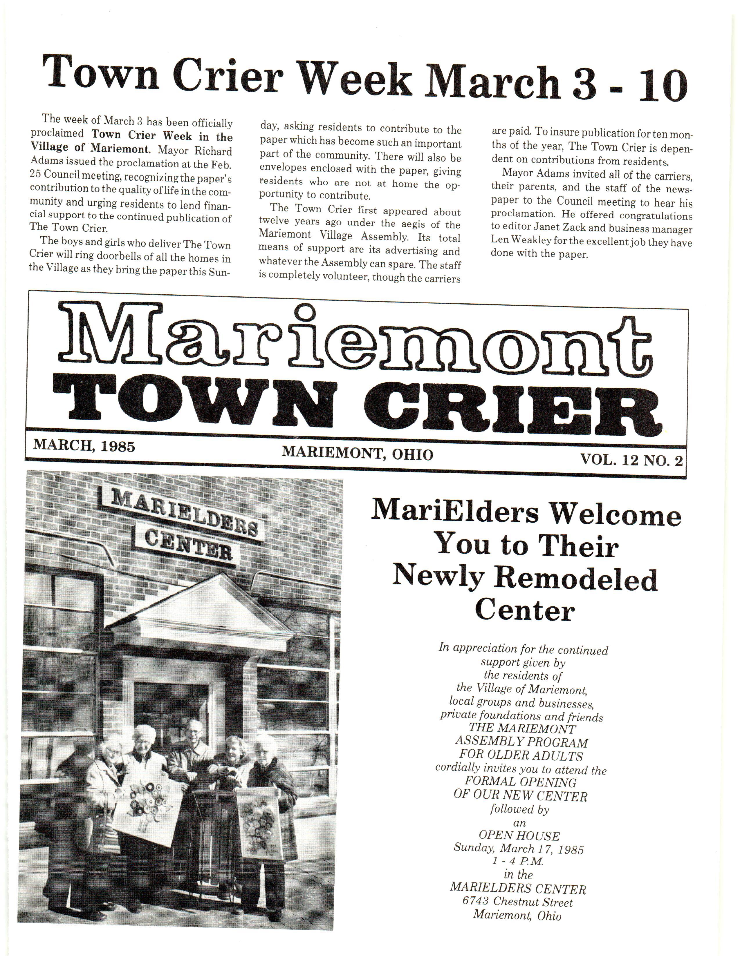 Mariemont Town Crier, March 1985, Vol. 12, No. 2