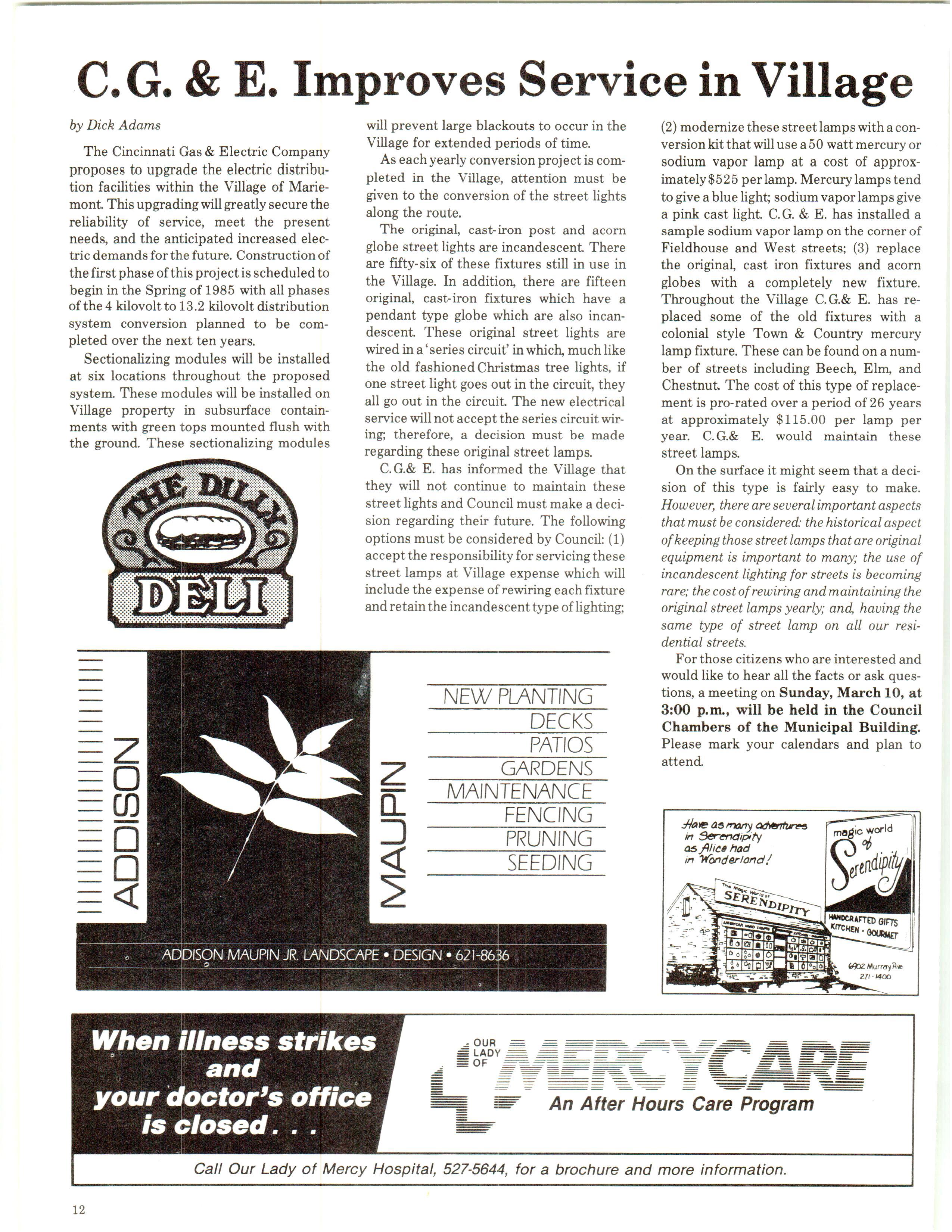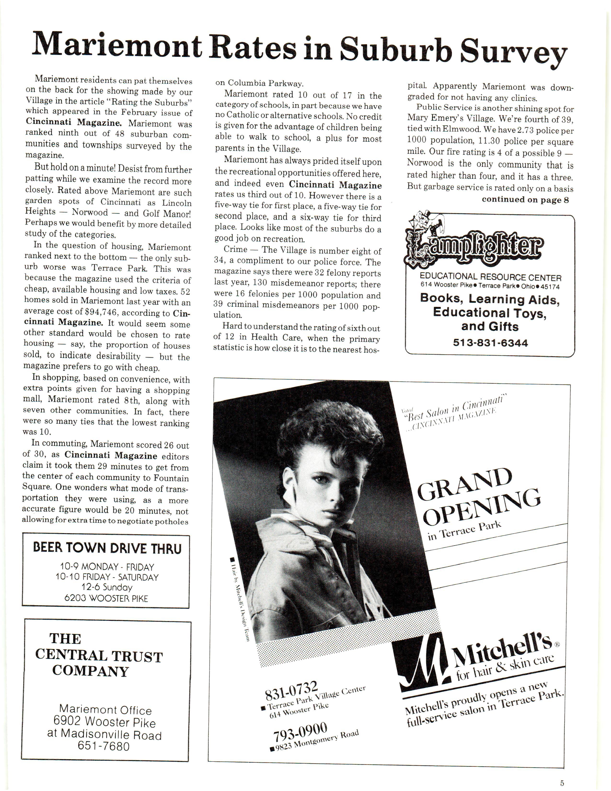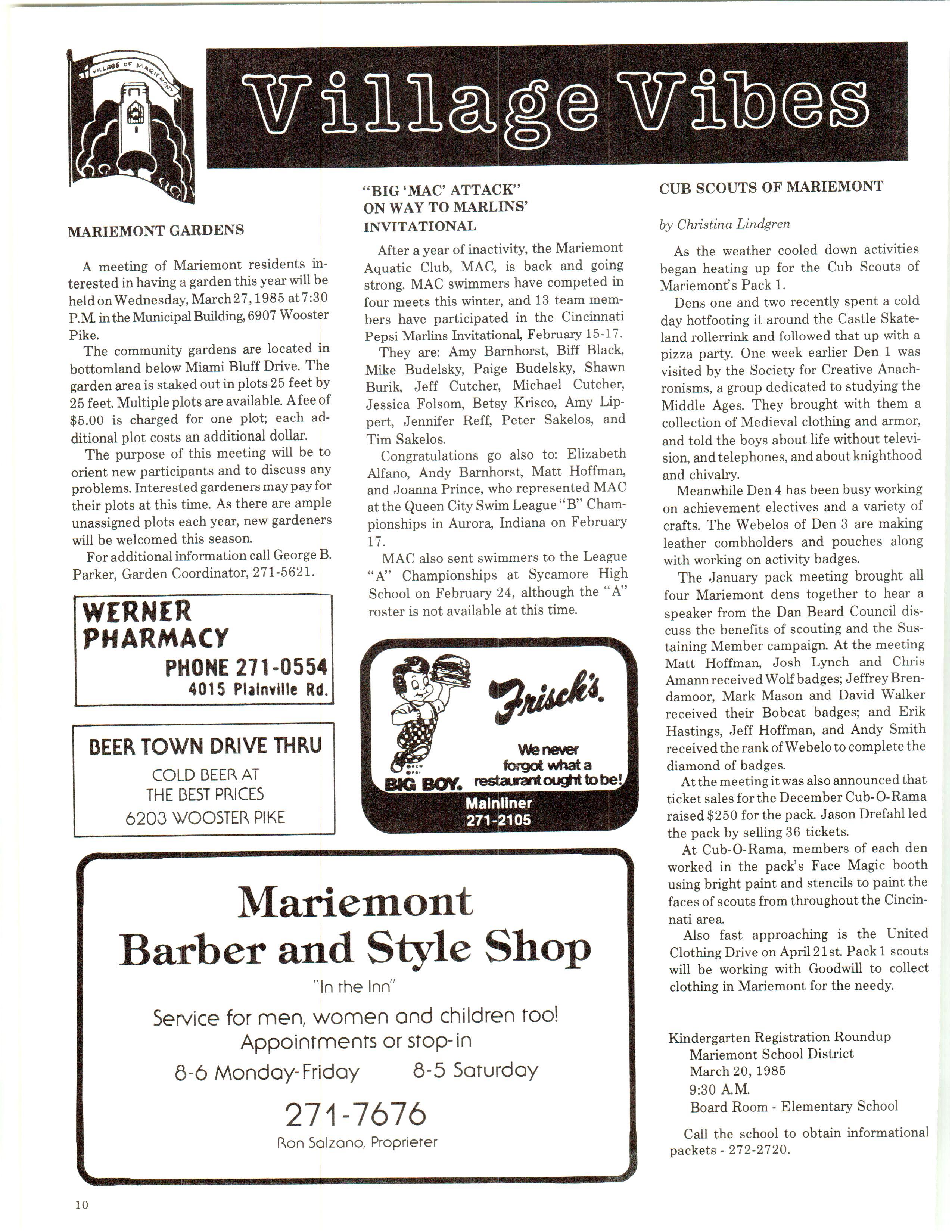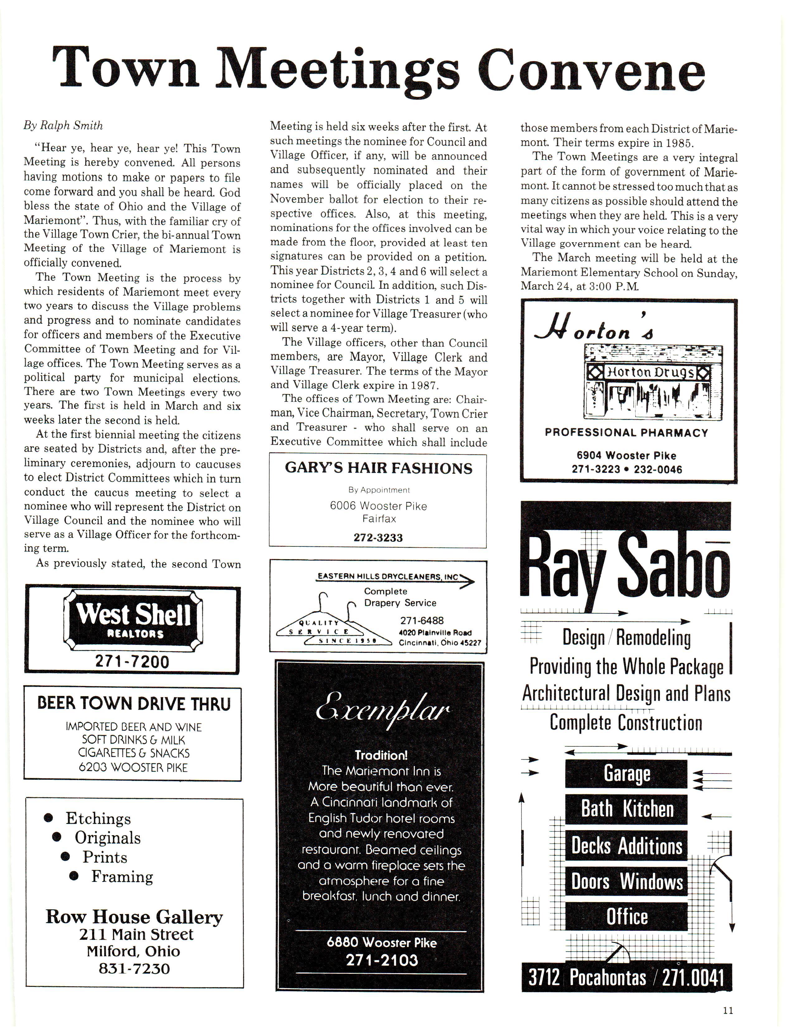 Mariemont Town Crier, March 1985, Vol. 12, No. 2
