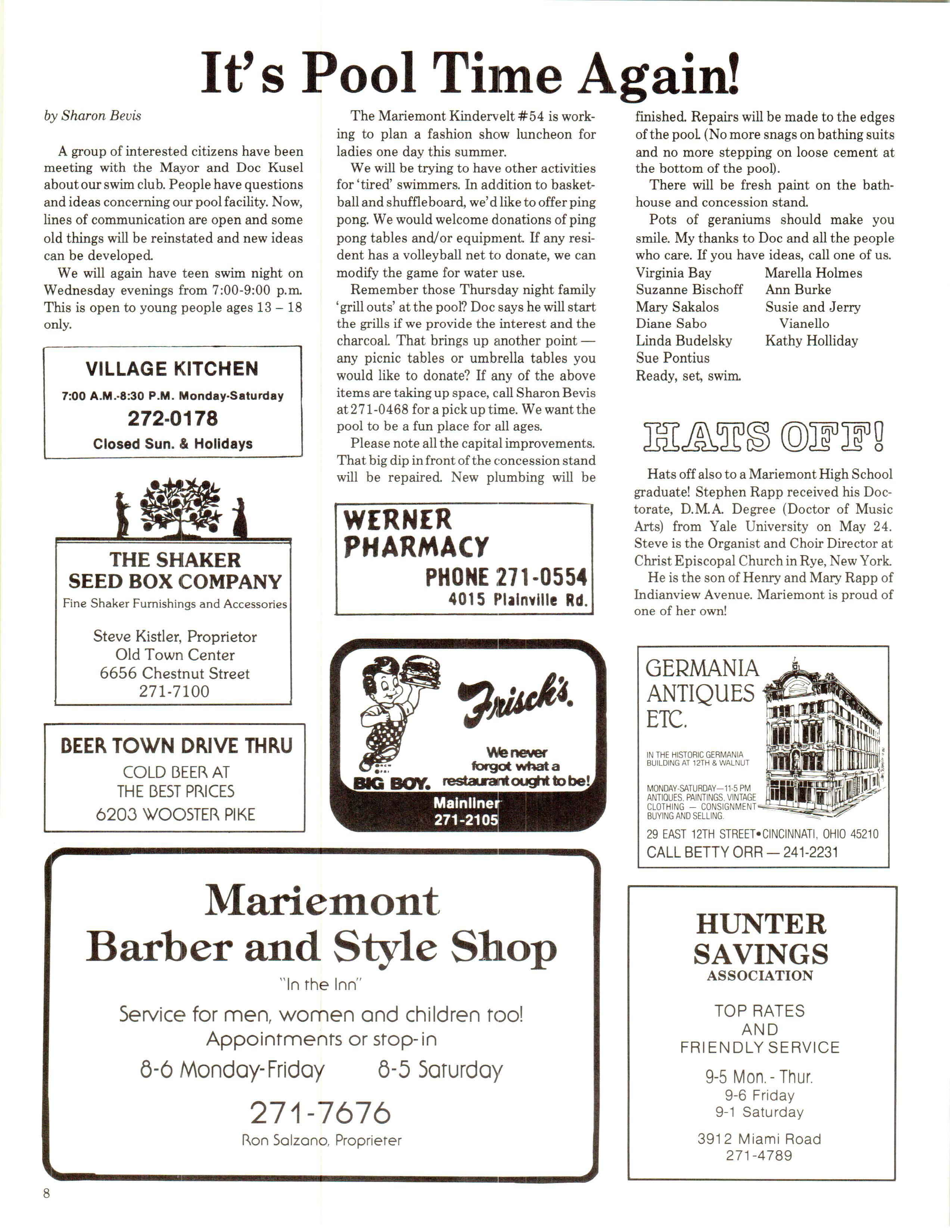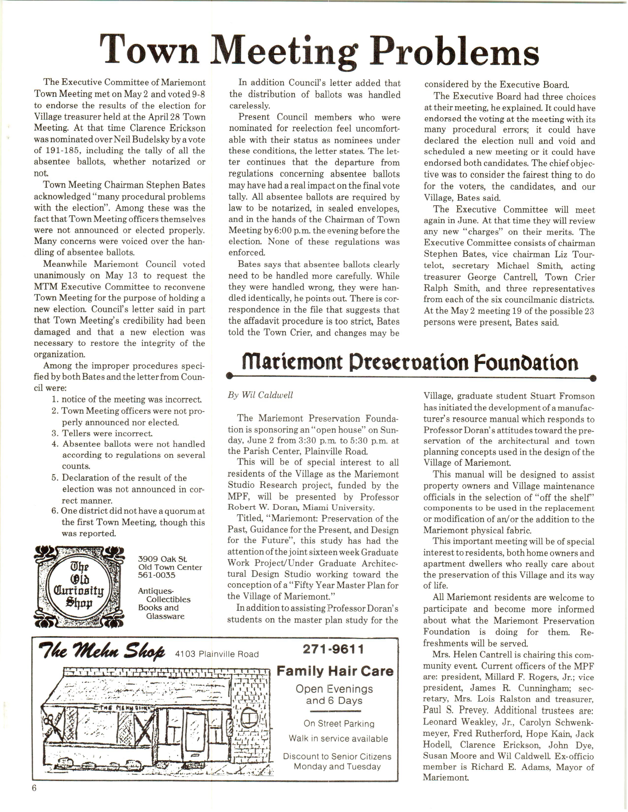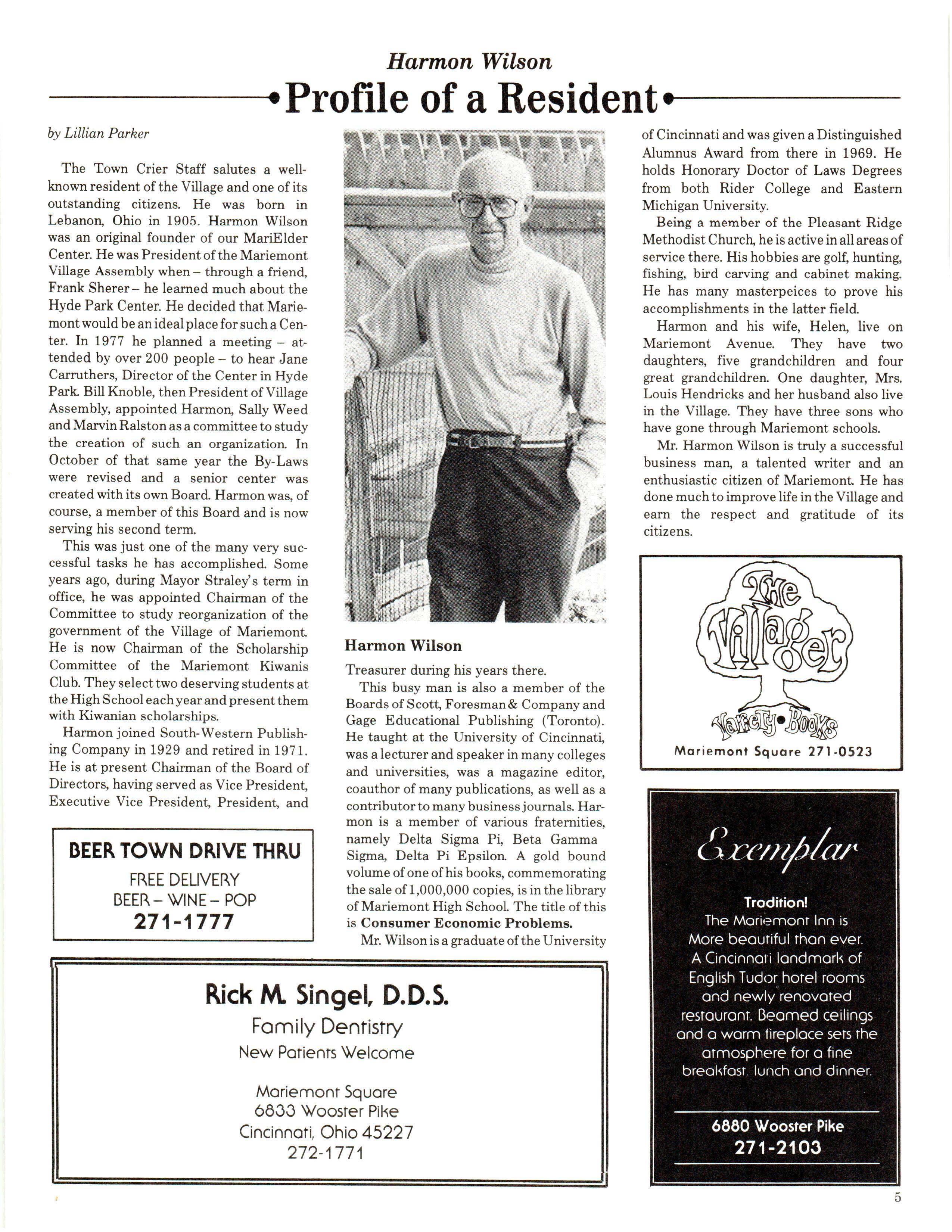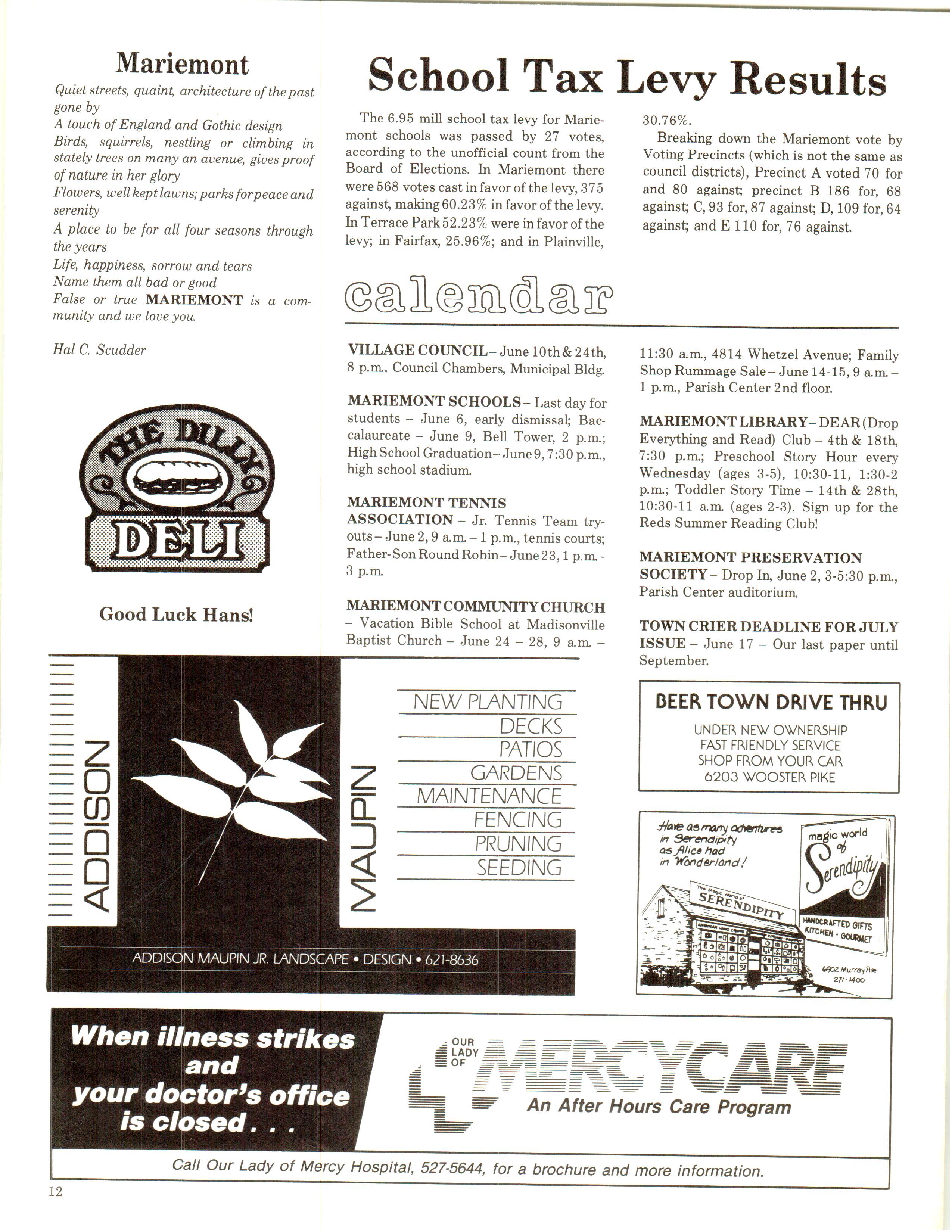 Mariemont Town Crier, June 1985, Vol. 12, No. 5