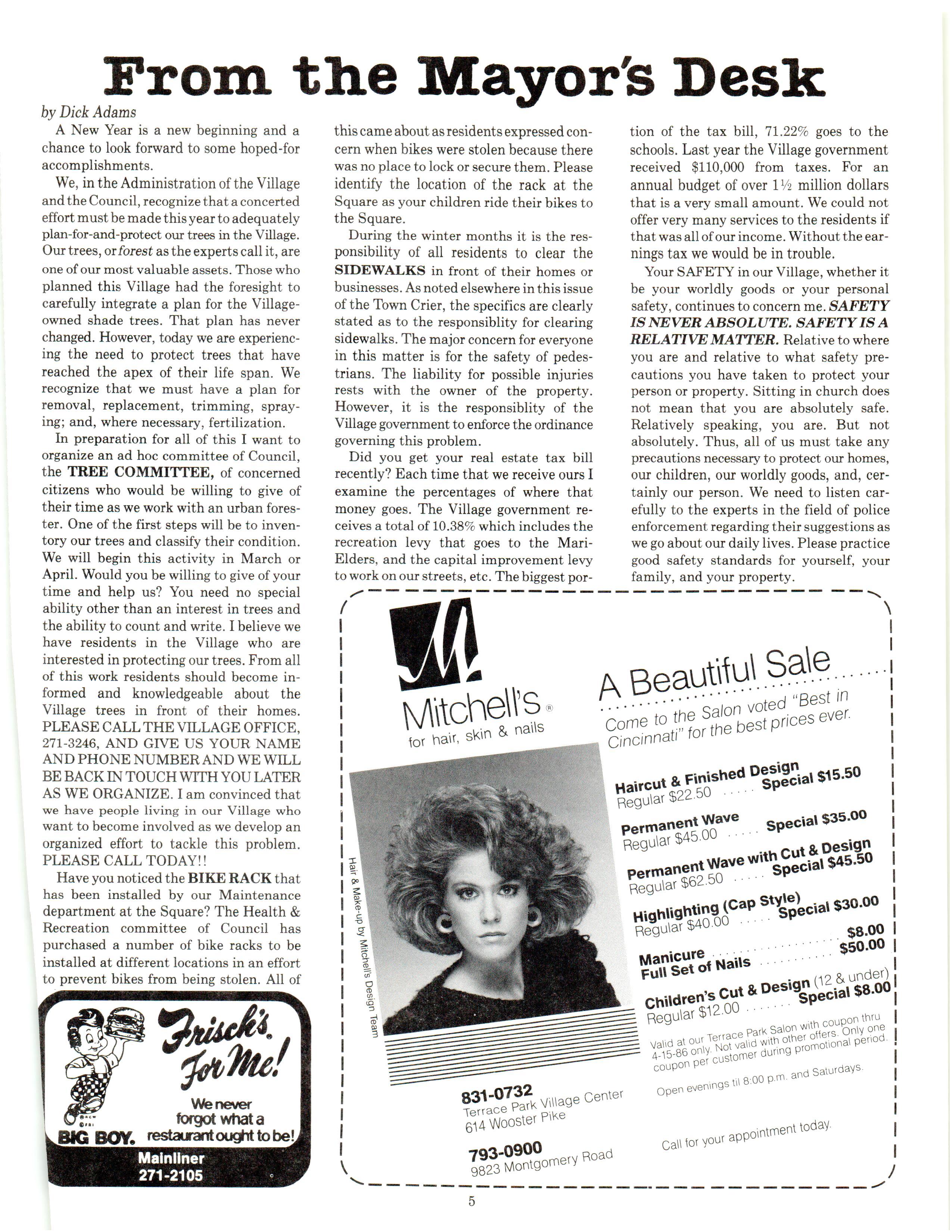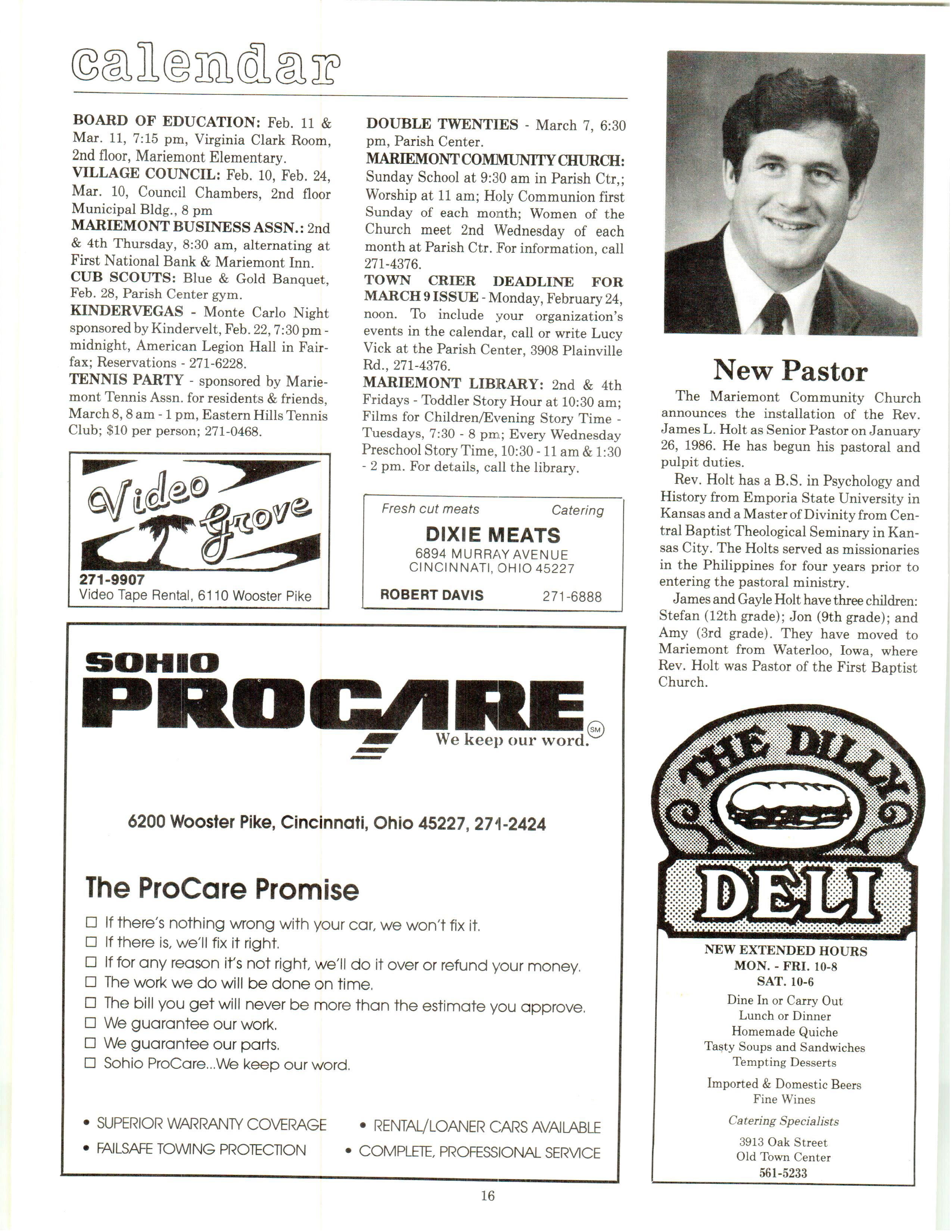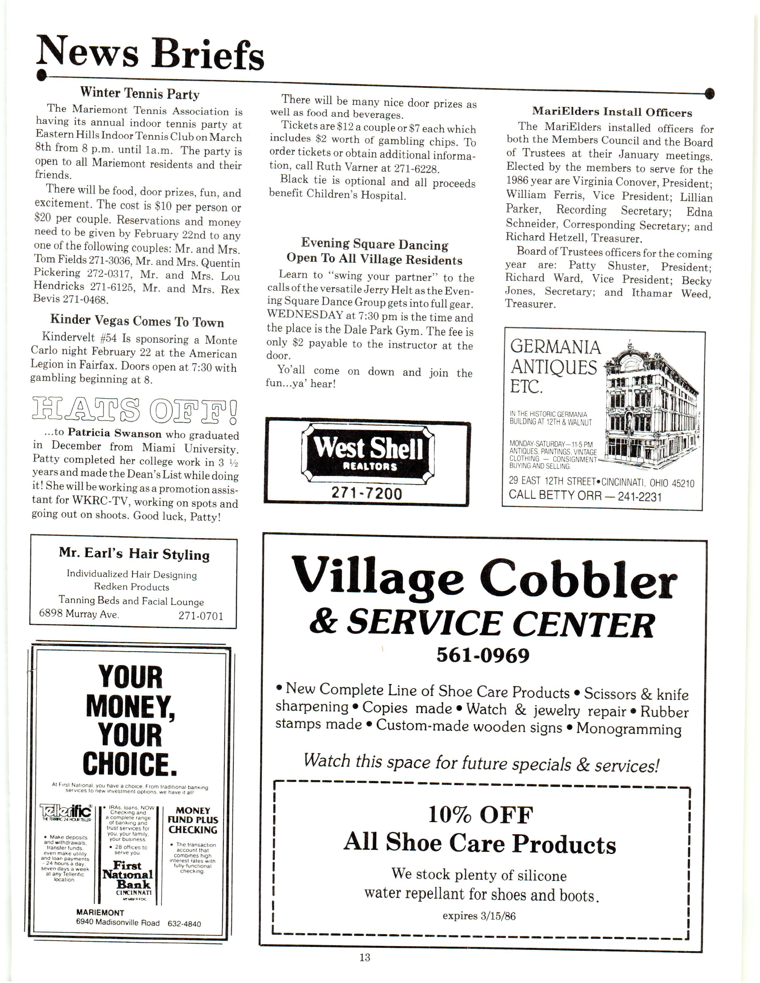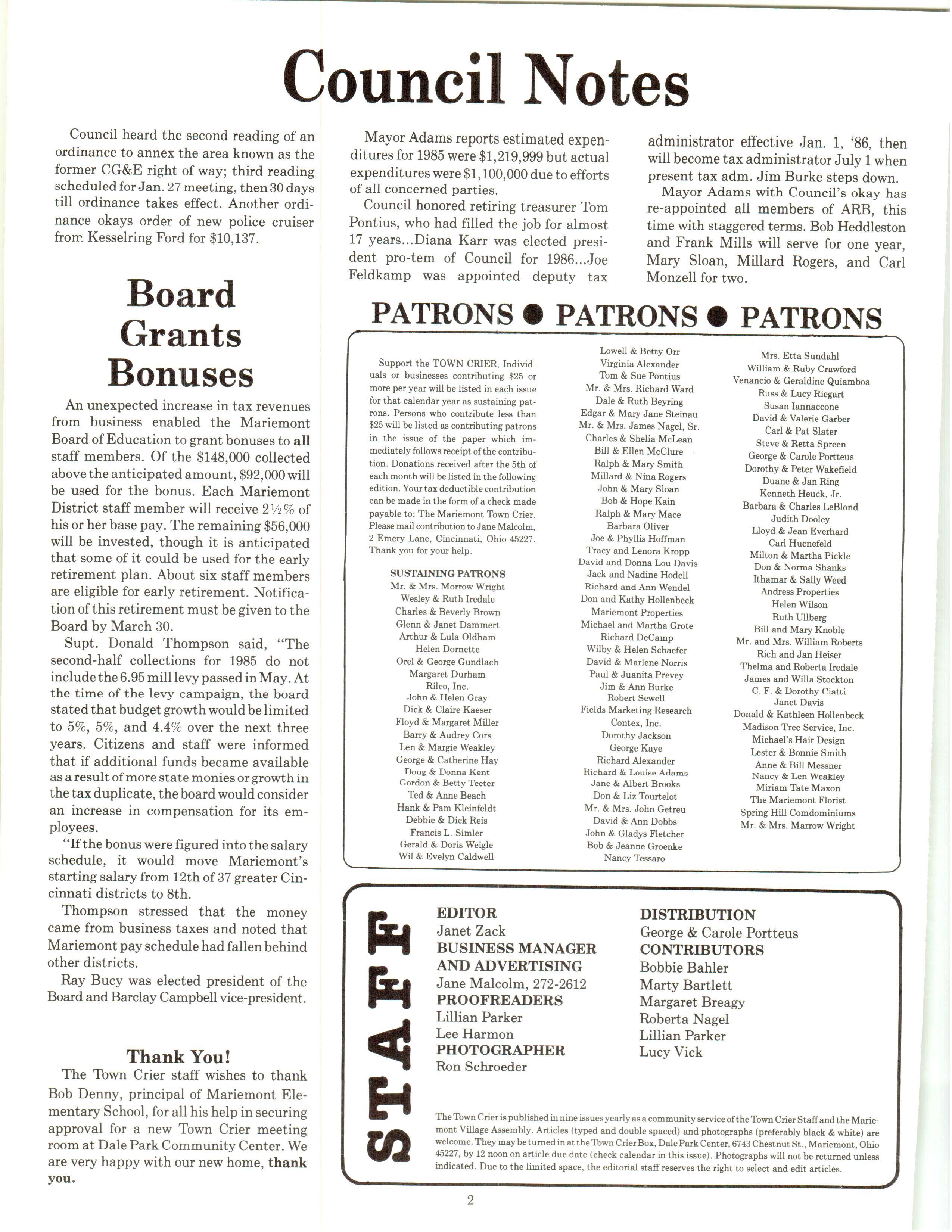 Mariemont Town Crier, February 1986, Vol. 13, No. 1
