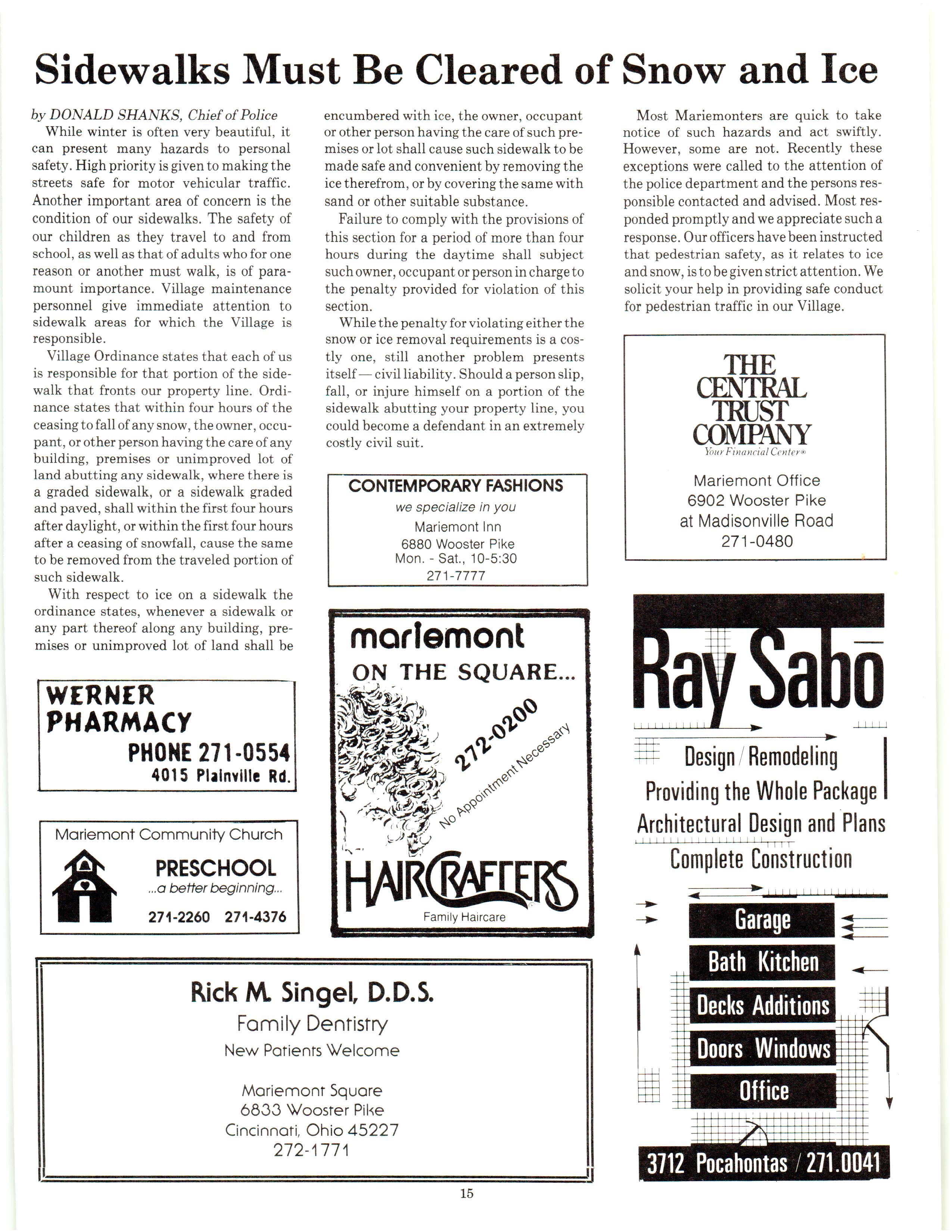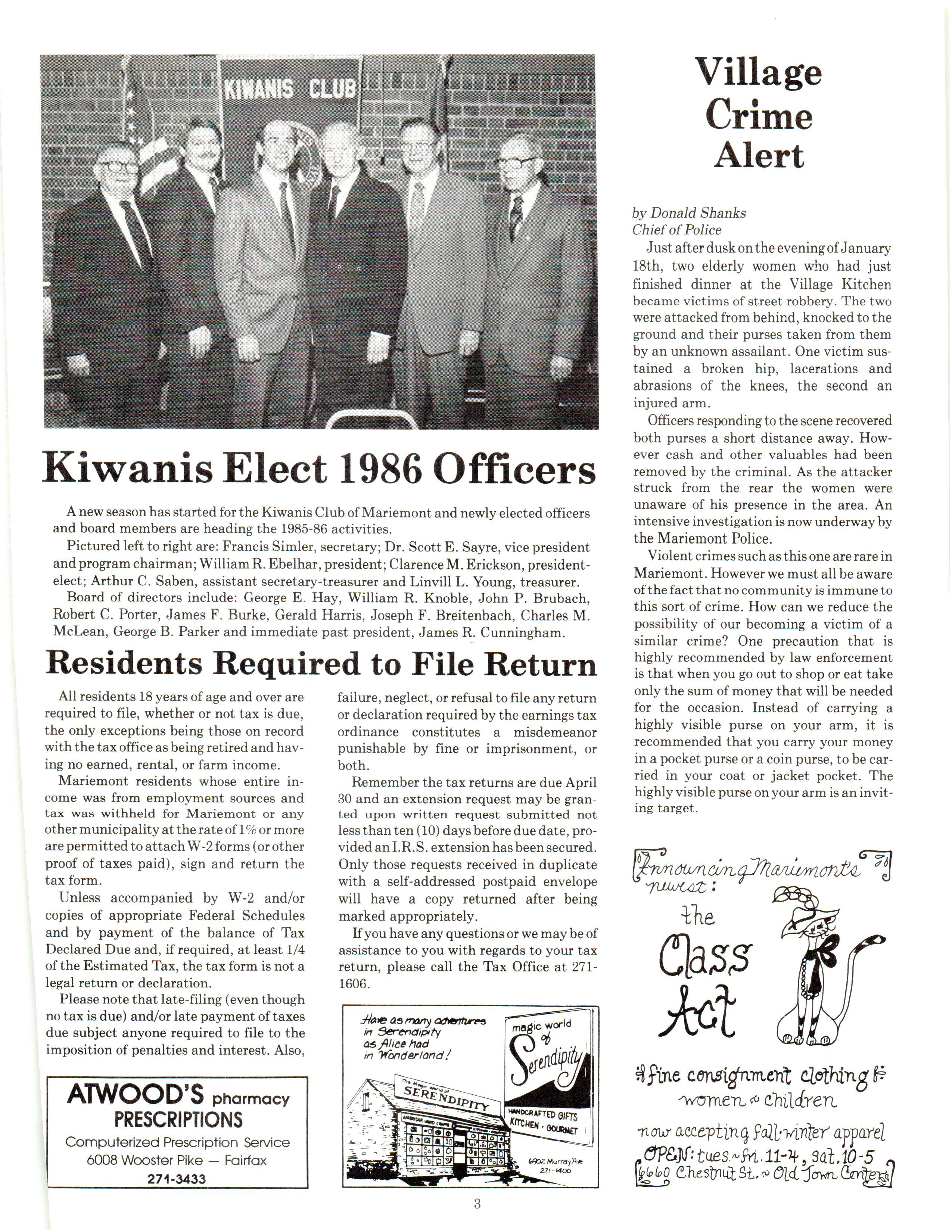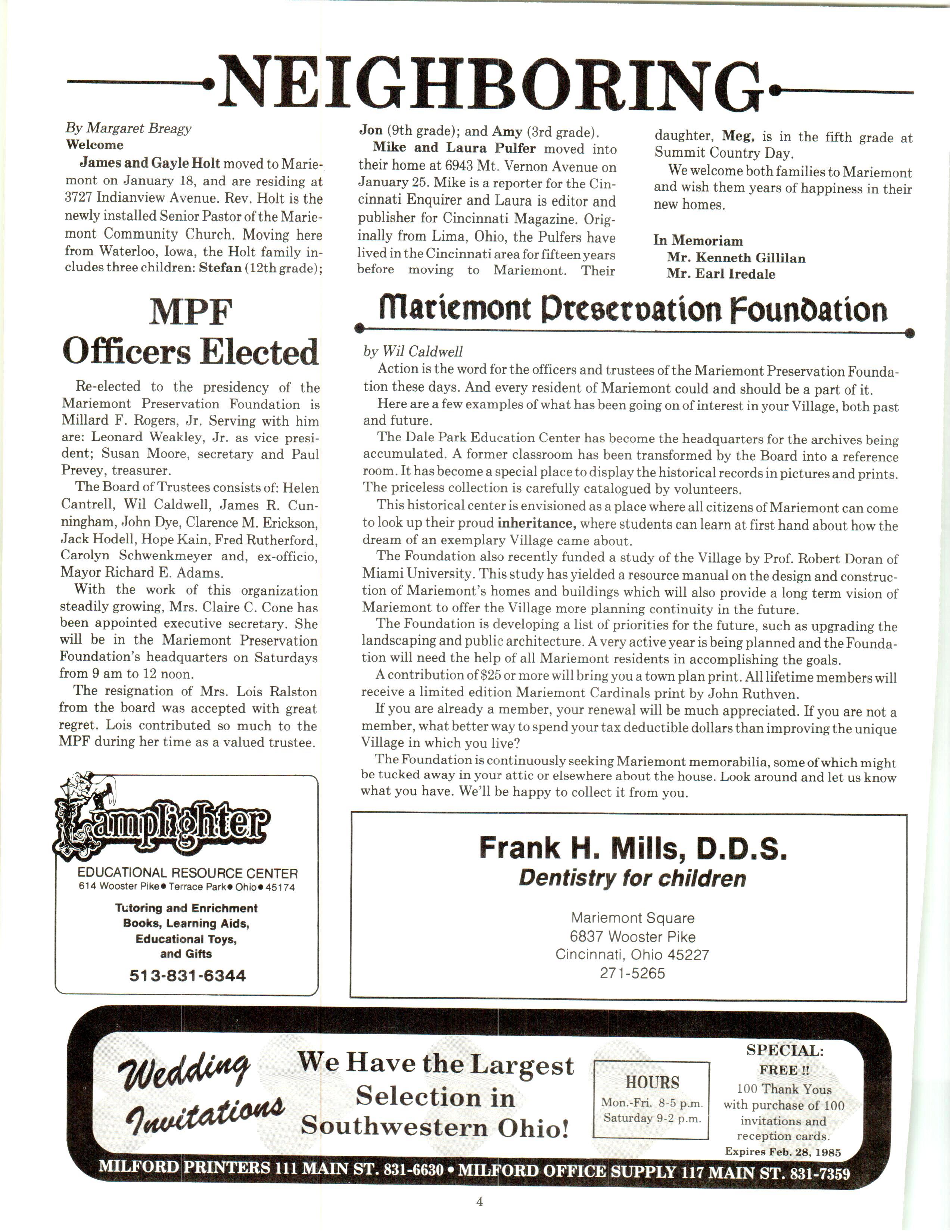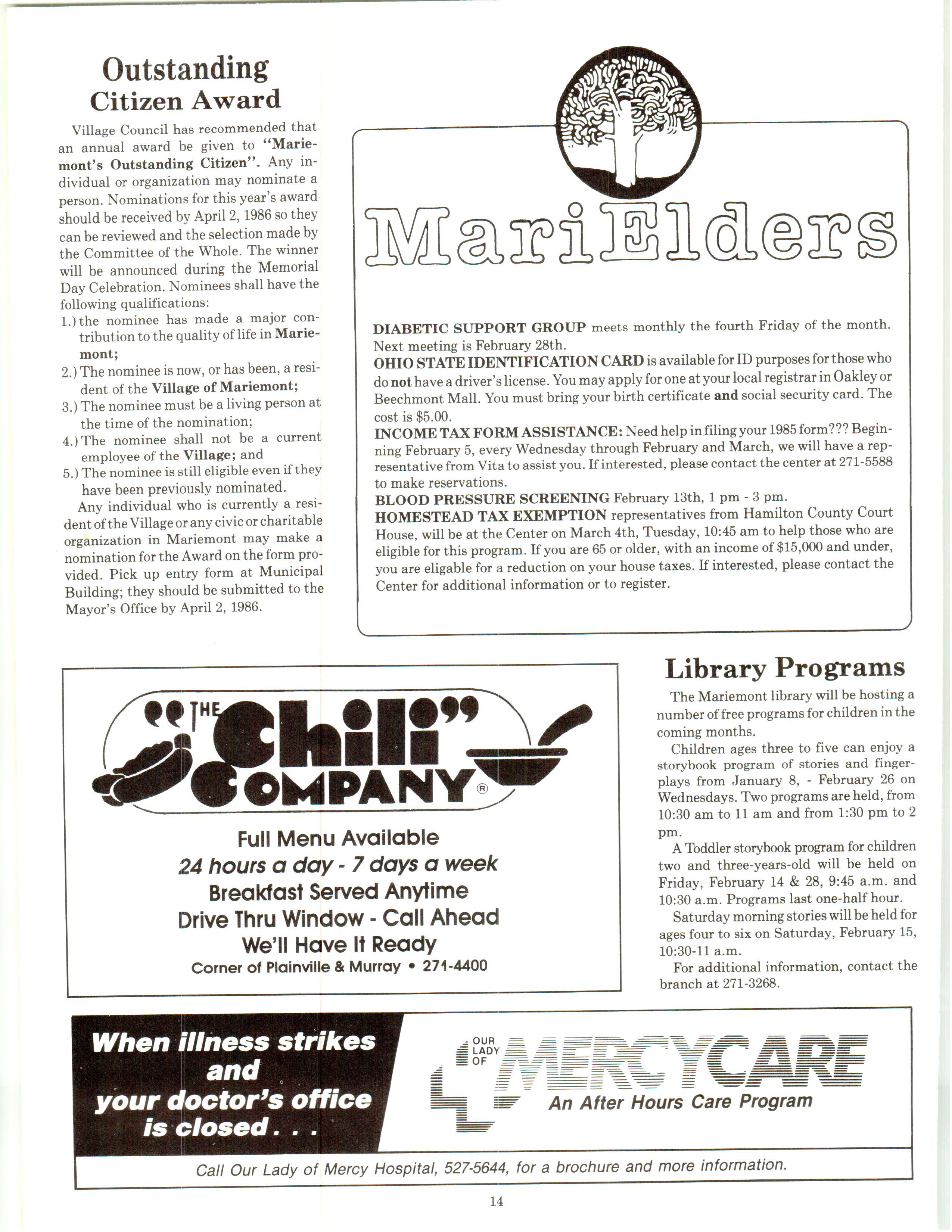 Mariemont Town Crier, February 1986, Vol. 13, No. 1