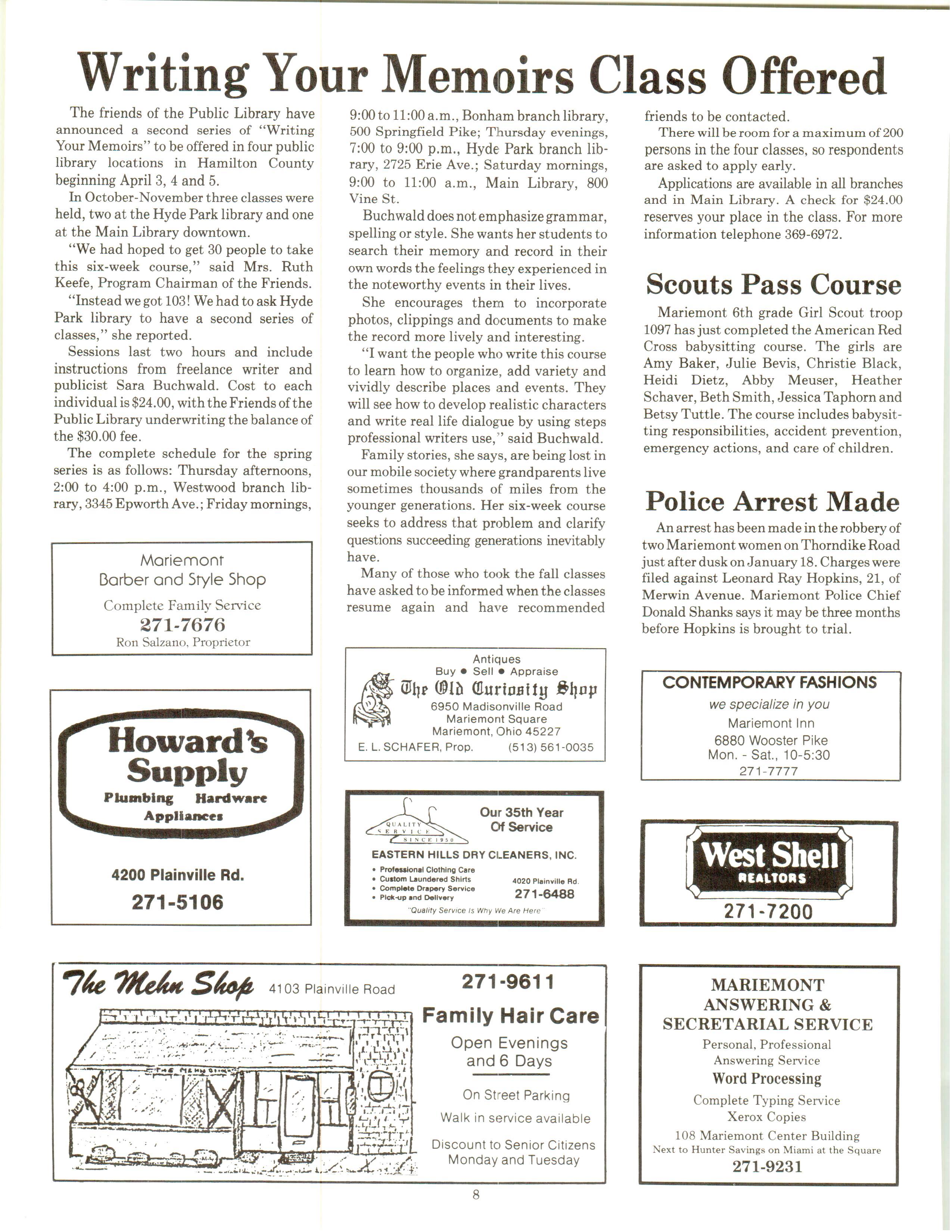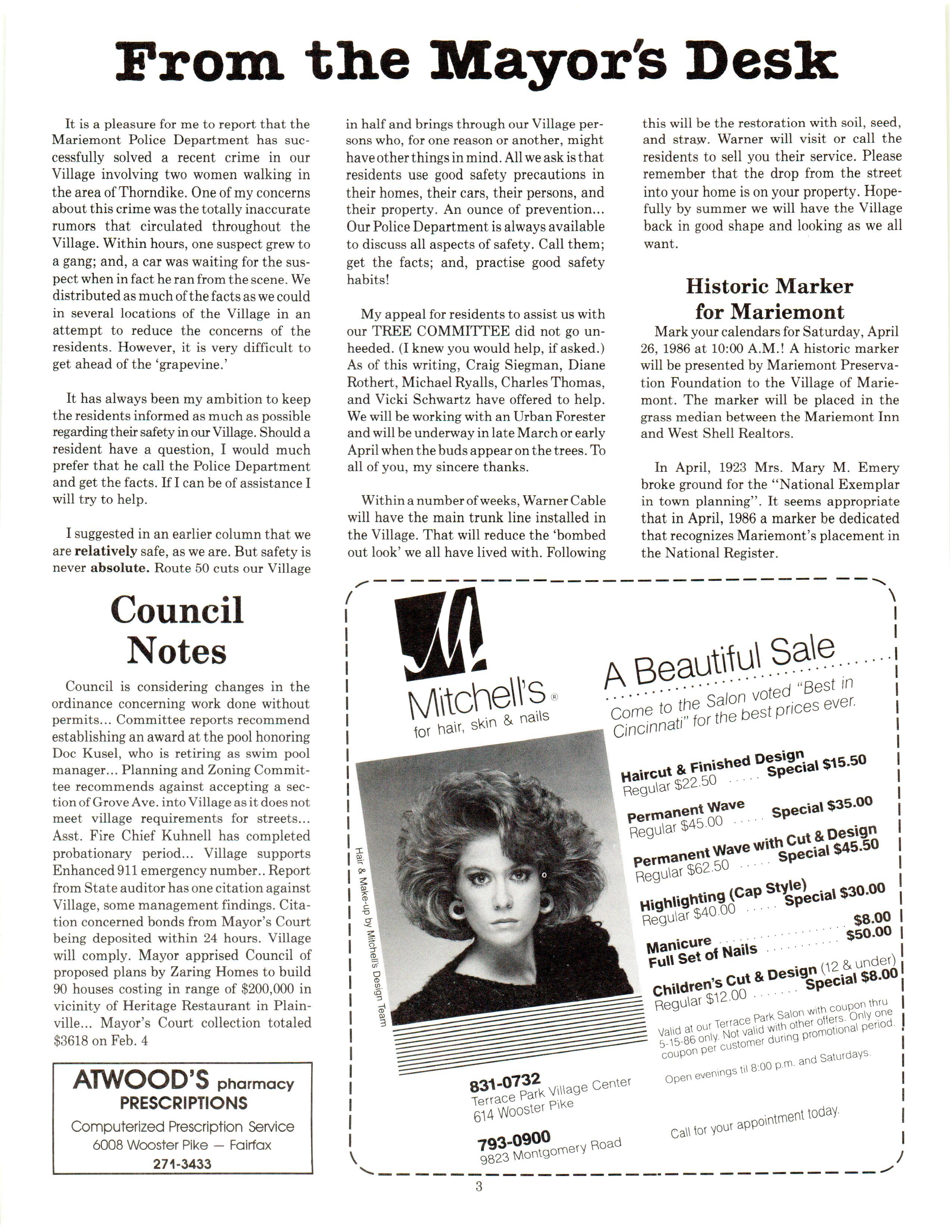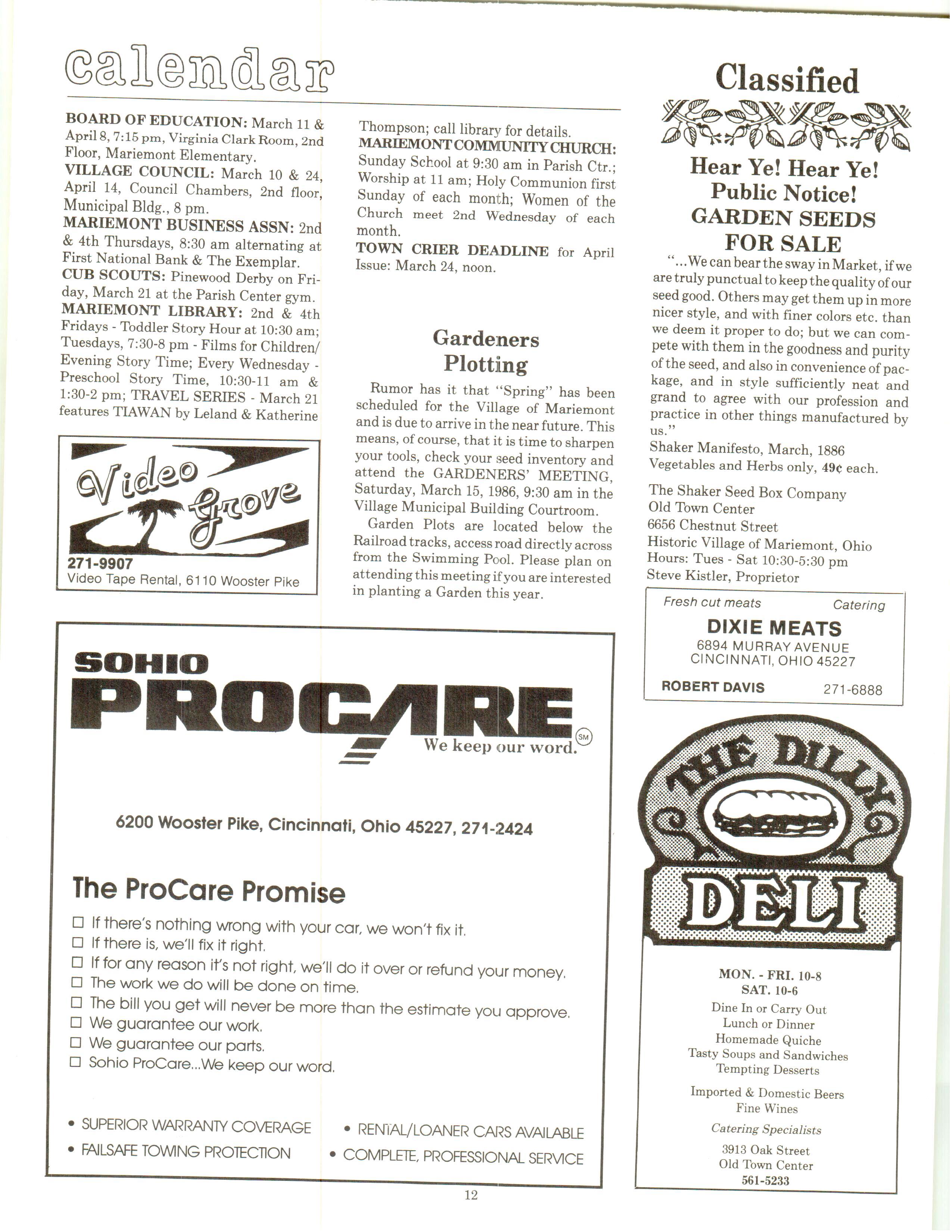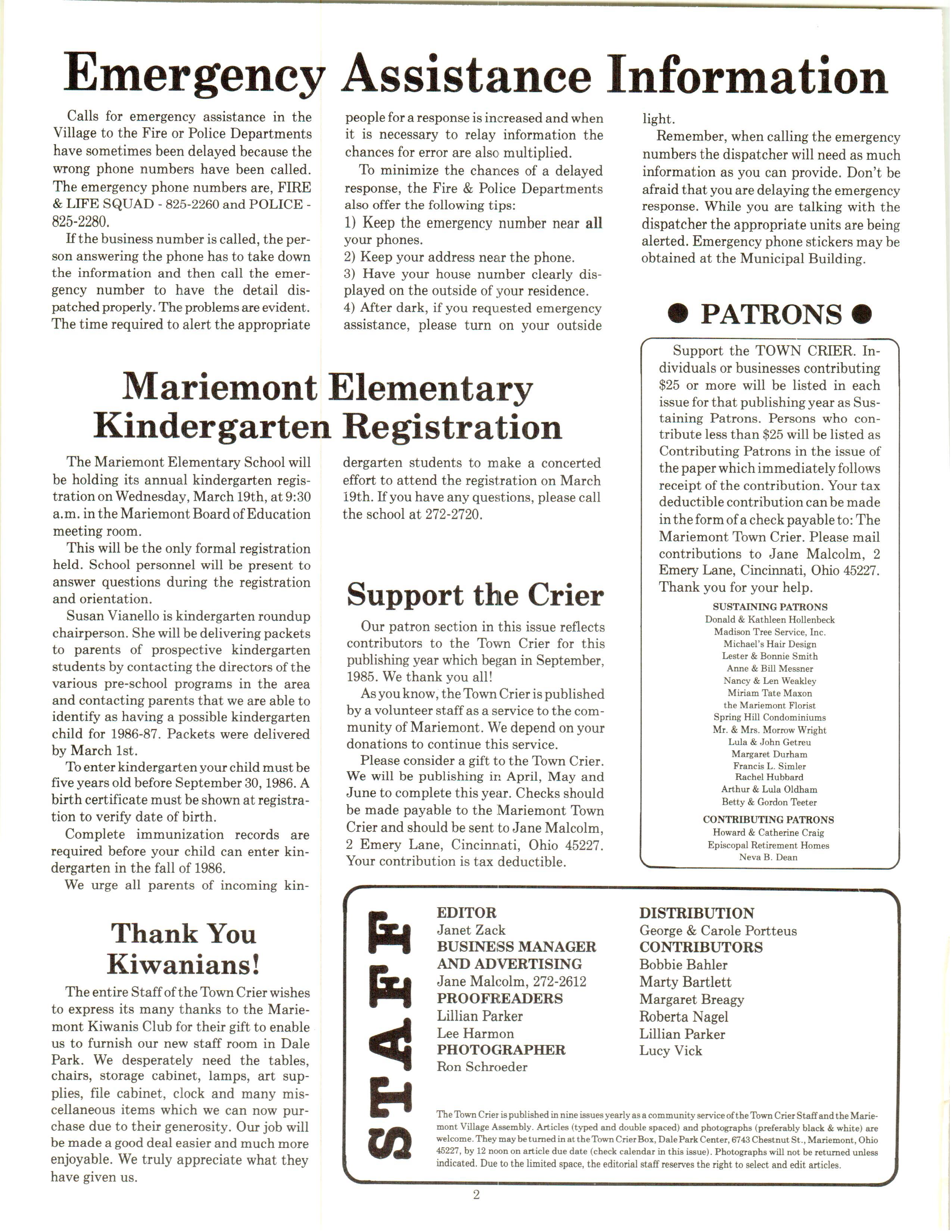 Mariemont Town Crier, March 1986, Vol. 13, No. 2