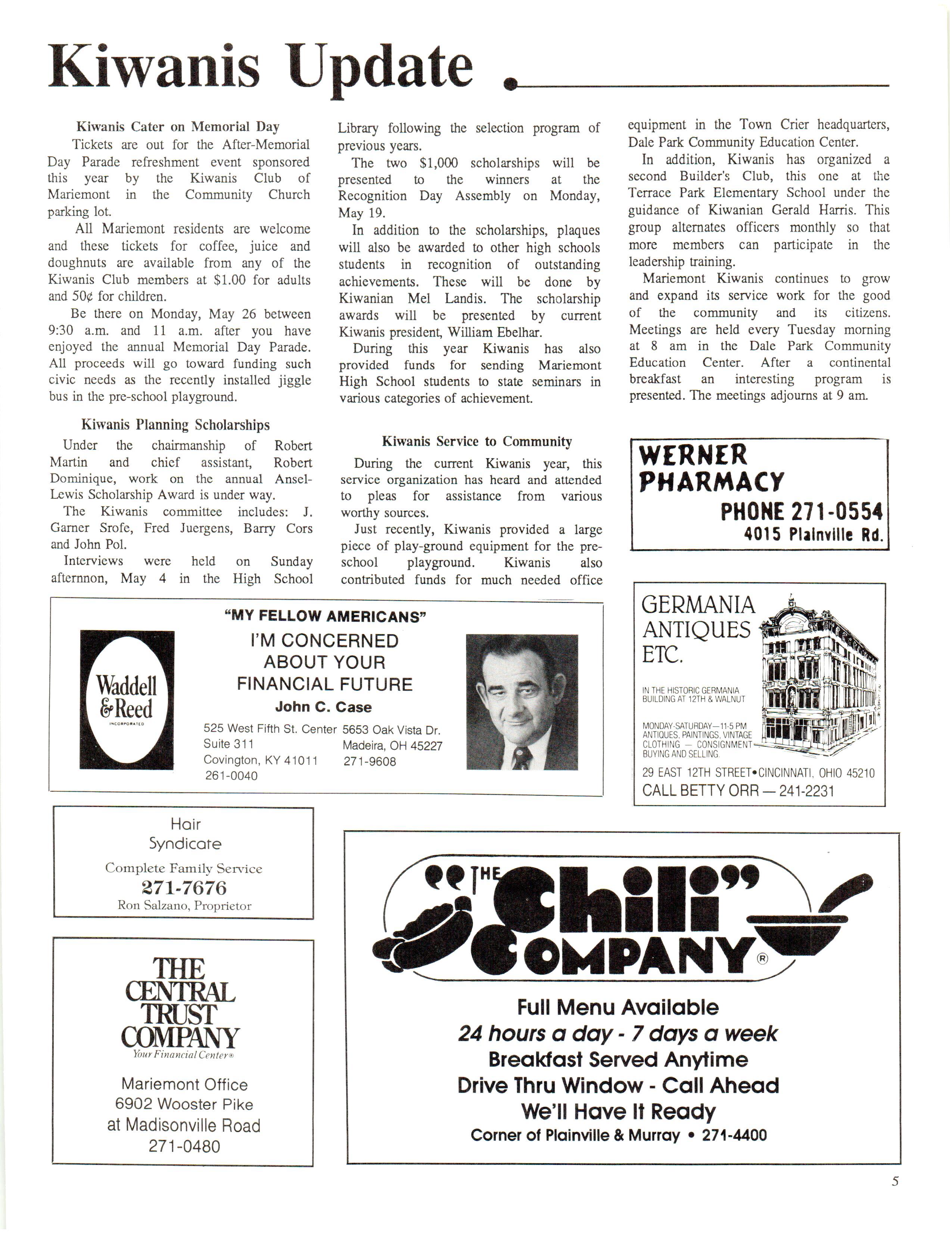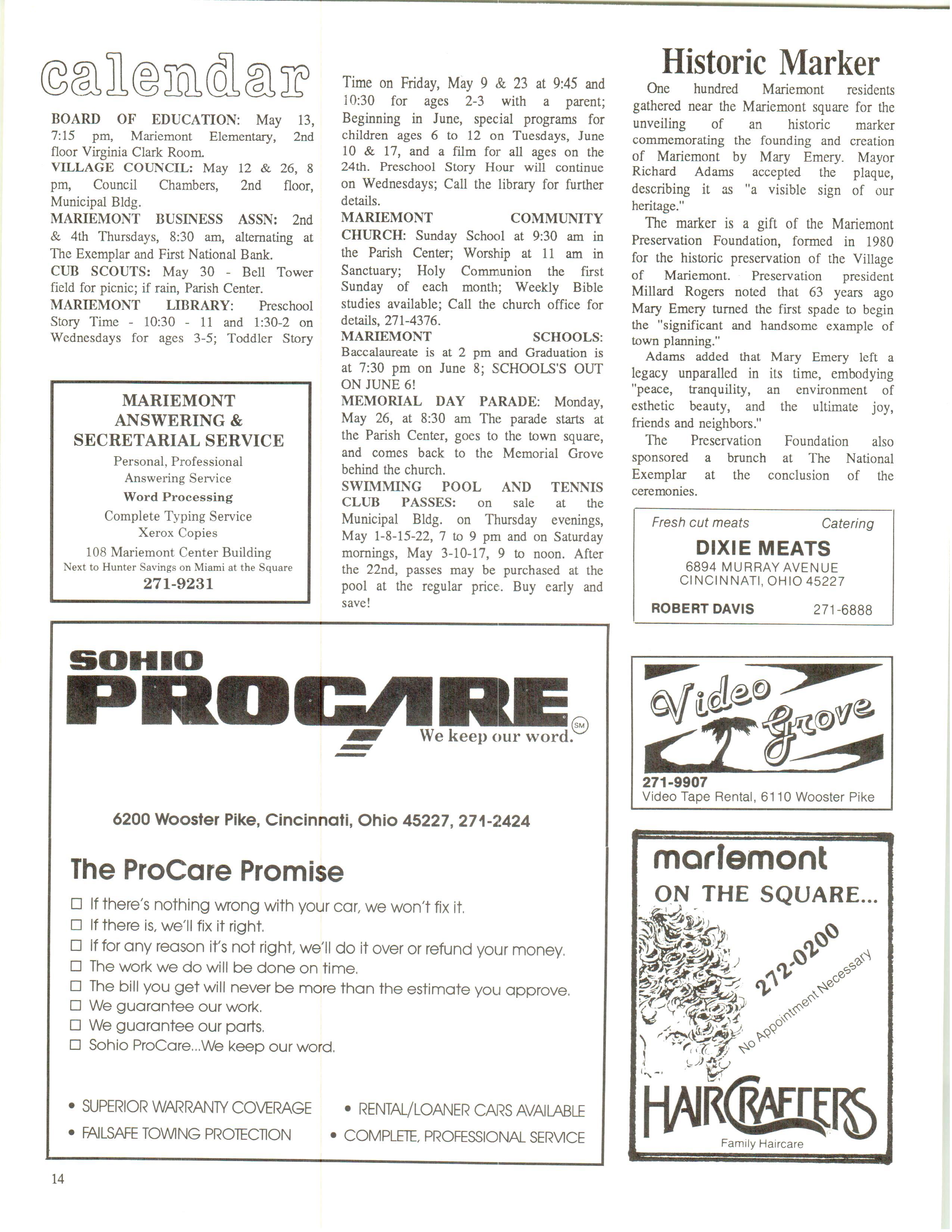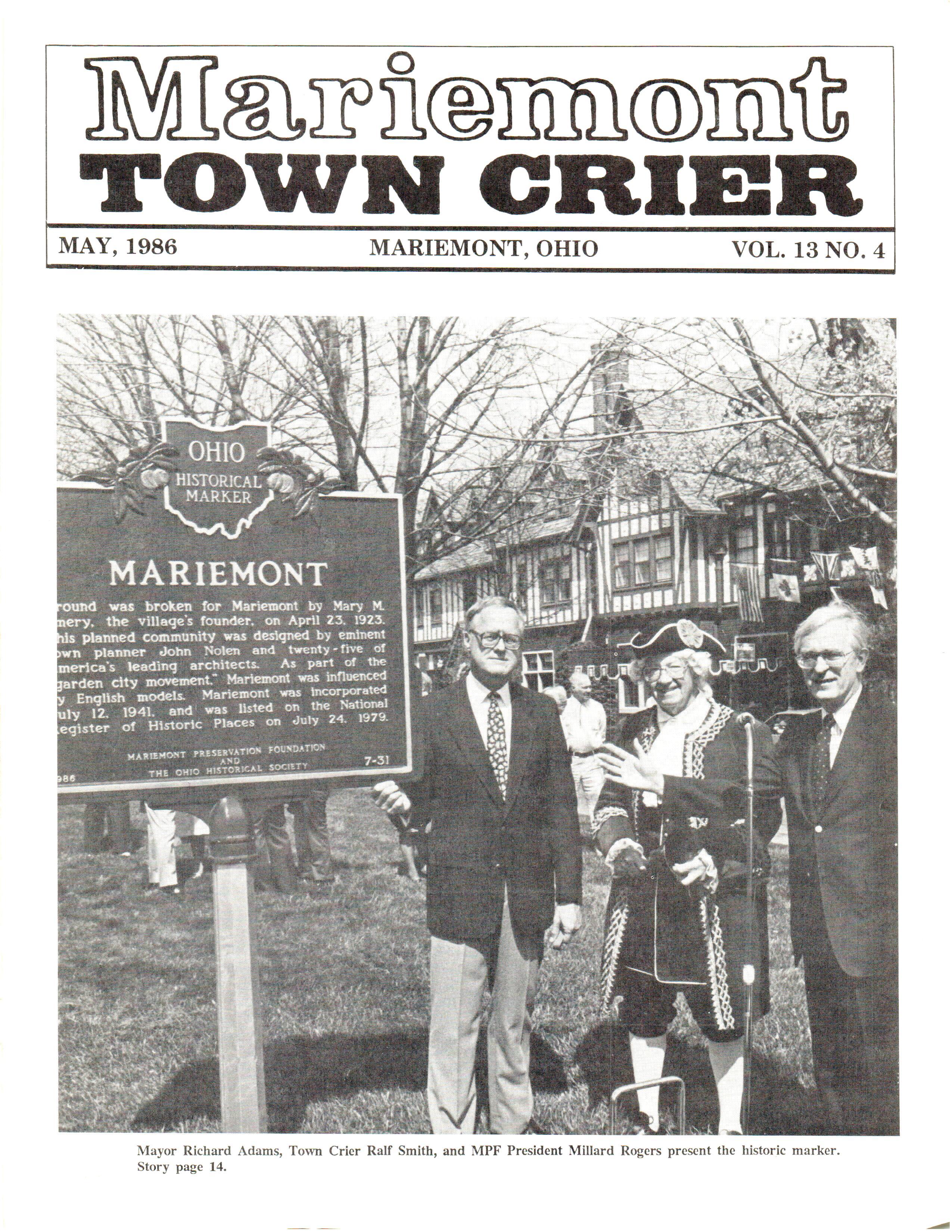 Mariemont Town Crier, May 1986, Vol. 13, No. 4