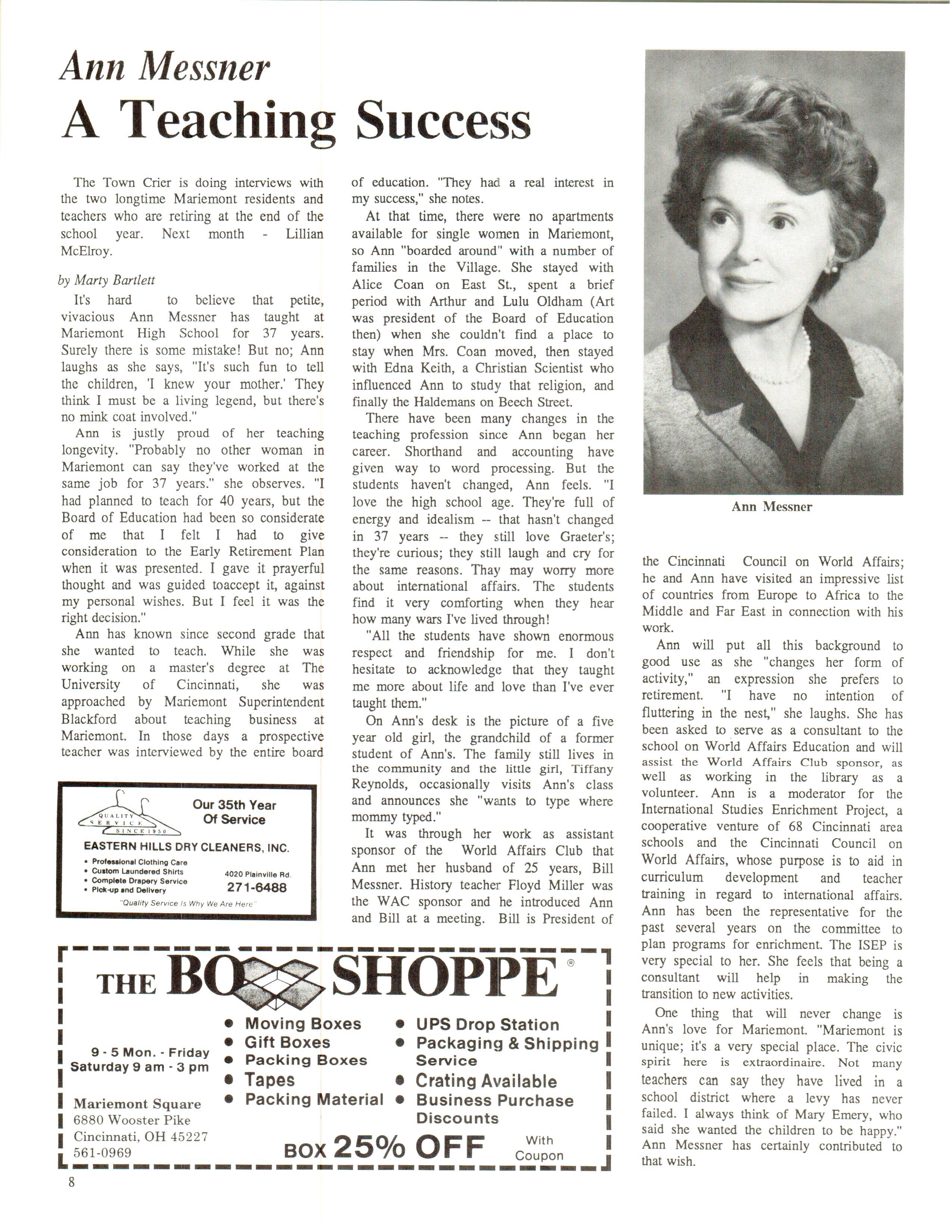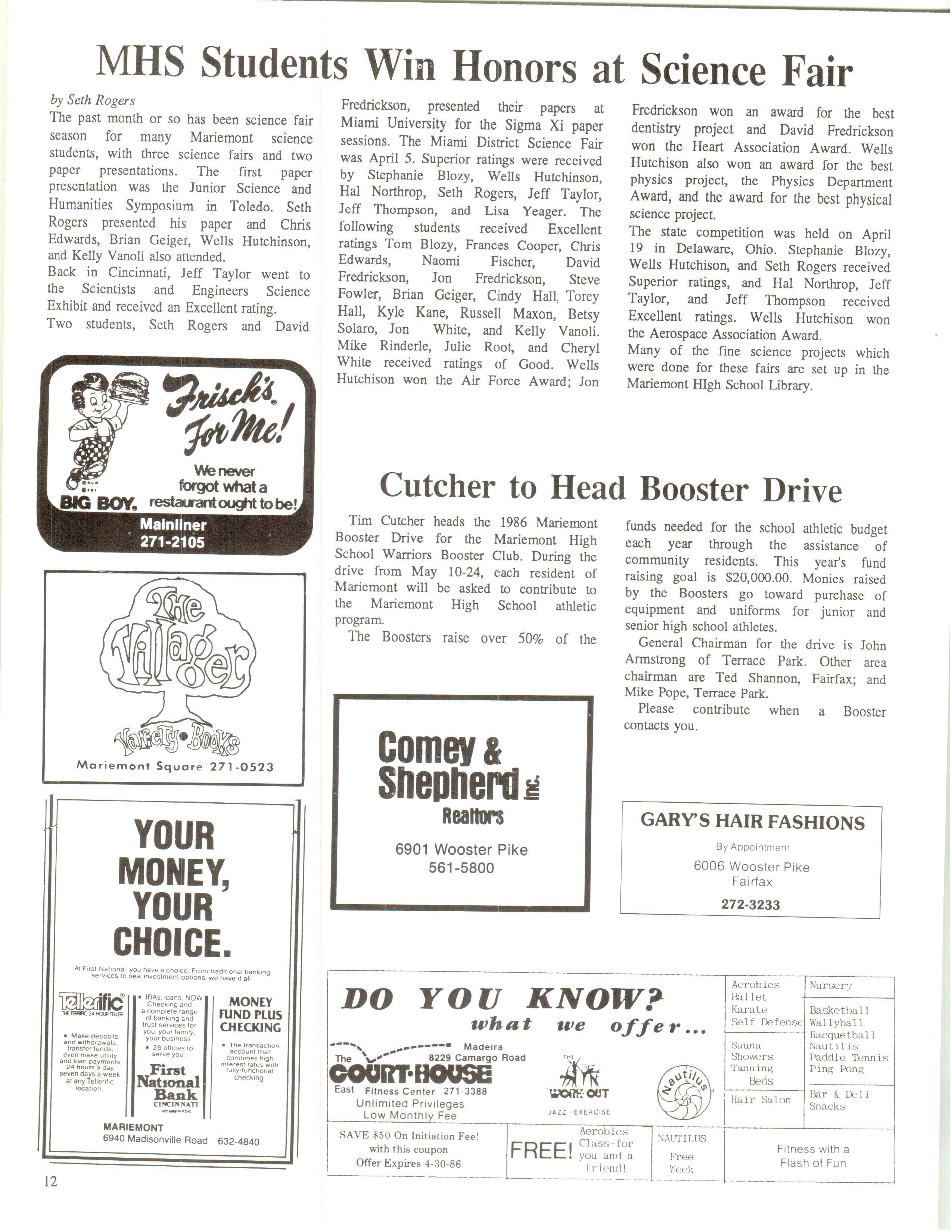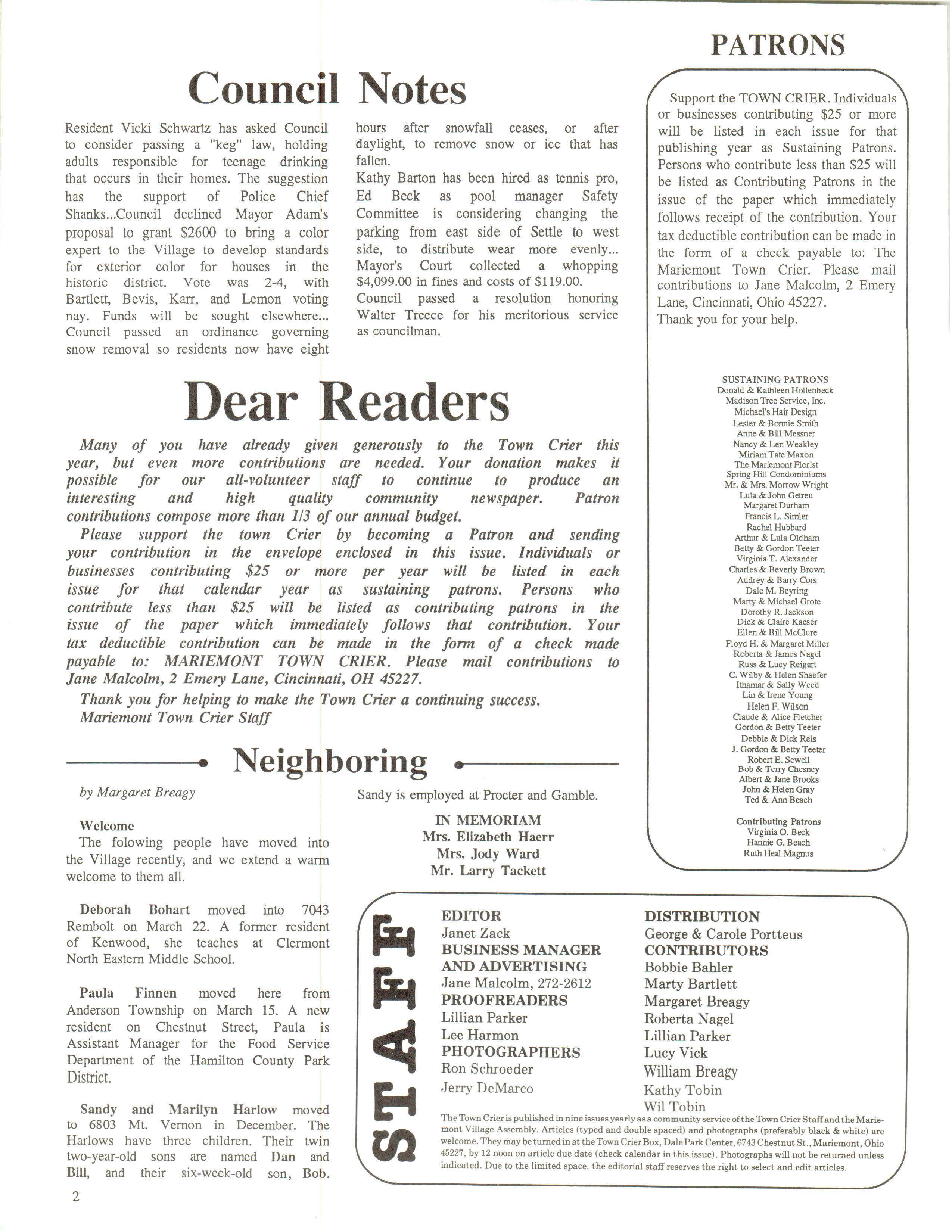 Mariemont Town Crier, May 1986, Vol. 13, No. 4