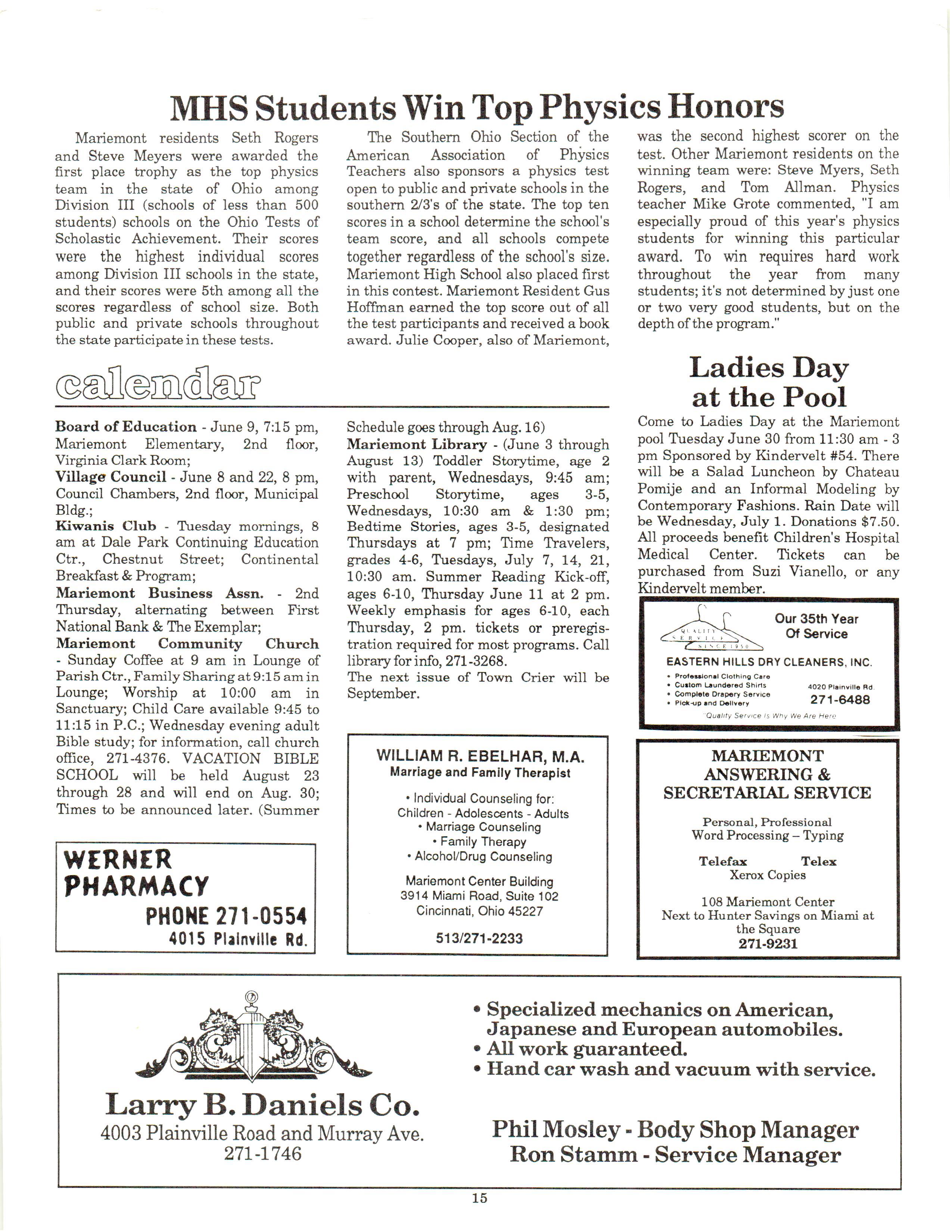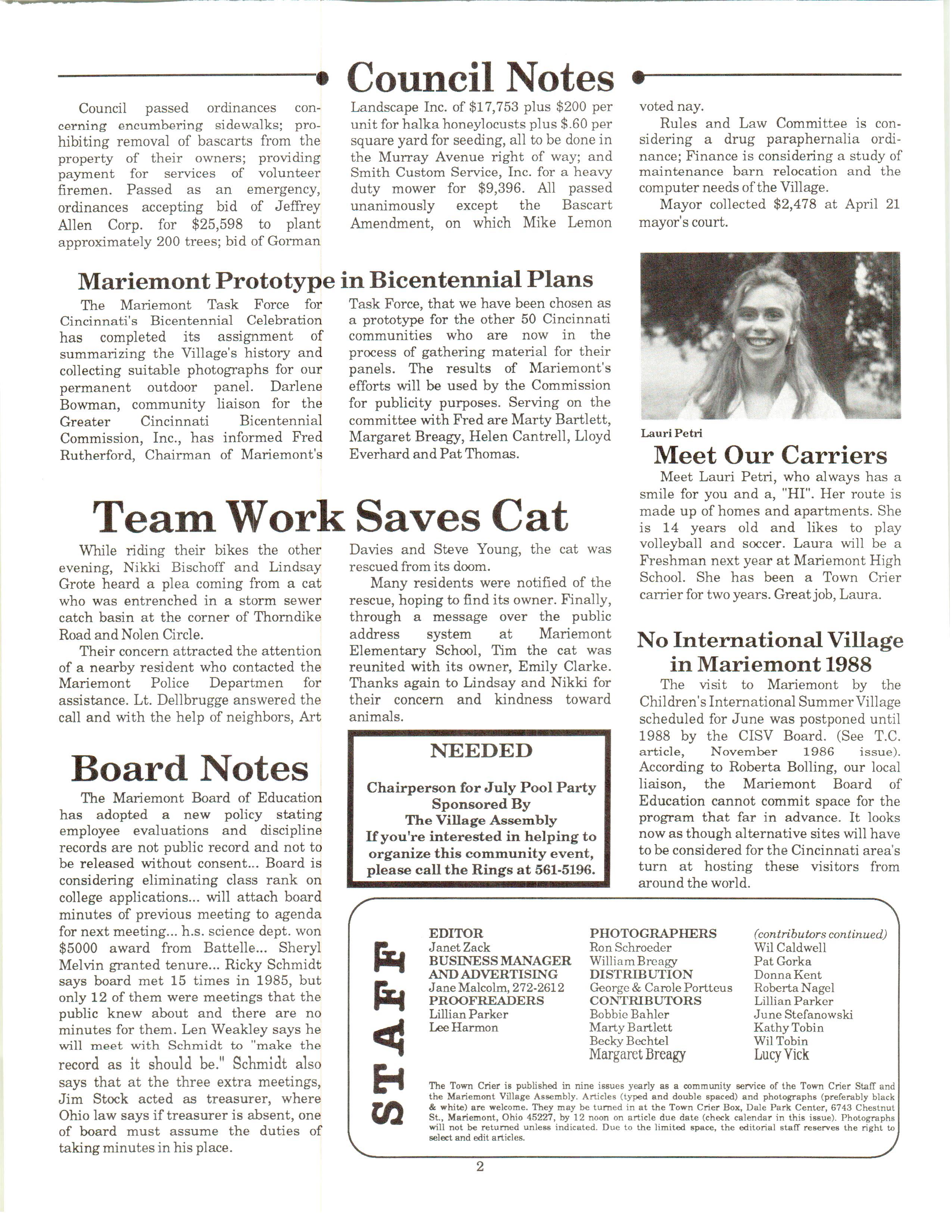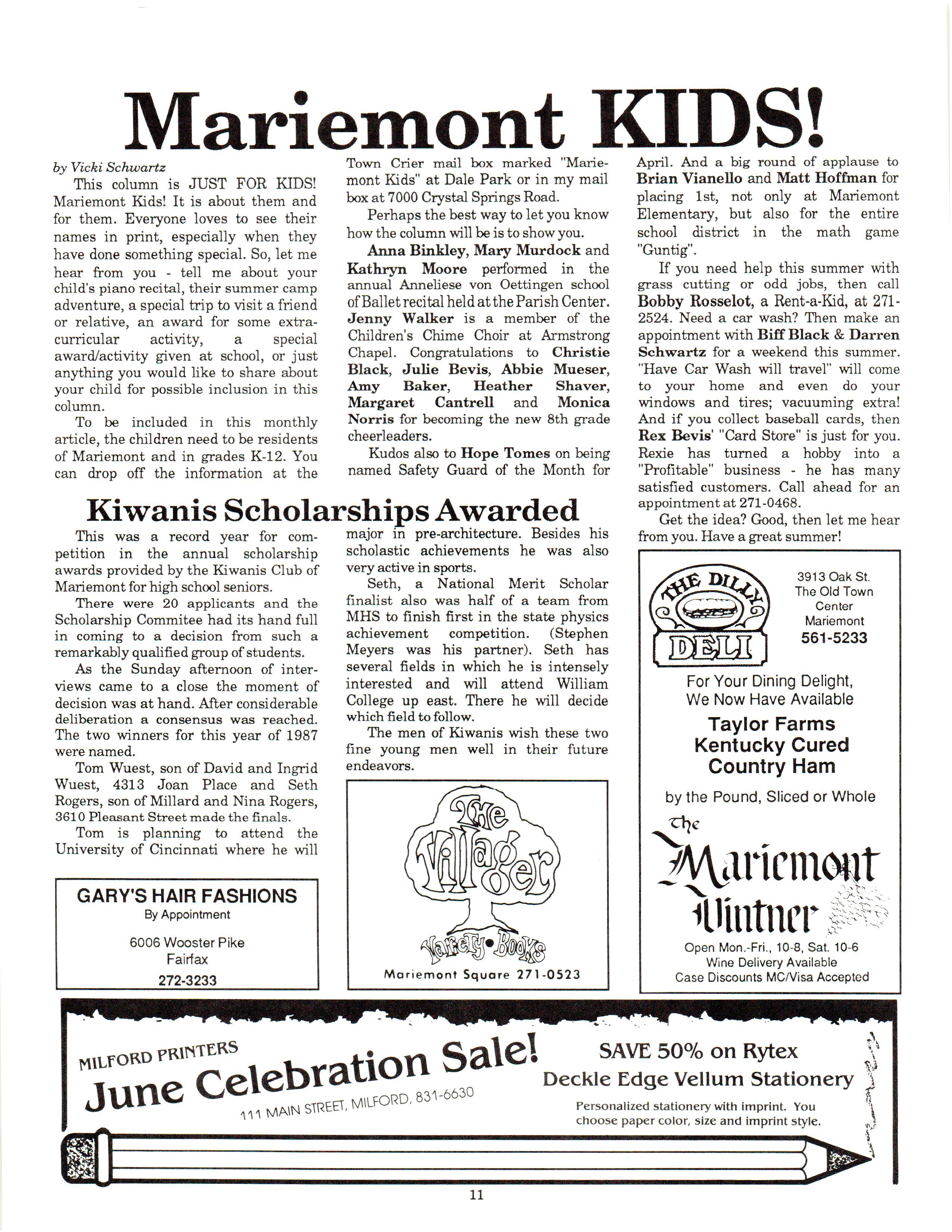 Mariemont Town Crier, June 1987, Vol. 14, No. 5 by Mariemont Town Crier - Issuu