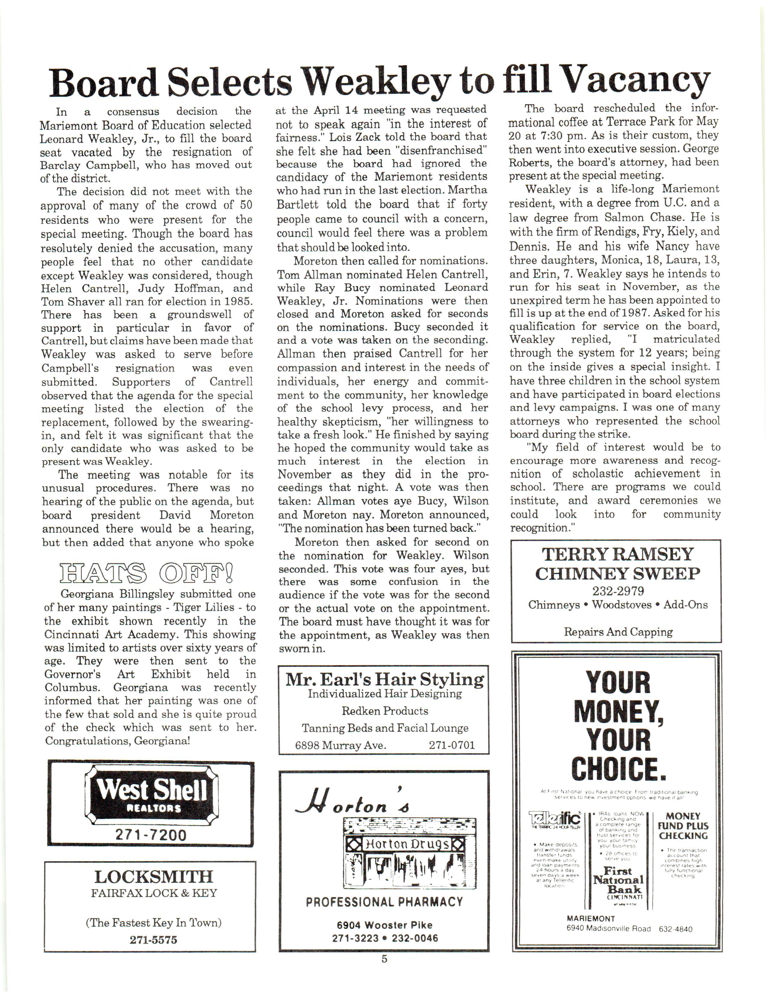 Mariemont Town Crier, June 1987, Vol. 14, No. 5