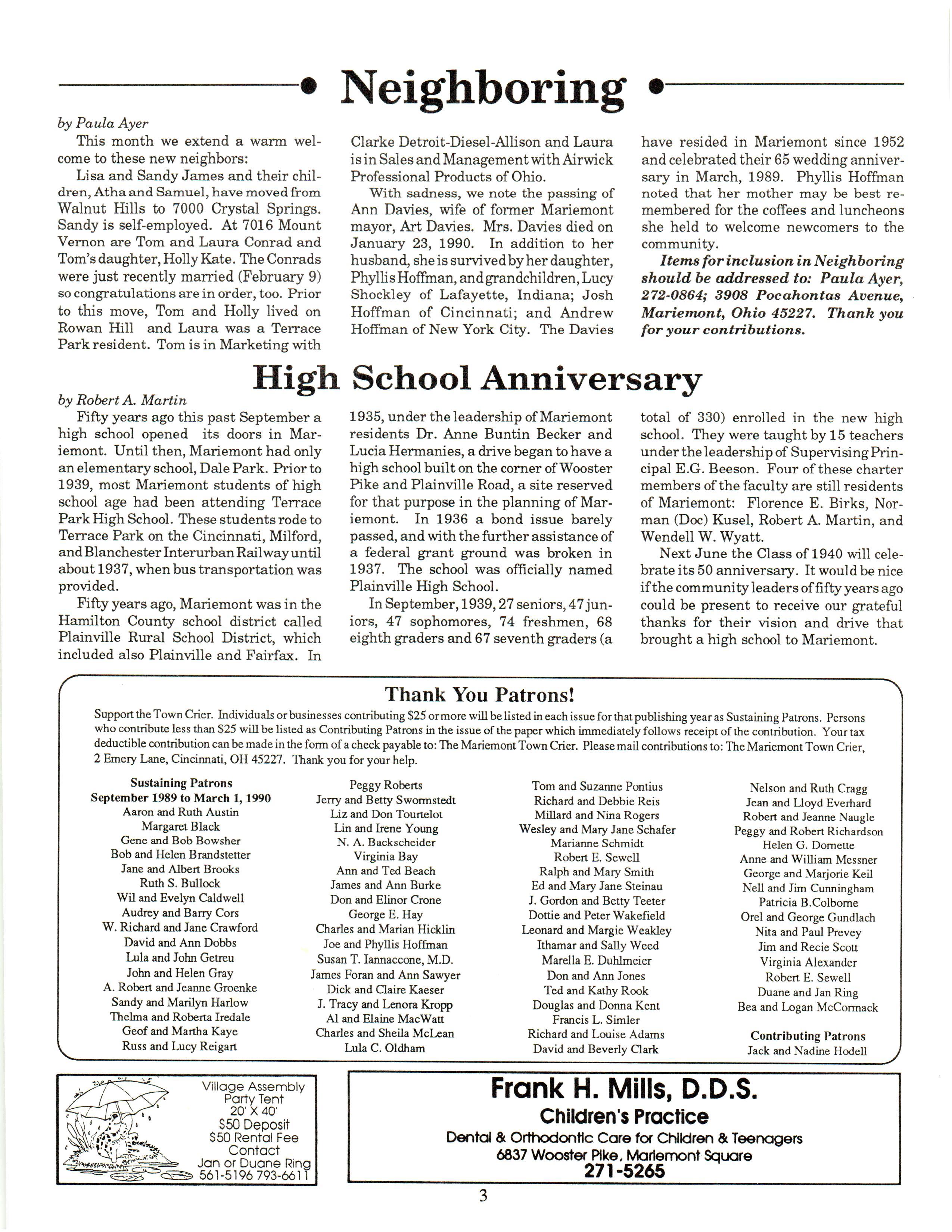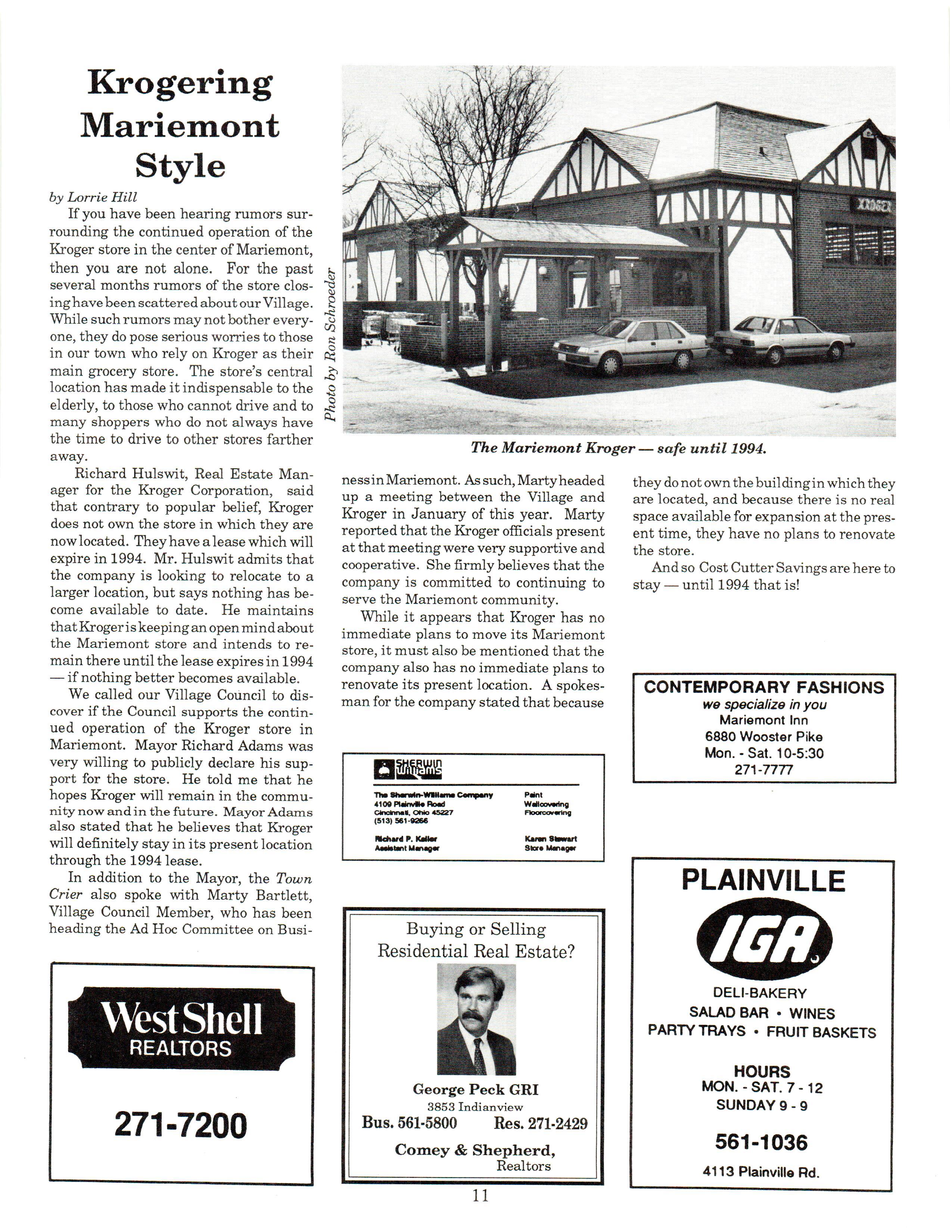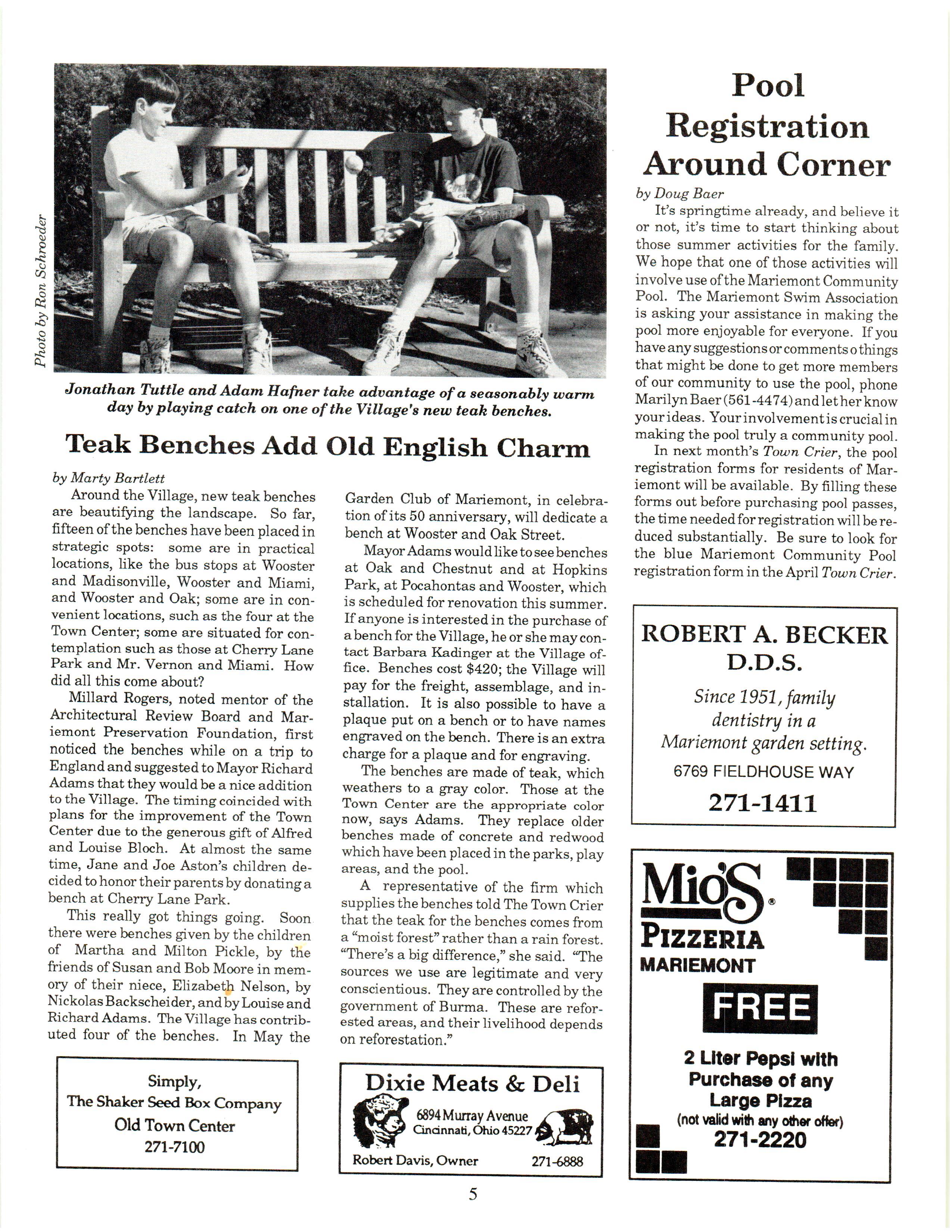 Mariemont Town Crier, March 1990, Vol. 19, No. 6