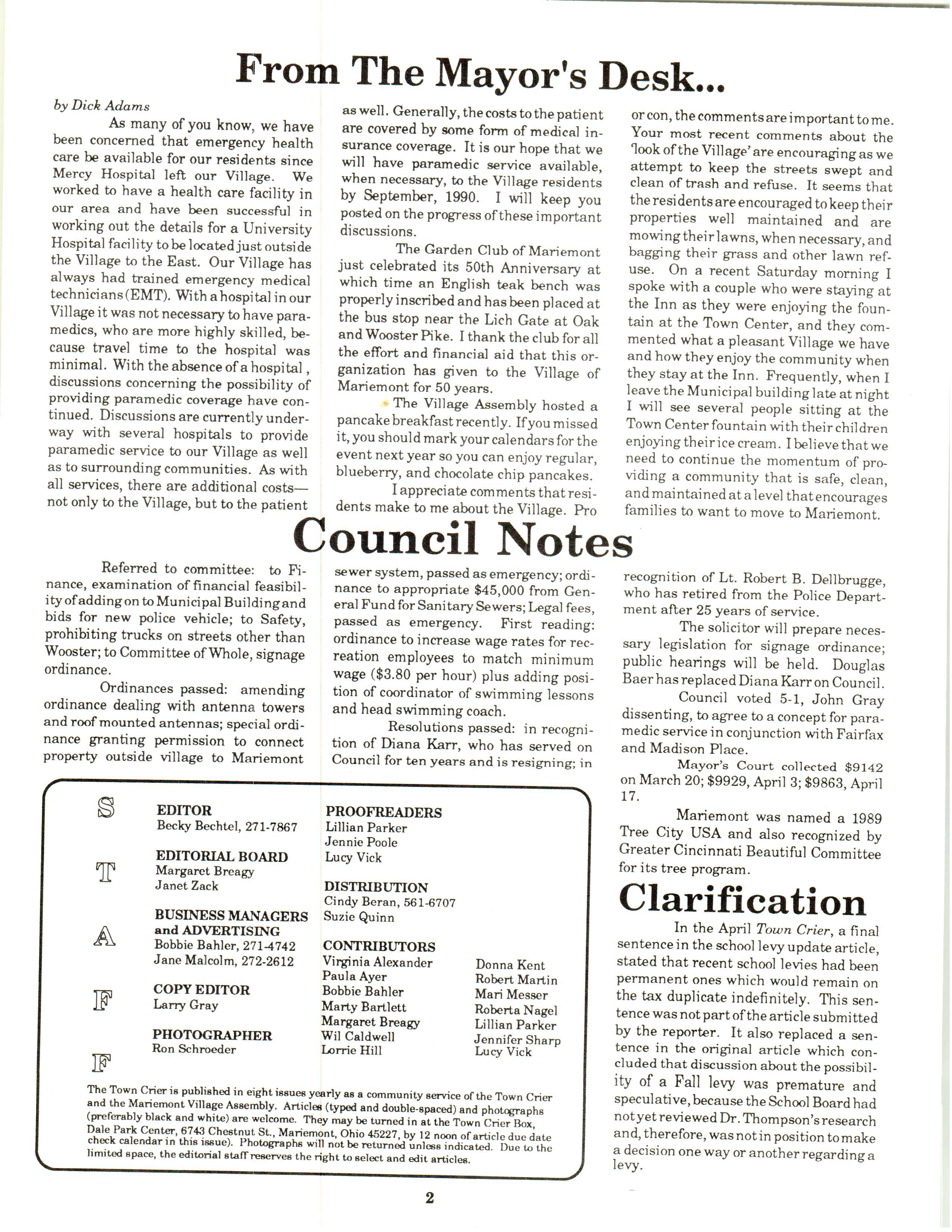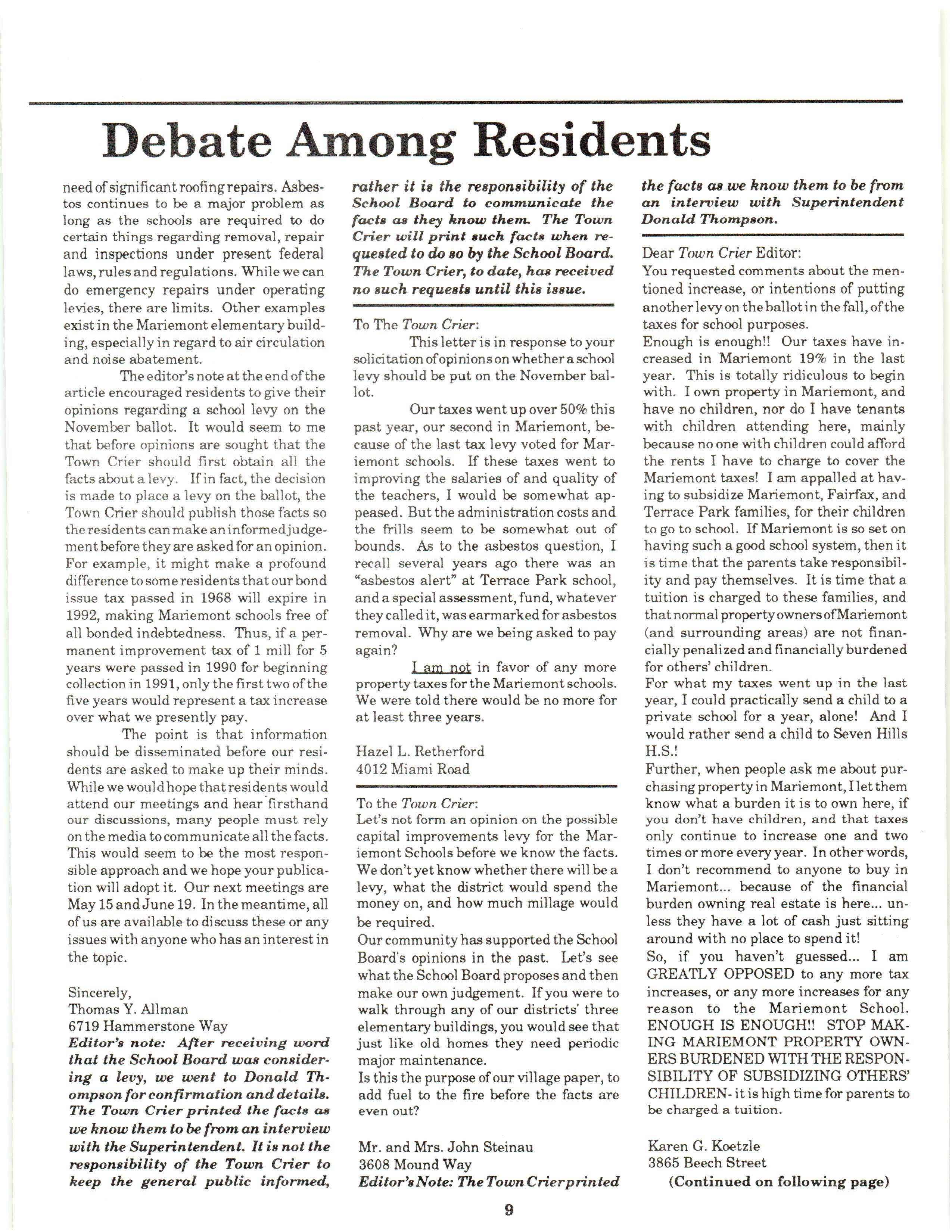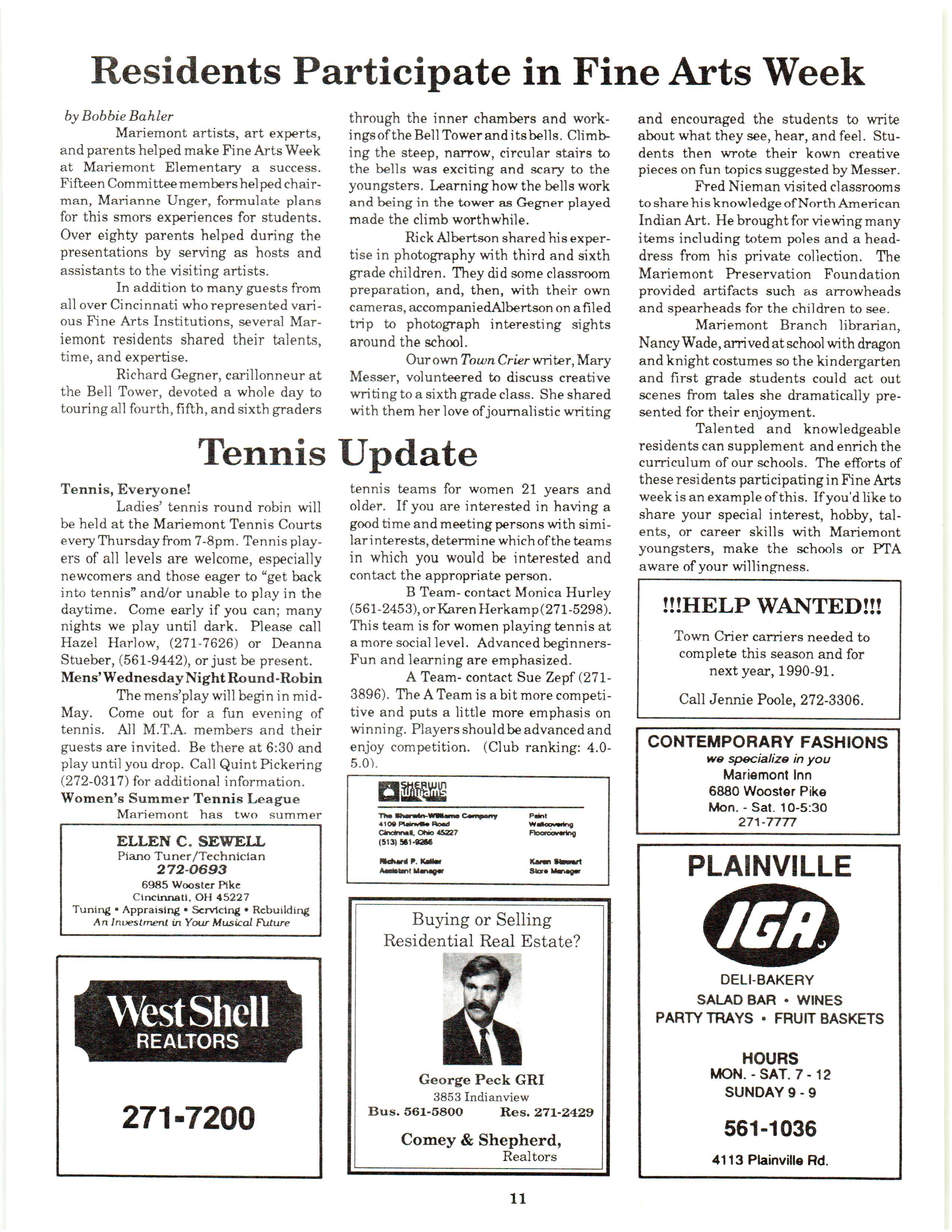 Mariemont Town Crier, May 1990, Vol. 19, No. 8