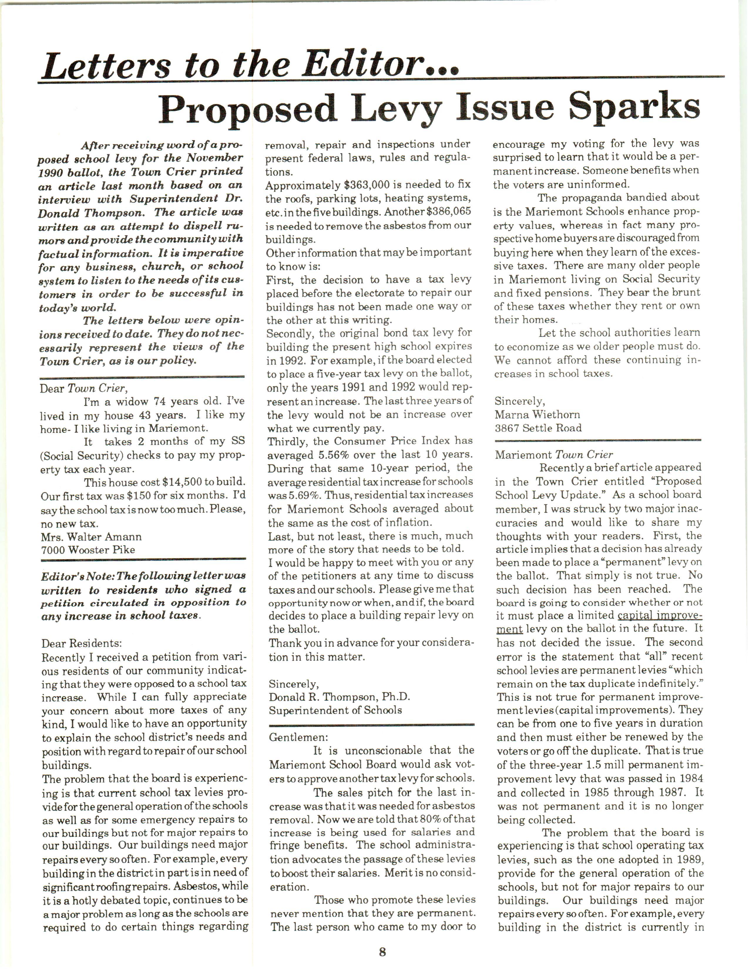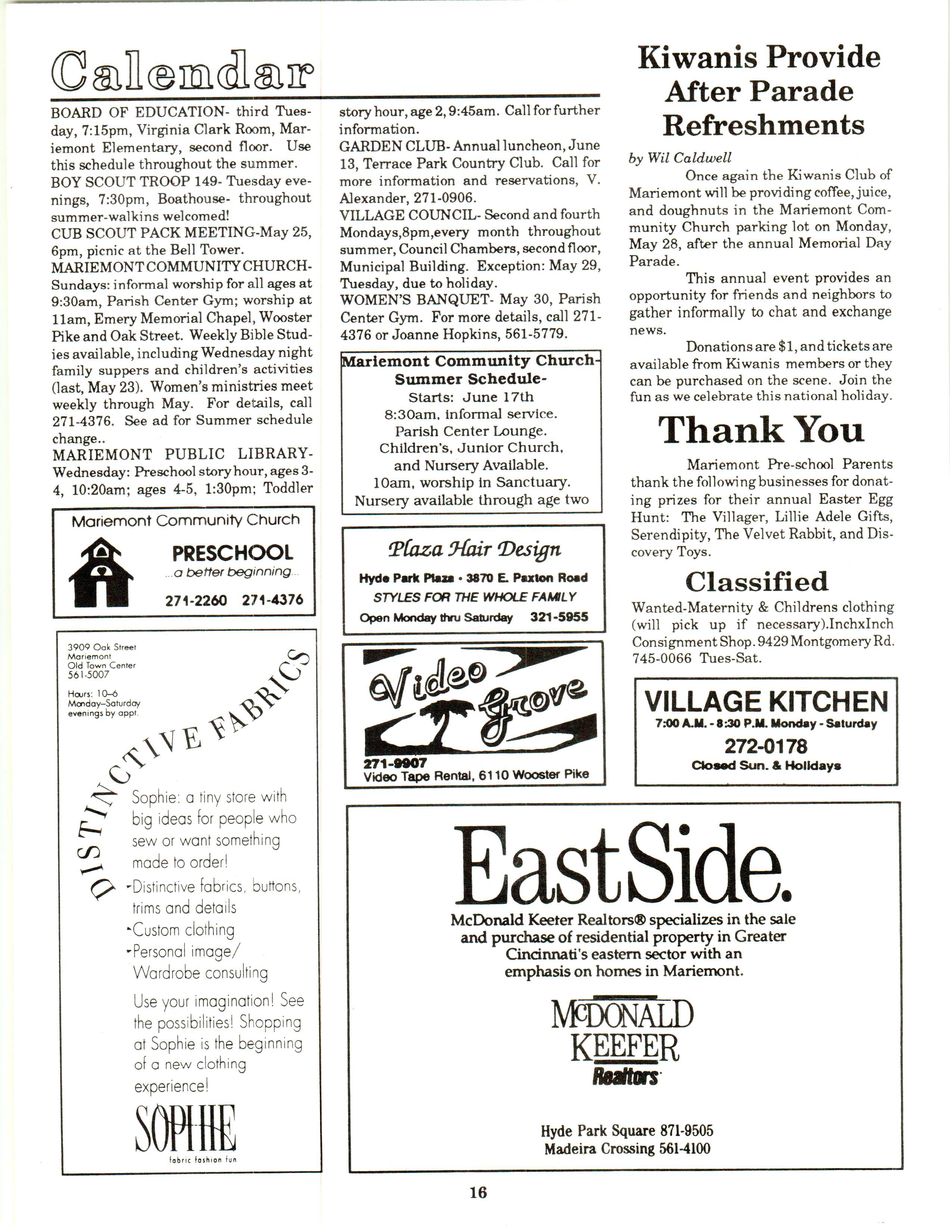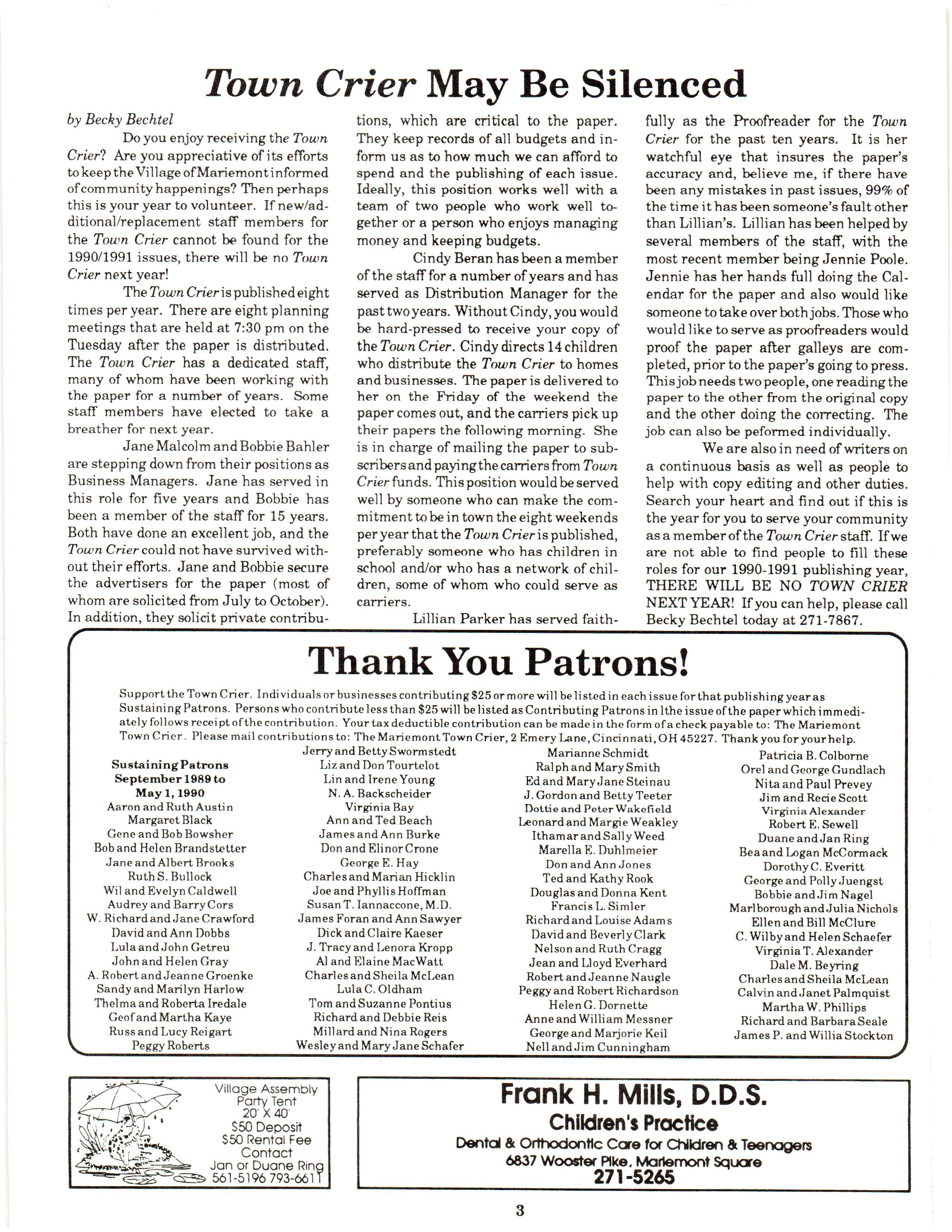Mariemont Town Crier, May 1990, Vol. 19, No. 8