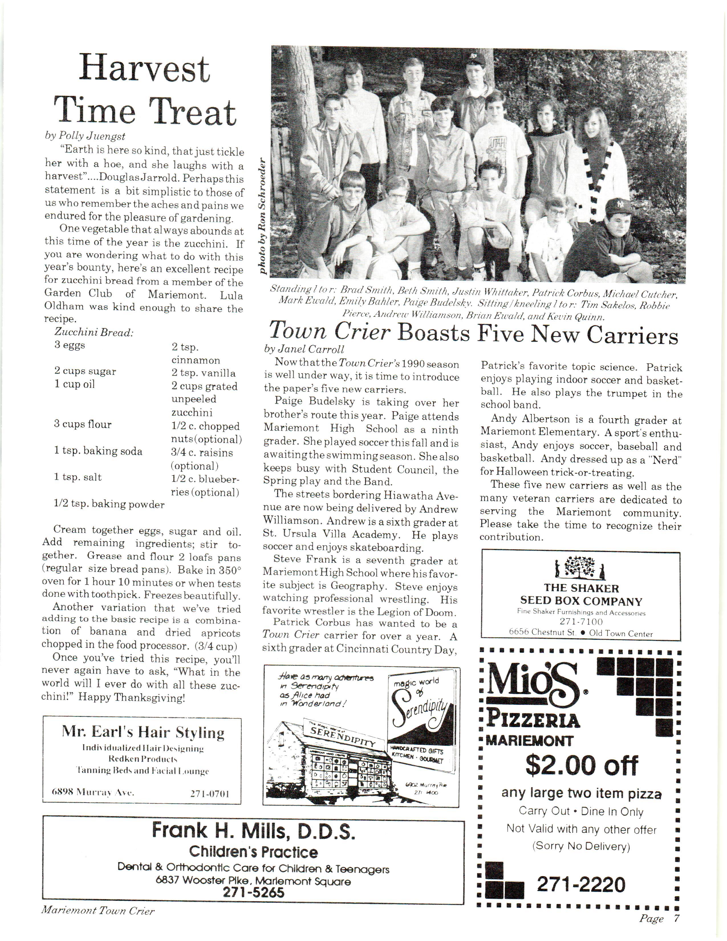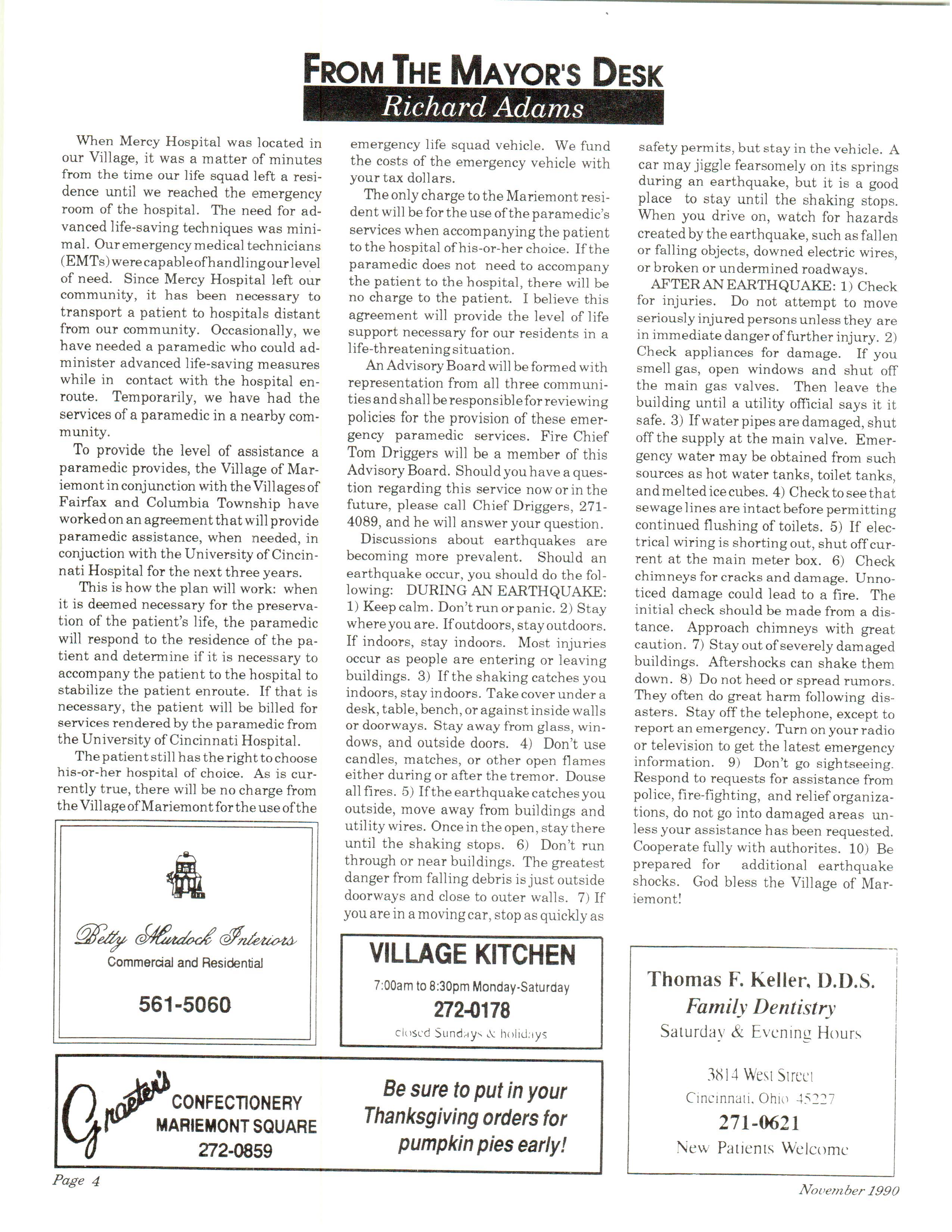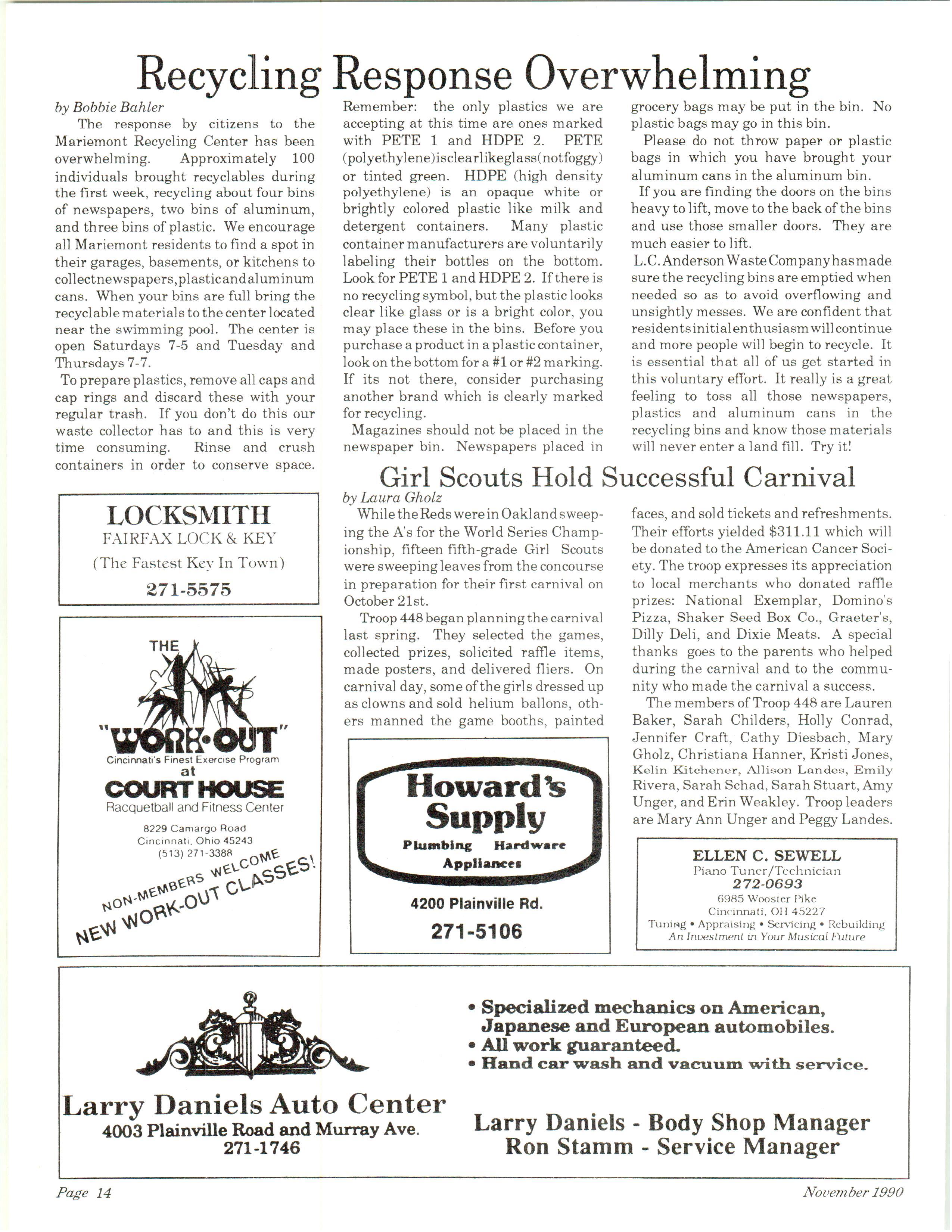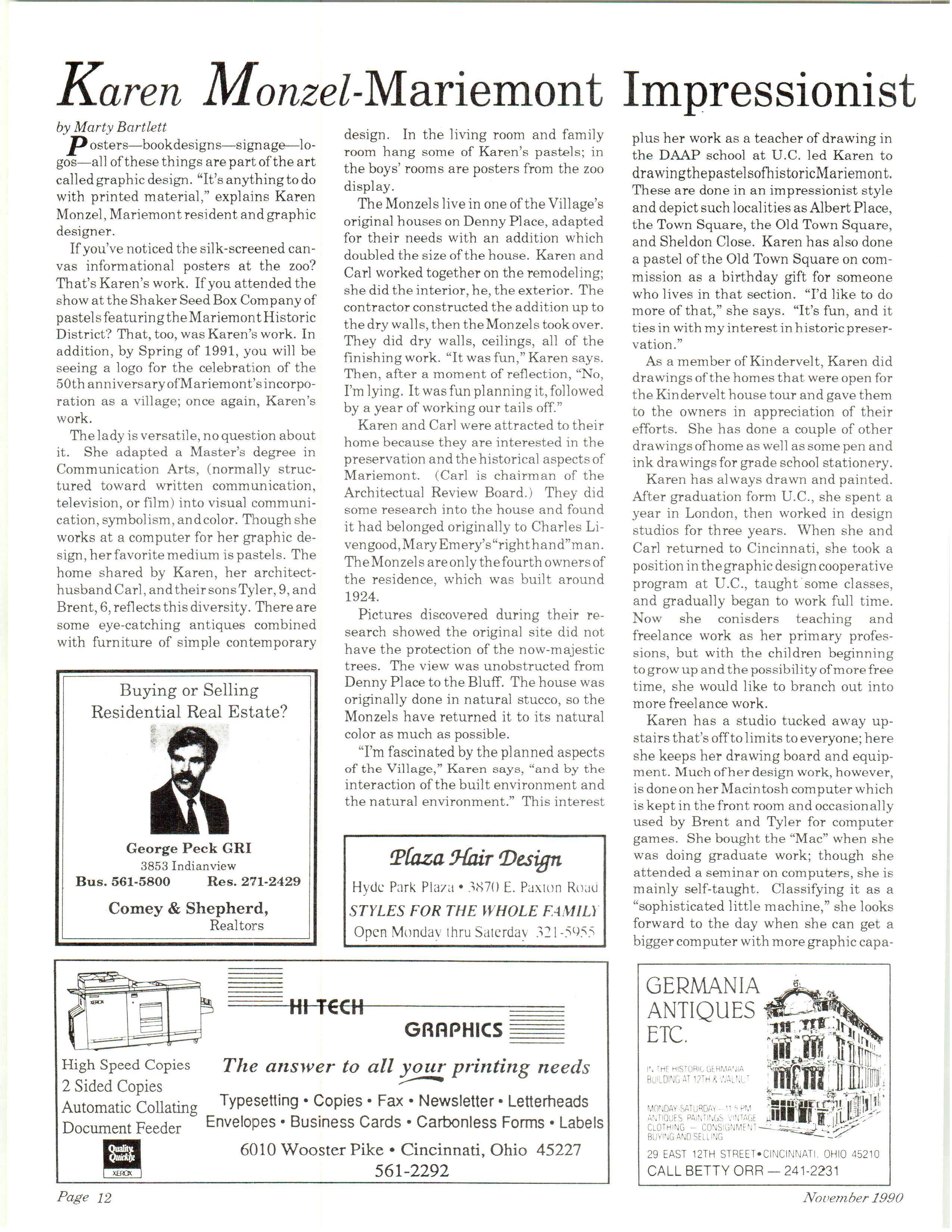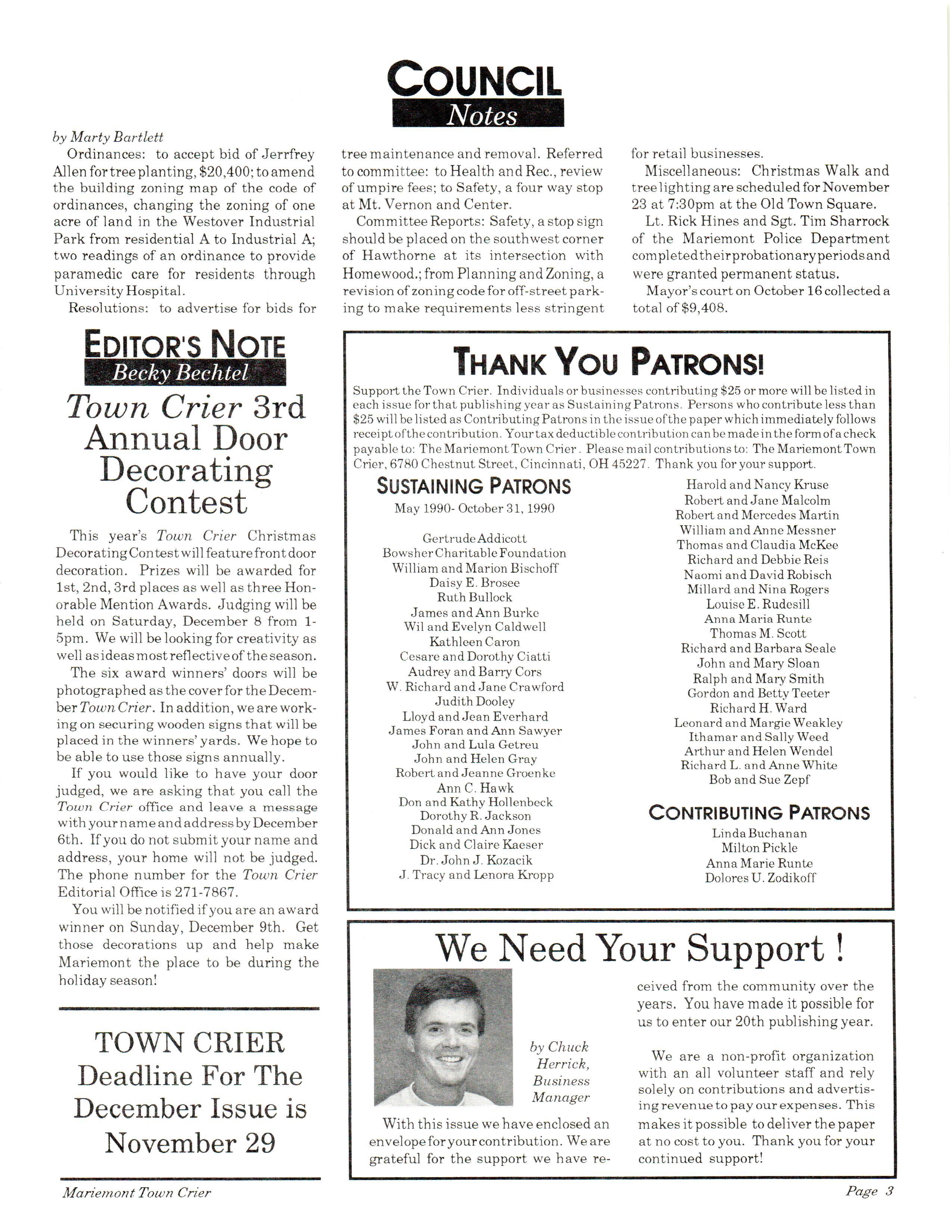 Mariemont Town Crier, November 1990, Vol. 20, No. 3