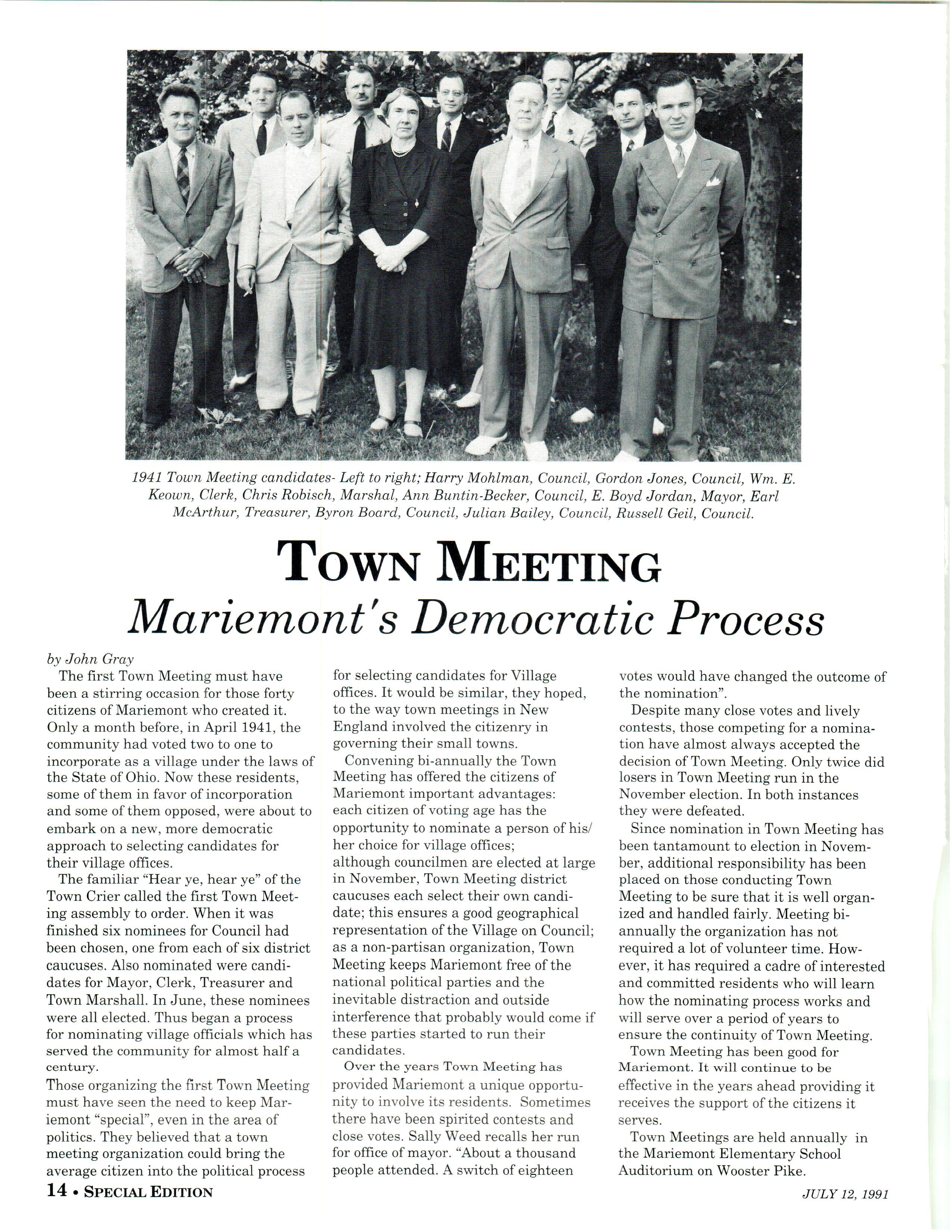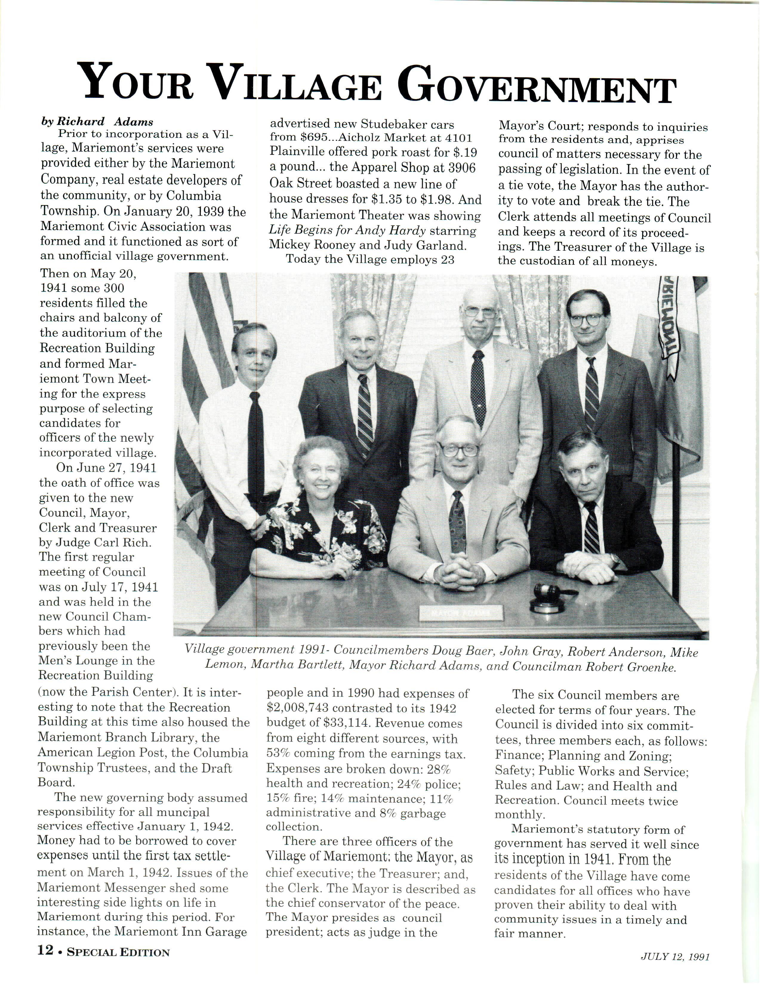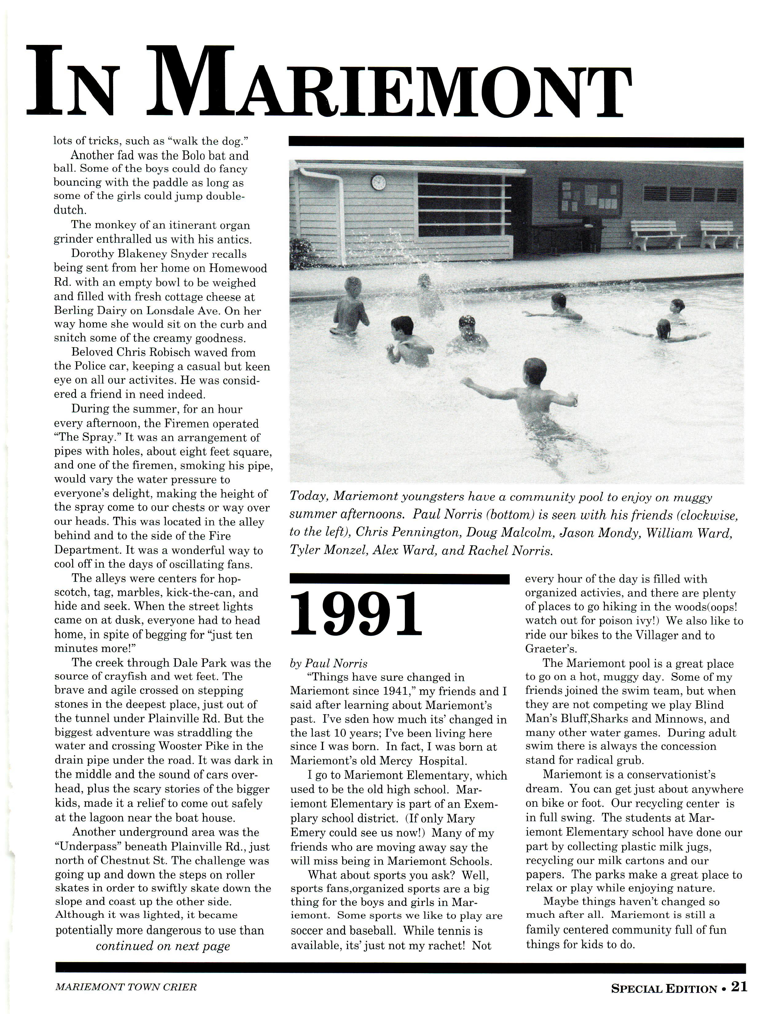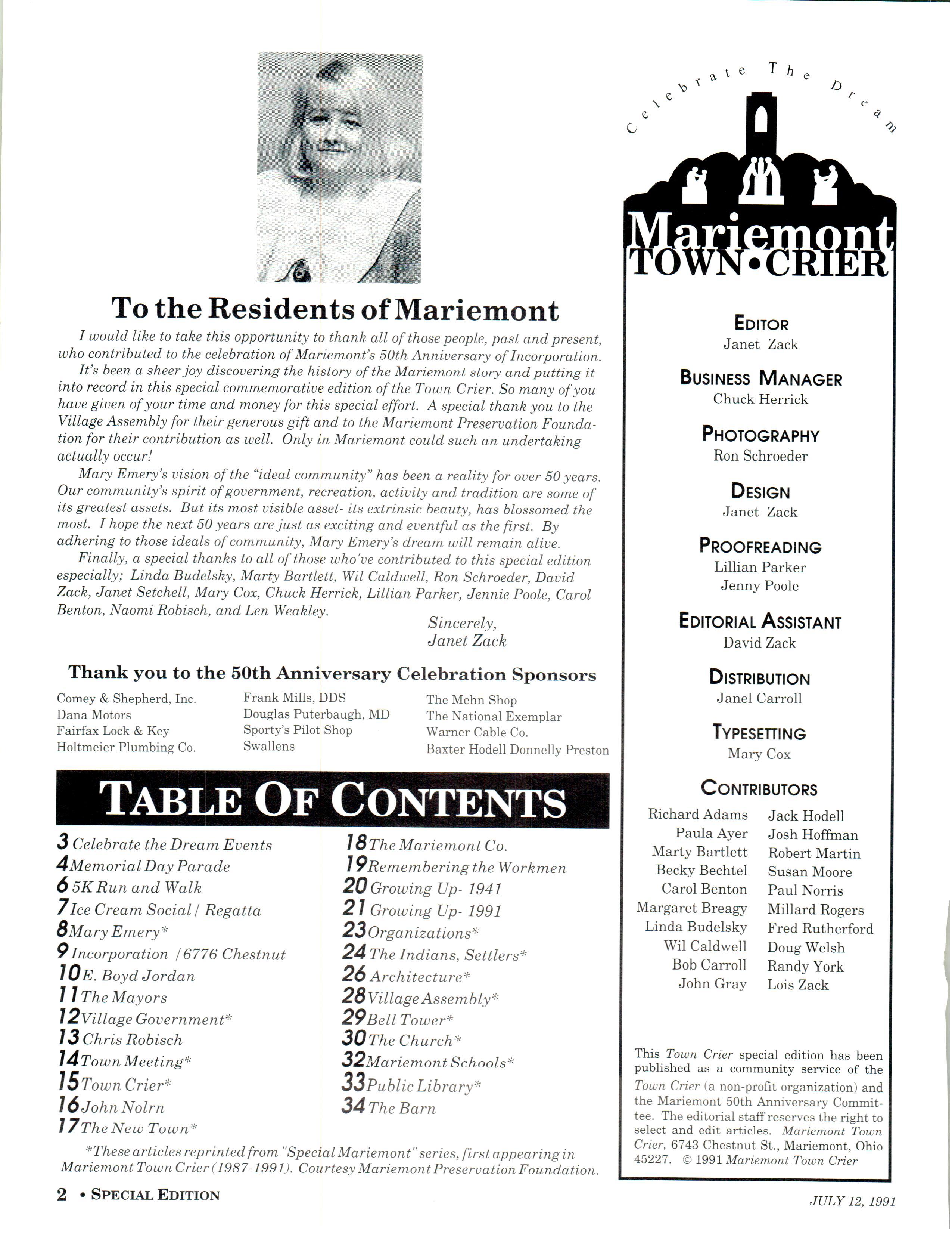 Mariemont Town Crier, July 1991, Special 50th Anniversary Edition