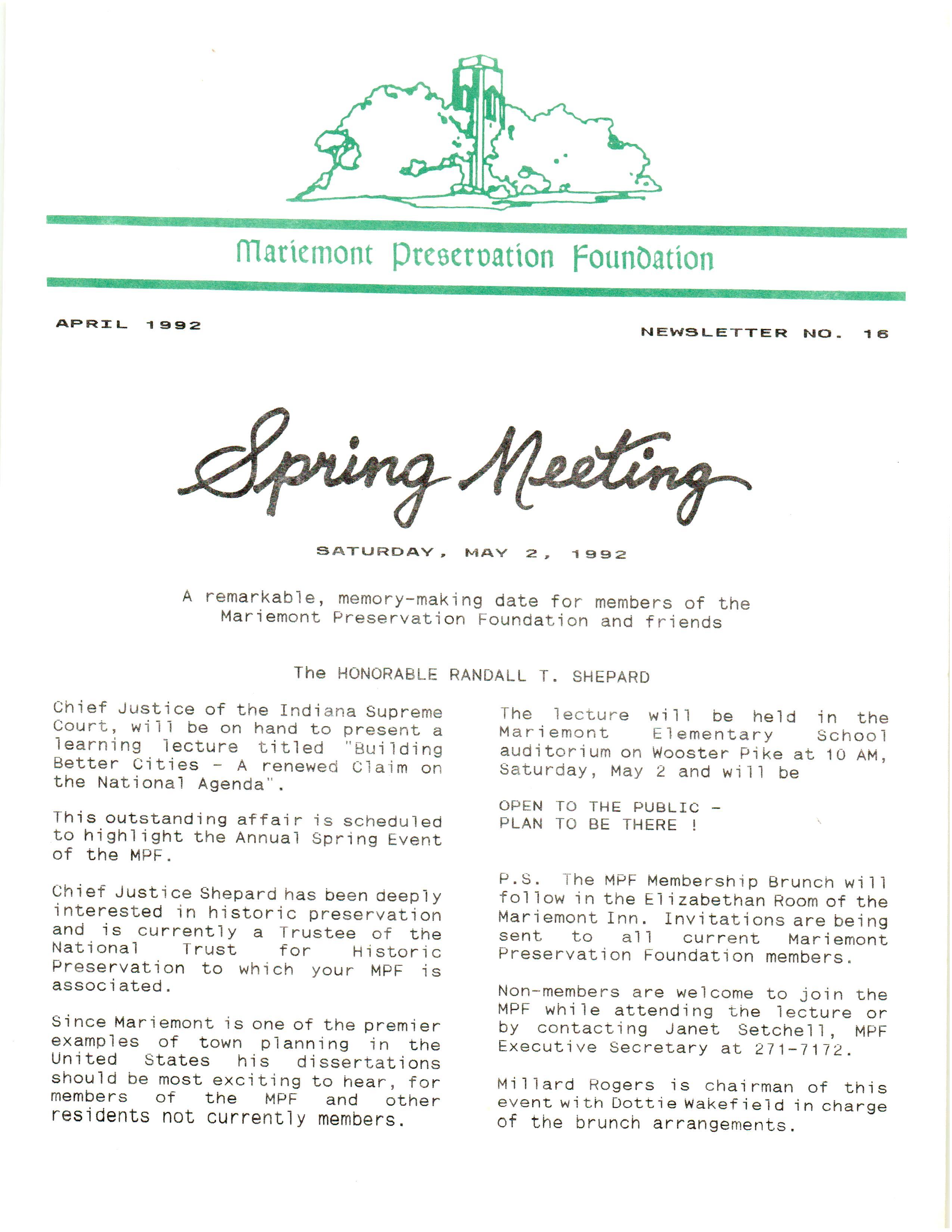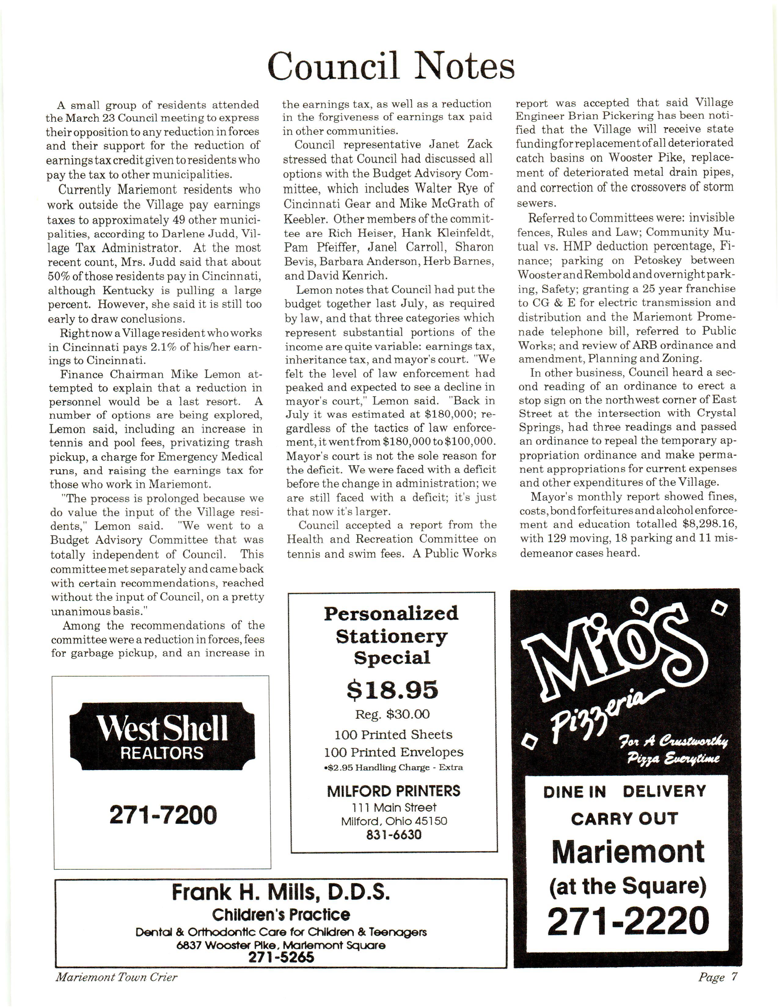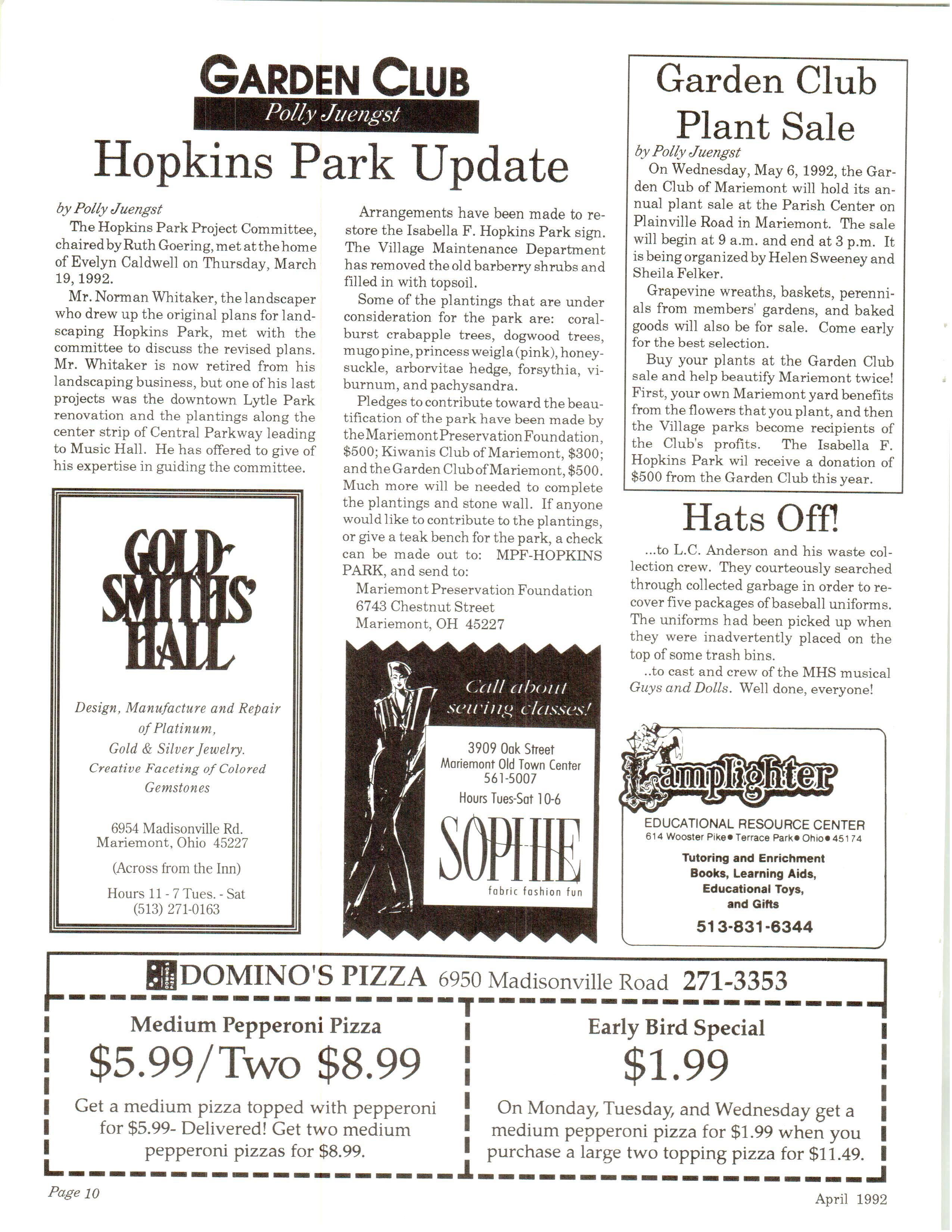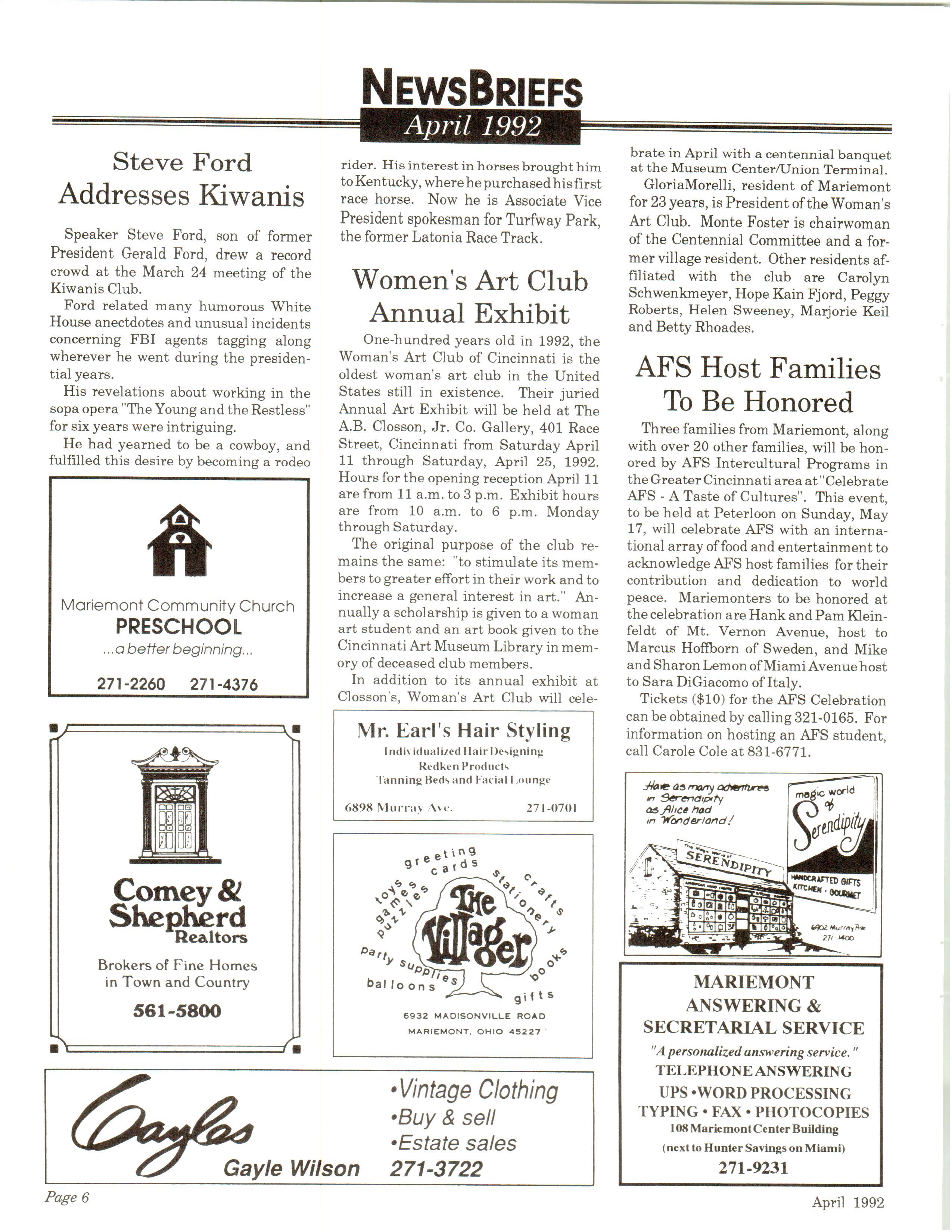 Mariemont Town Crier, April 1992, Vol. 21, No. 7