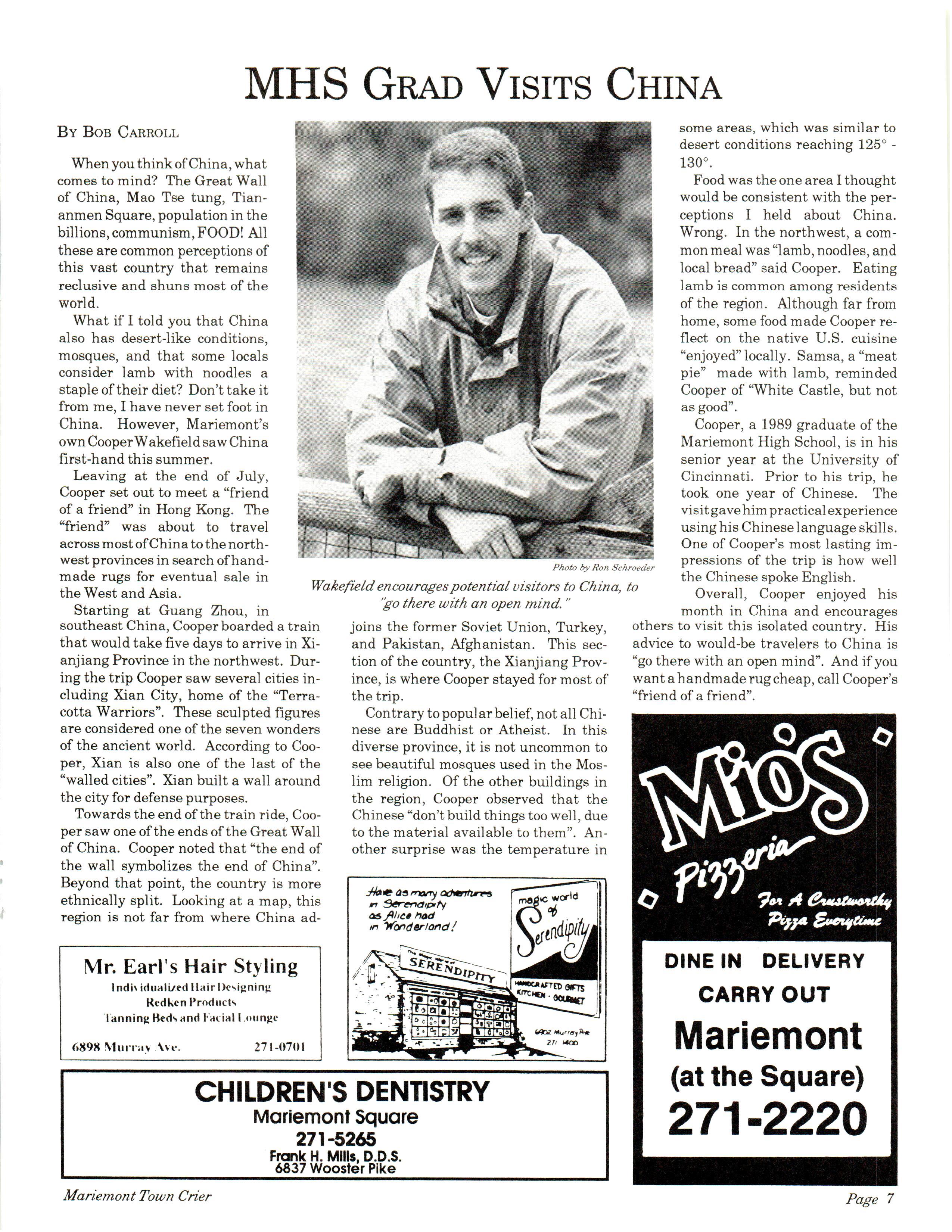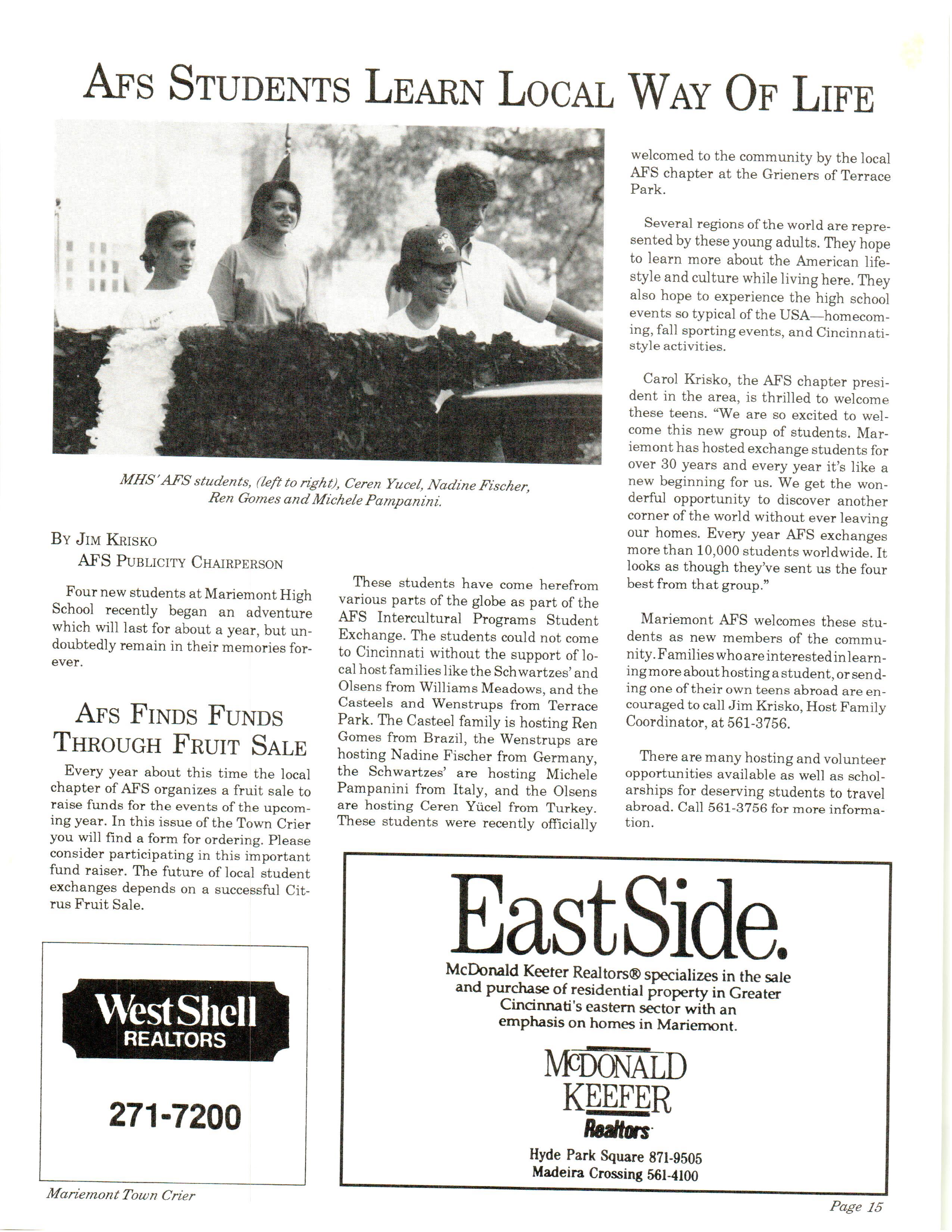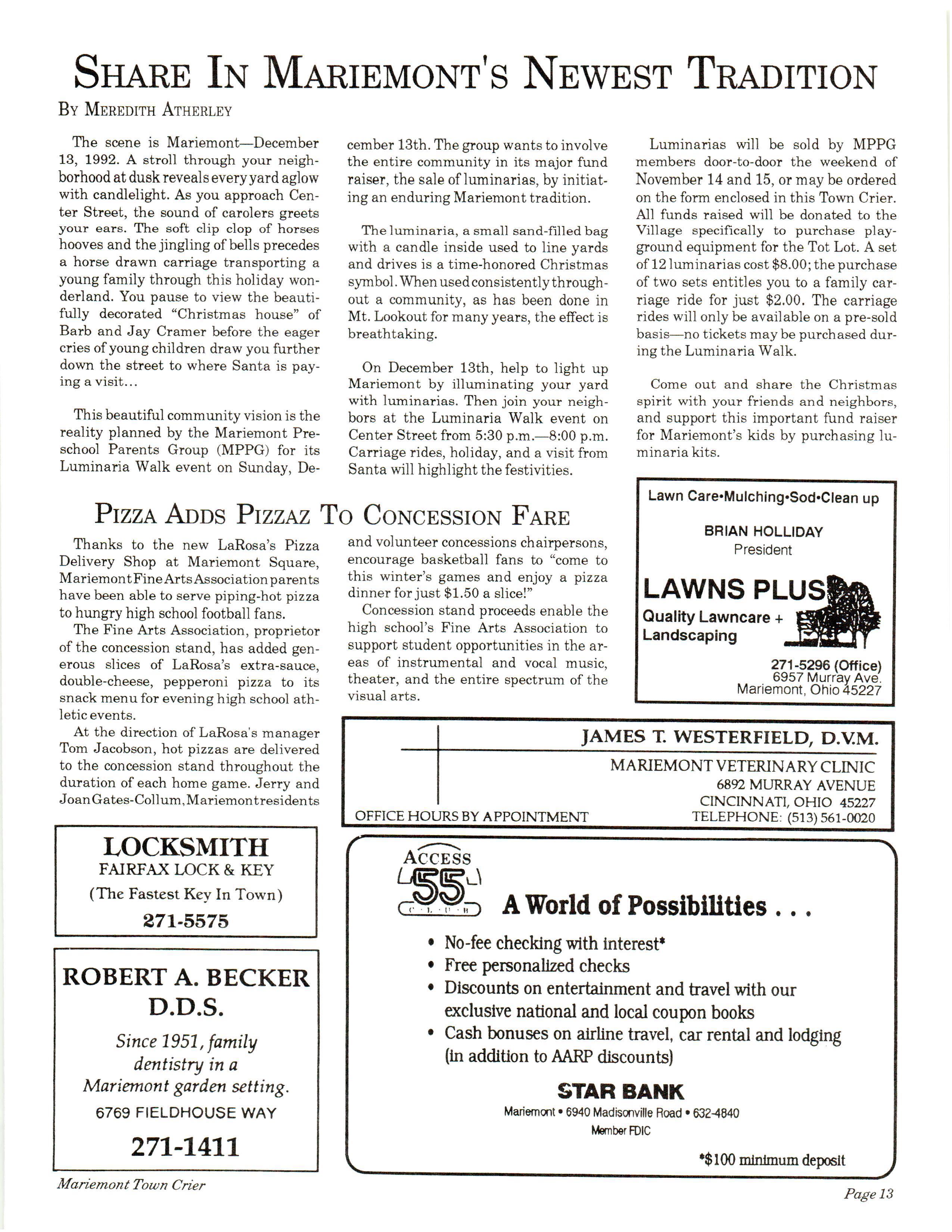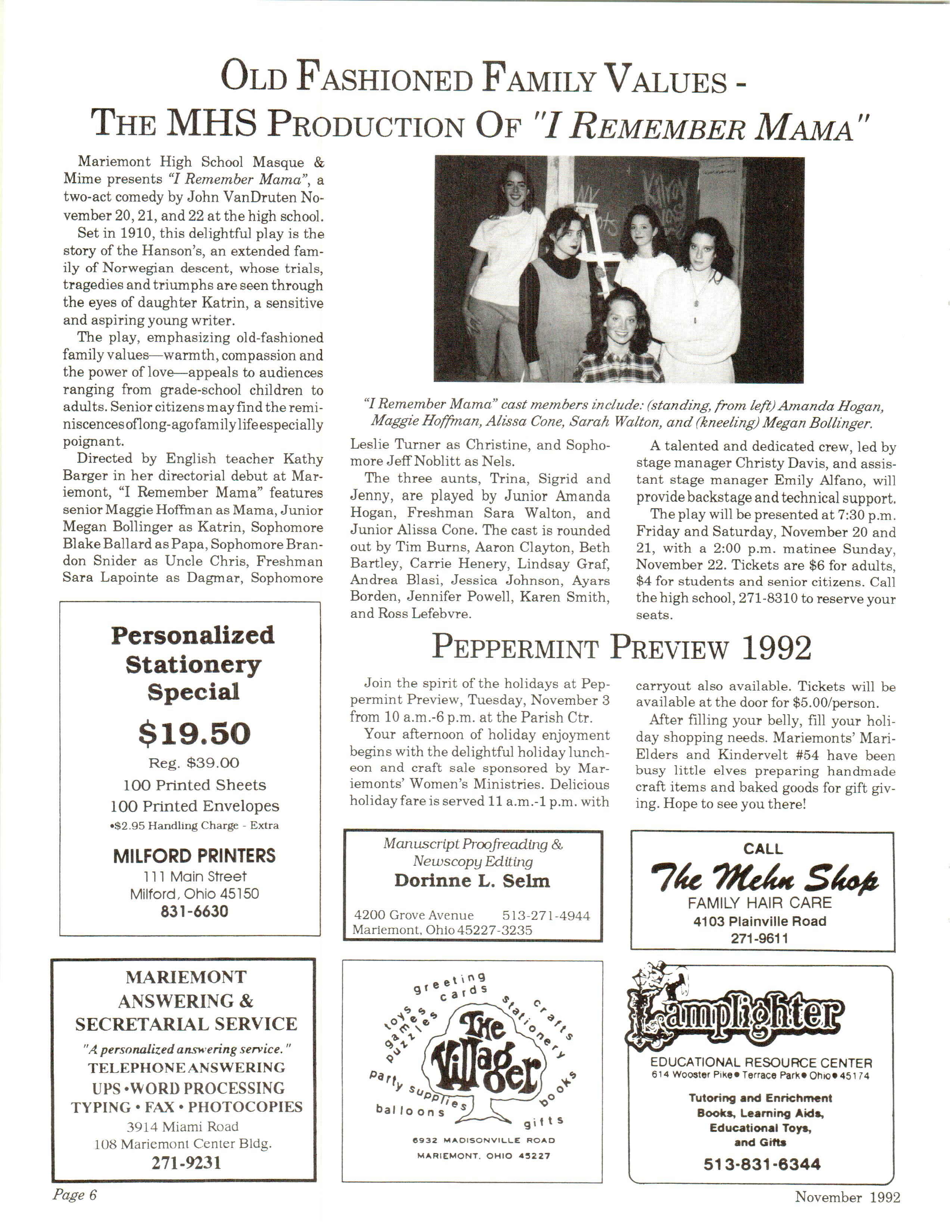 Mariemont Town Crier, November 1992, Vol. 22, No. 3