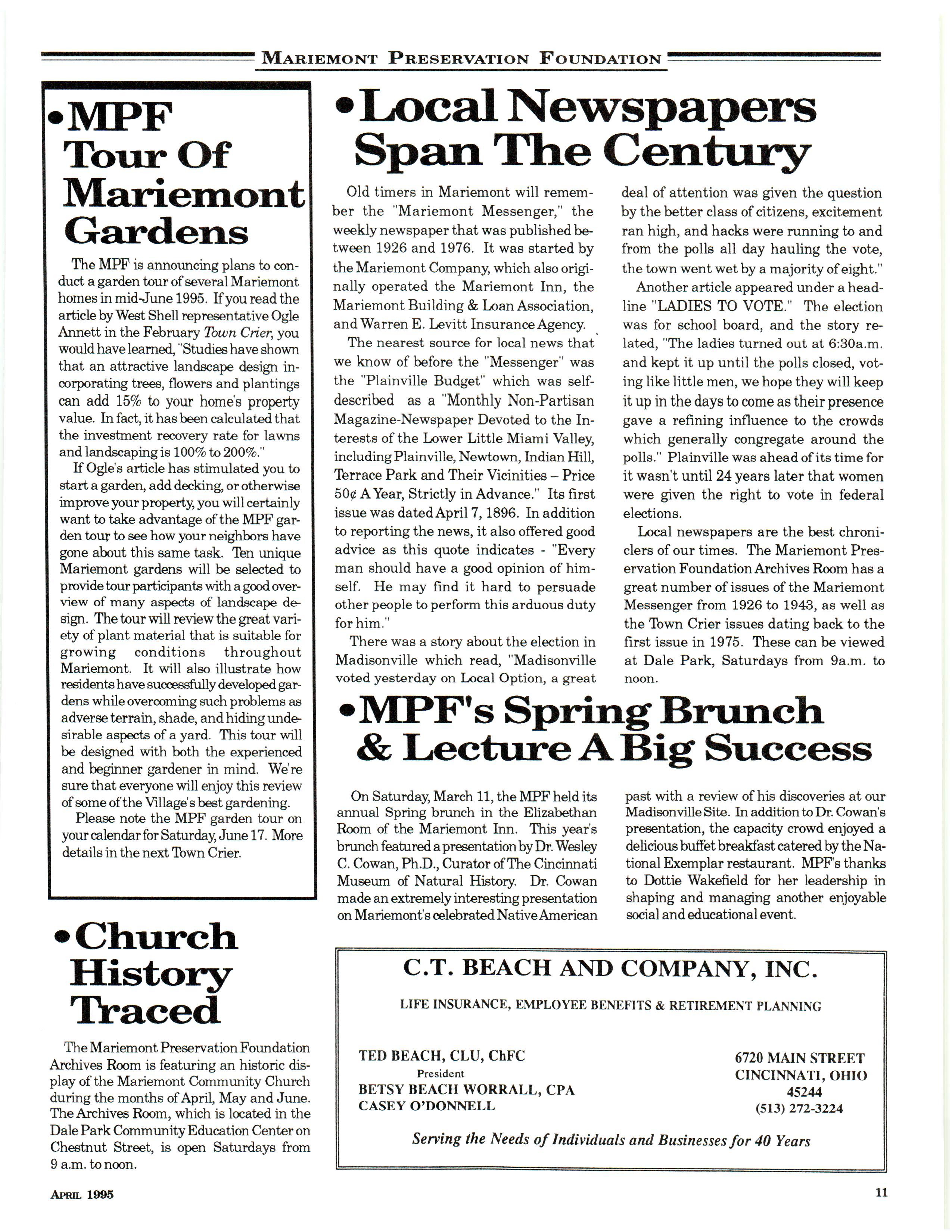 Mariemont Town Crier, April 1995, Vol. 24, No. 7 by Mariemont Town Crier - Issuu