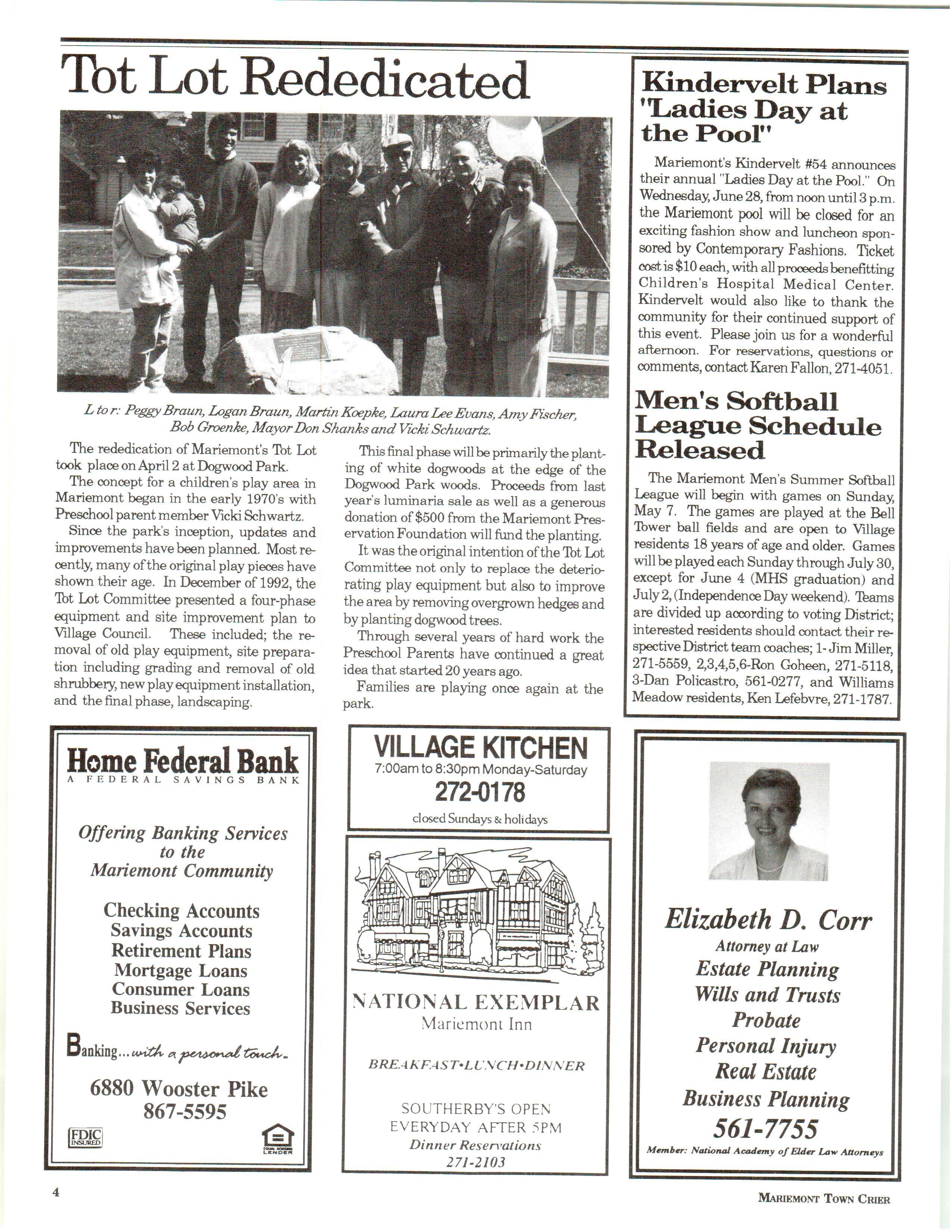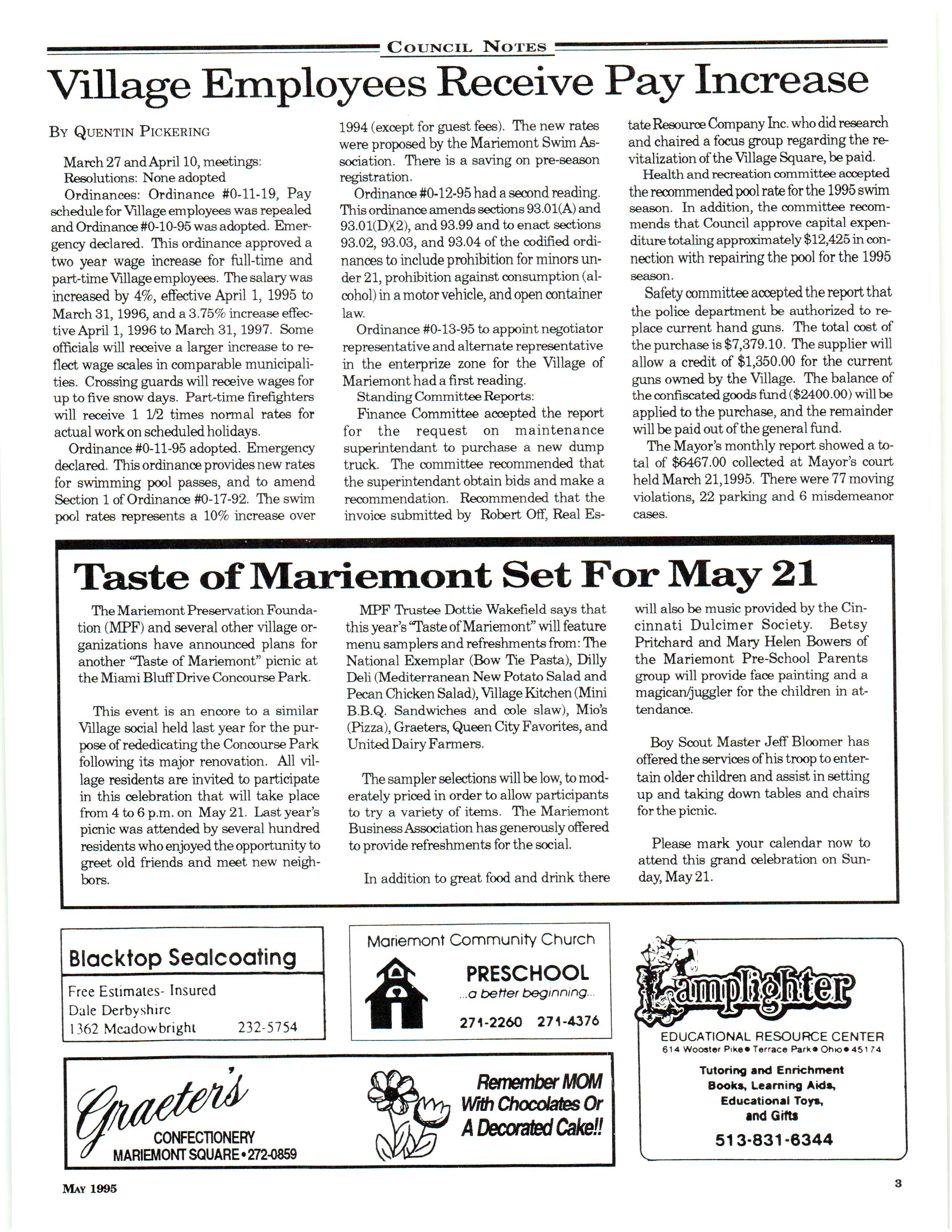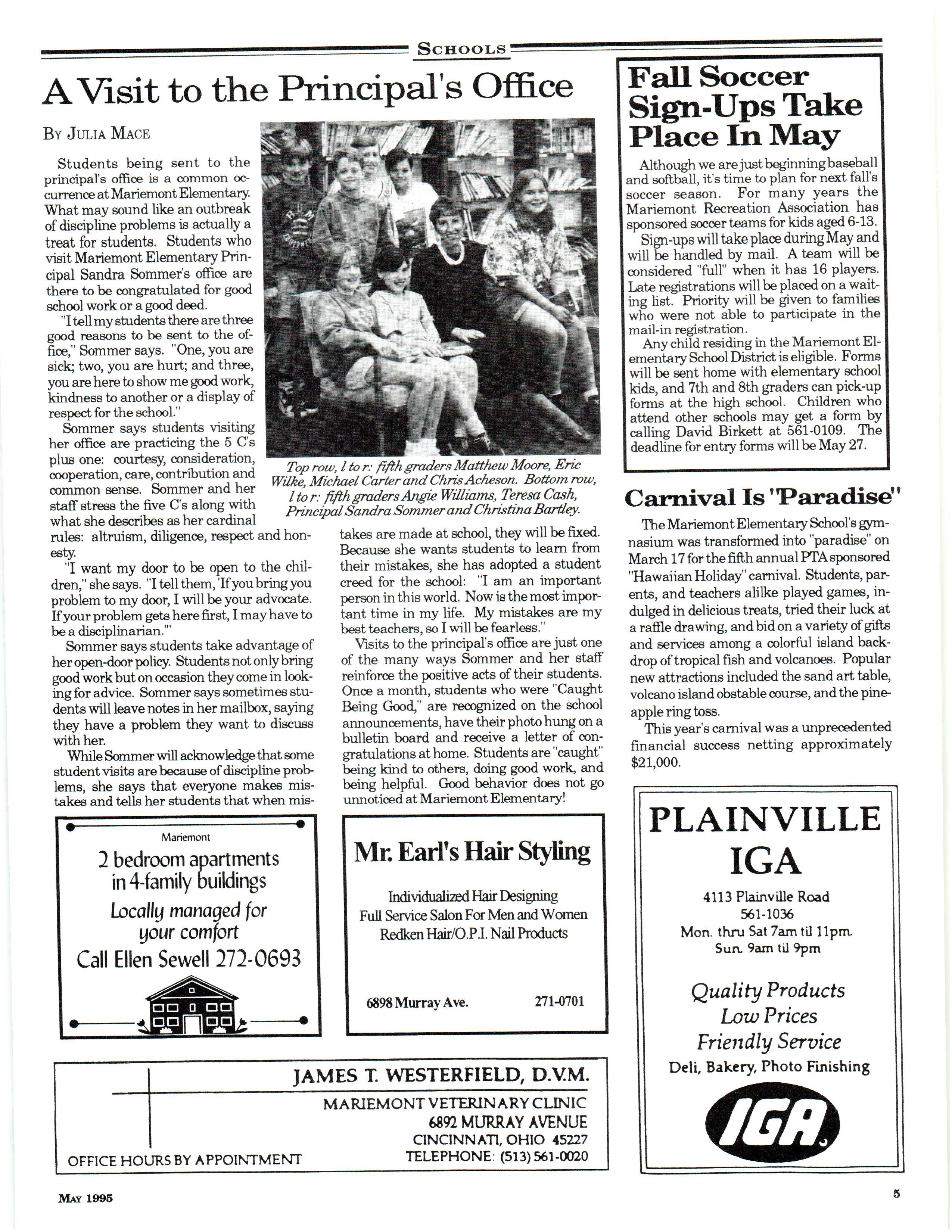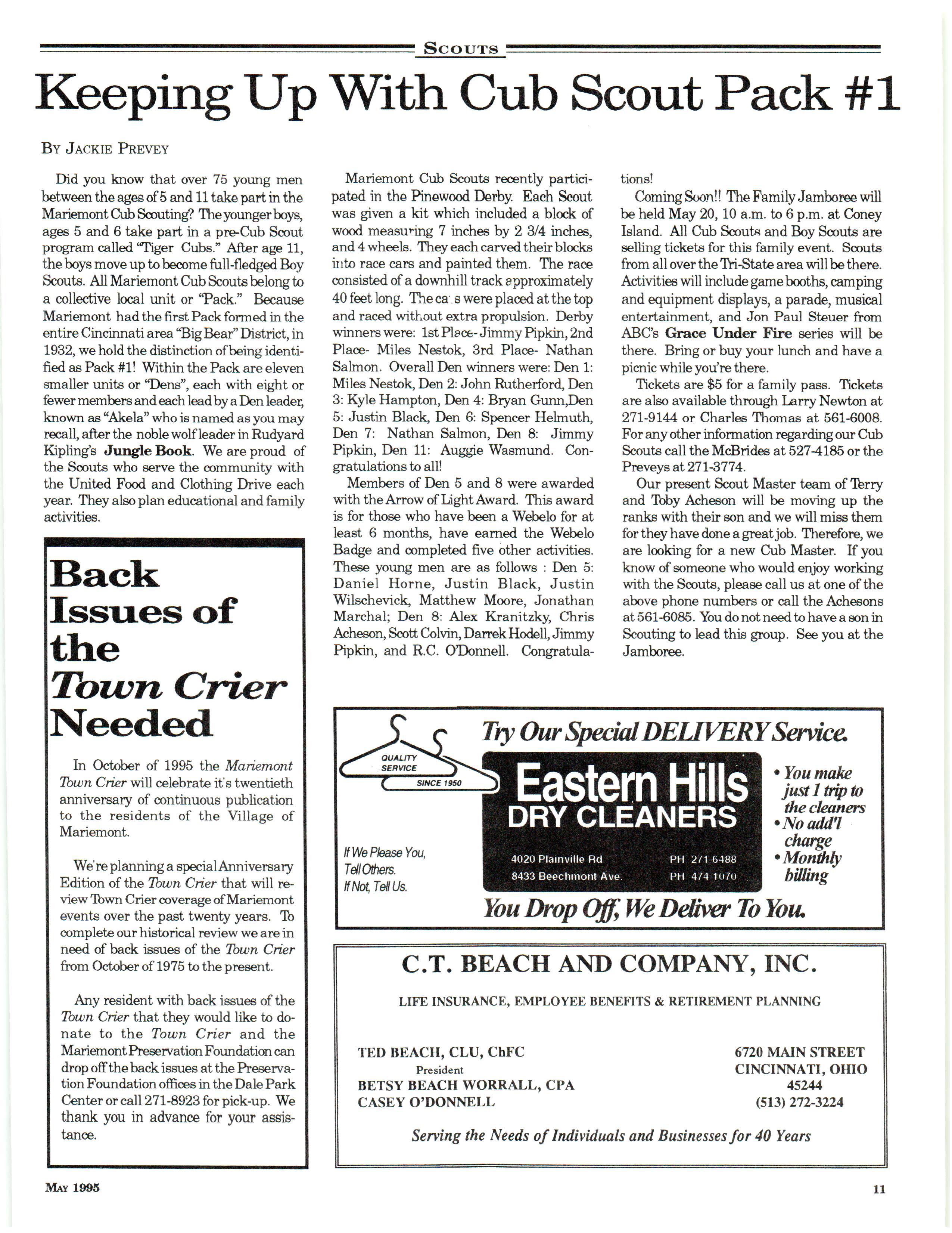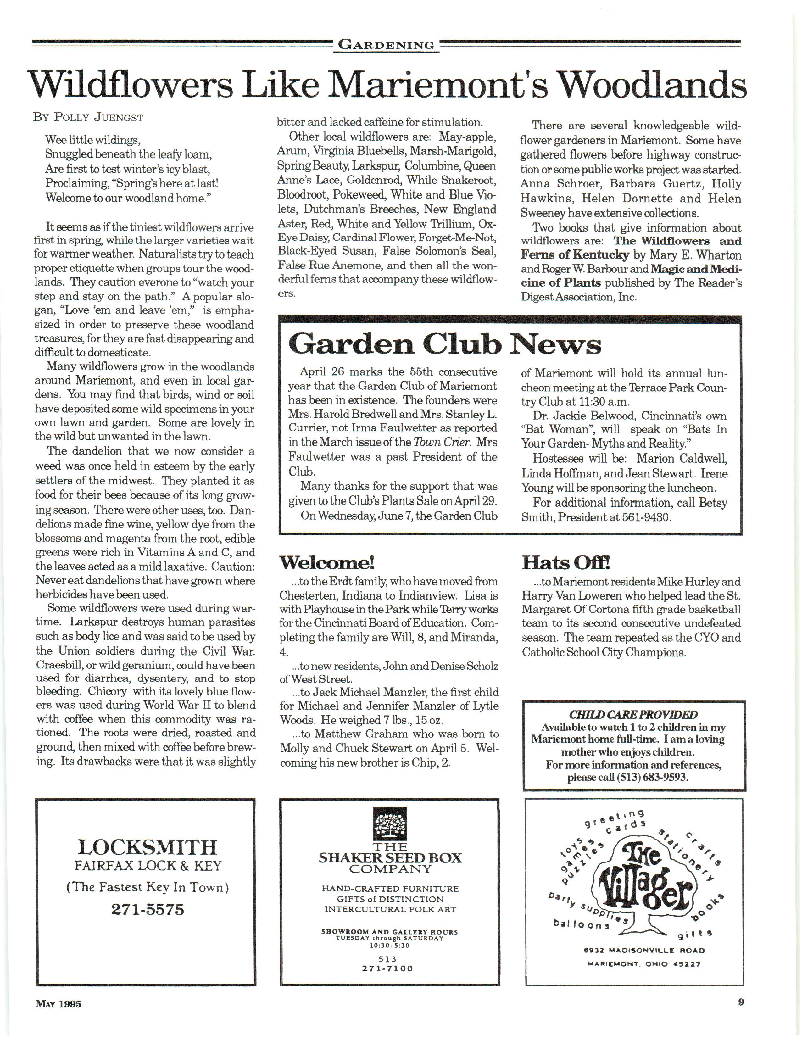 Mariemont Town Crier, May 1995, Vol. 24, No. 8